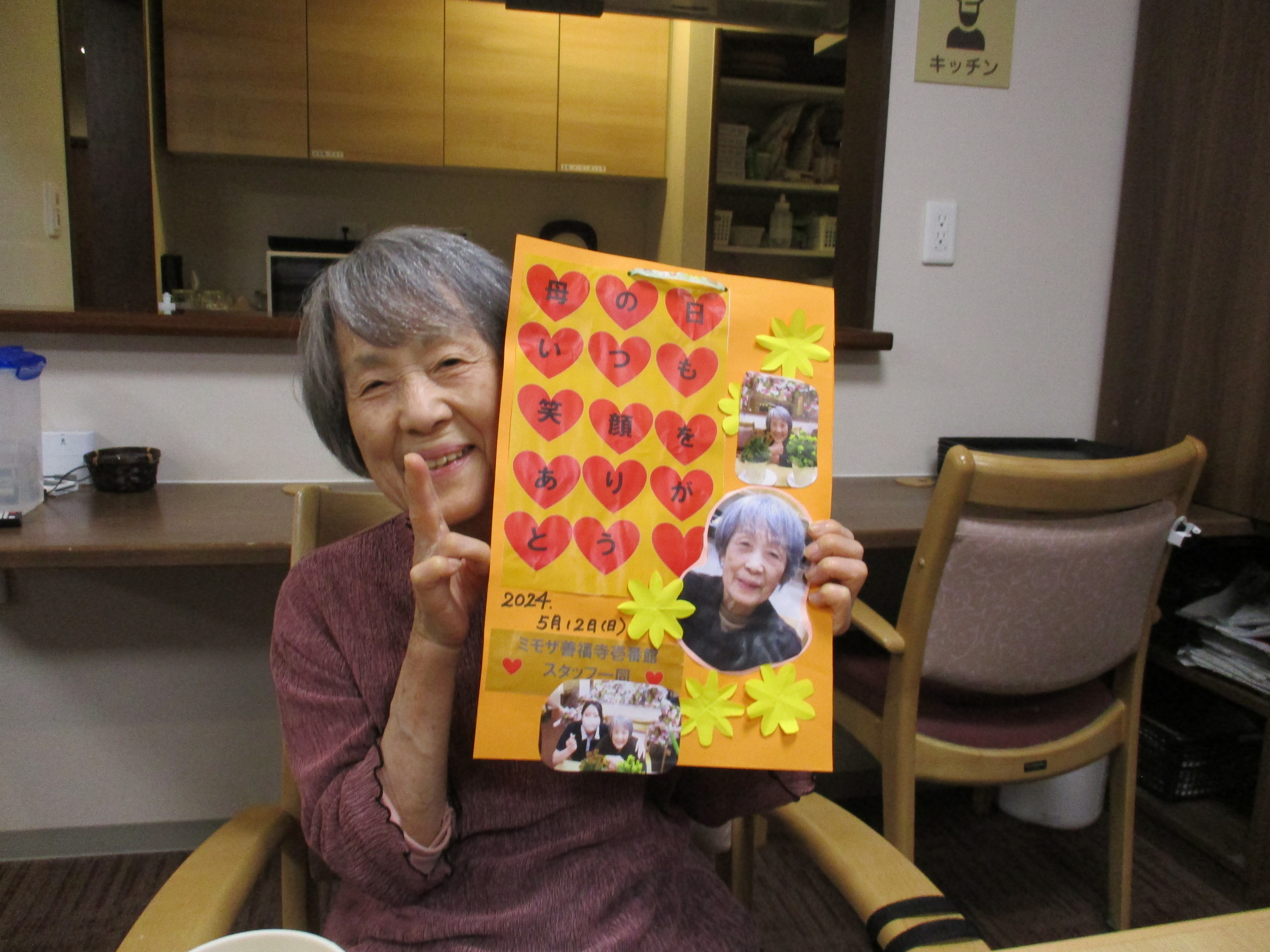 母の日にはご家族様からお花が届きました! 綺麗ね~!と皆さま嬉しそうに毎日みていました🌹 施設からもささやかですが母の日のプレゼントにメッセージ入りのお写真をお渡ししました。 喜んで部屋に飾ってくださる方もいらっしゃって嬉しい限りです☺