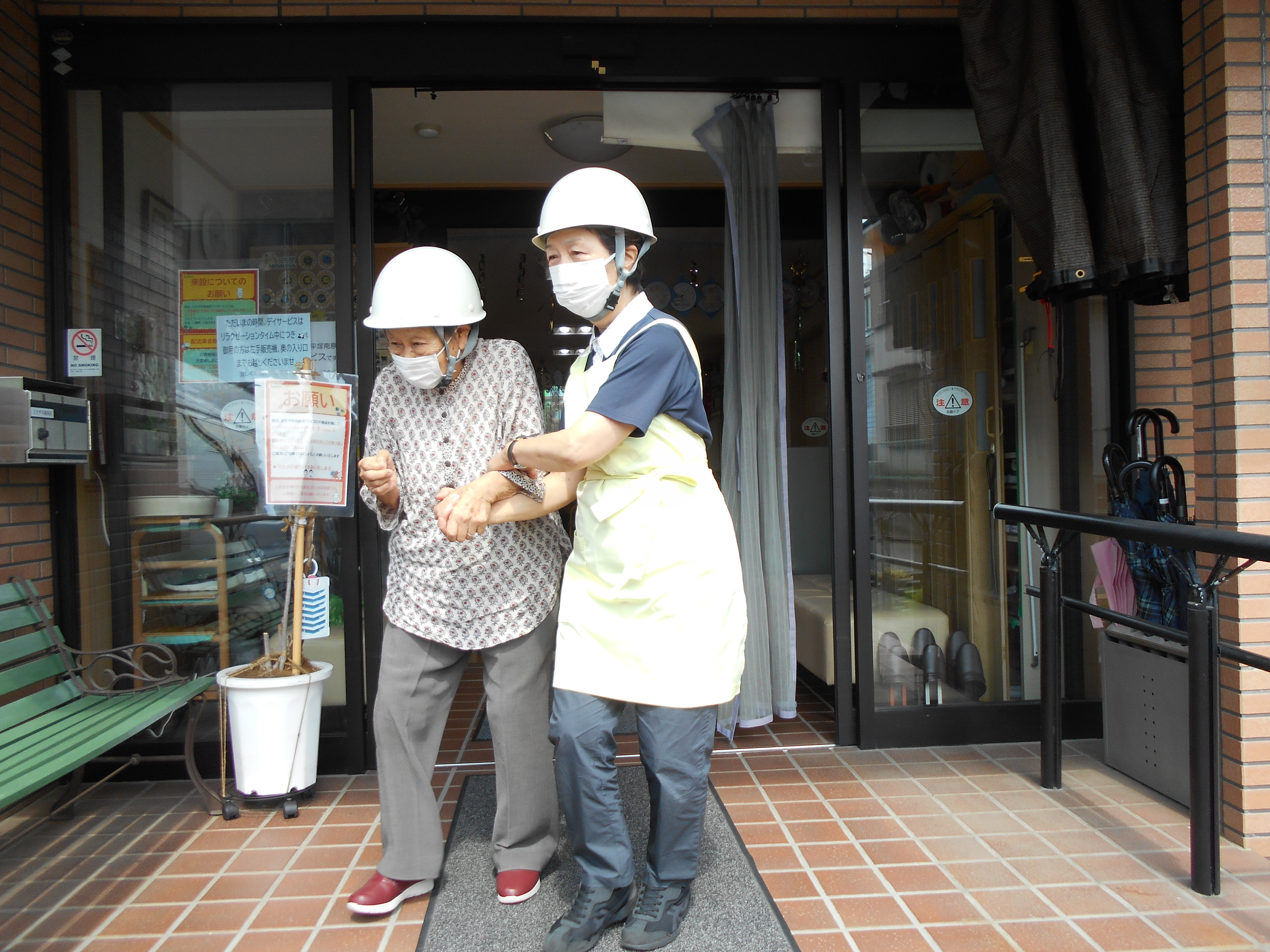 GHと合同避難訓練 暑かったですが、皆さんの協力のもと事故・ケガなく無事に終了しました。