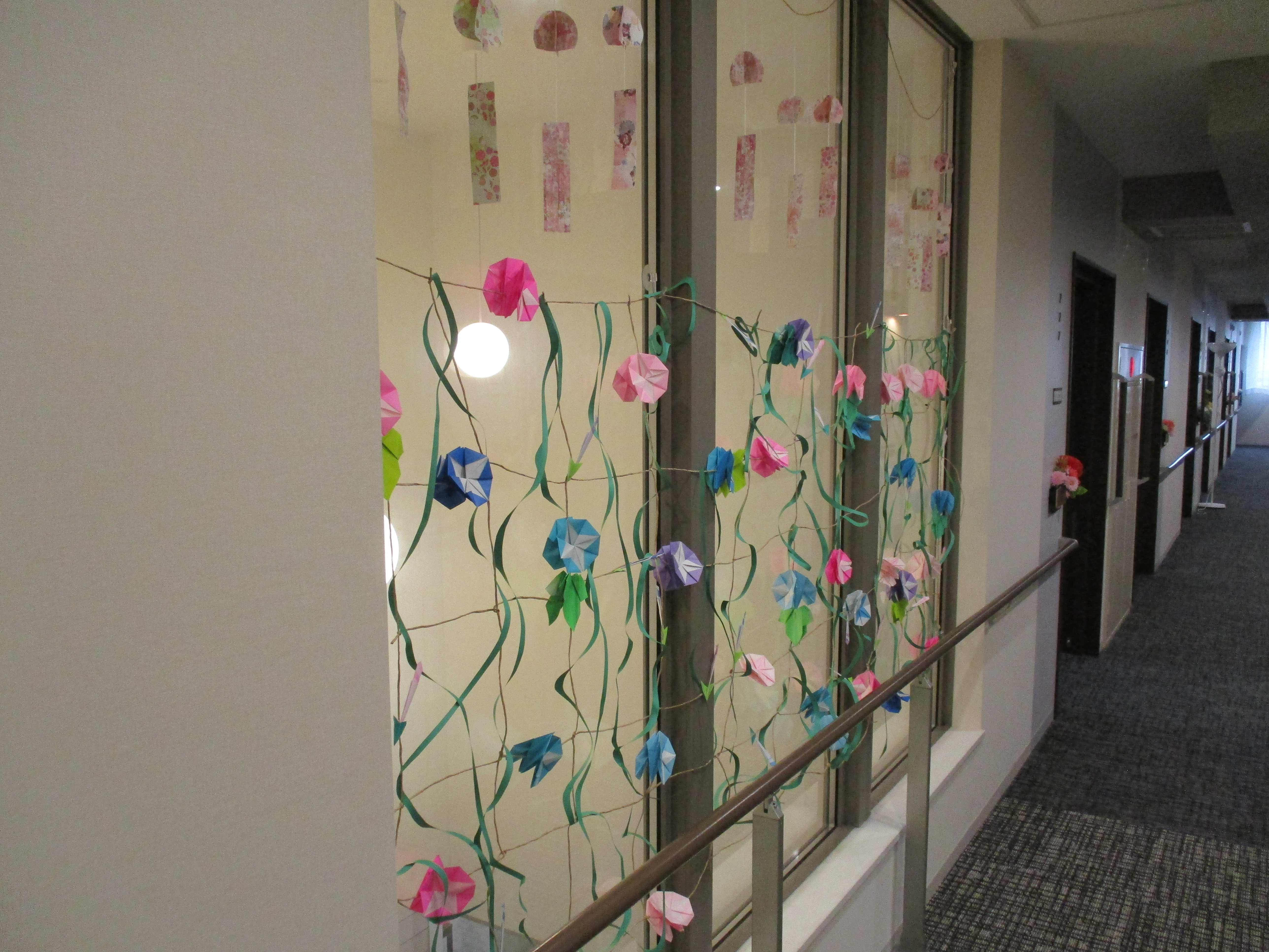 すっかり梅雨が明けましたね。 今月は朝顔がガラス壁に咲いております。 面会でいらっしゃった際には、ぜひご確認ください!!