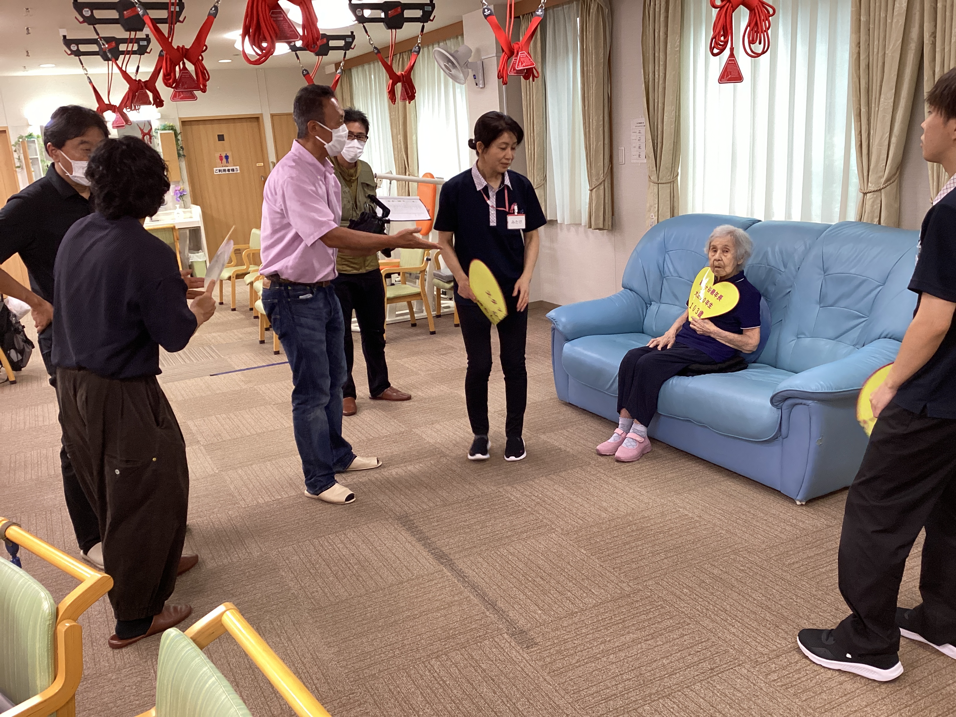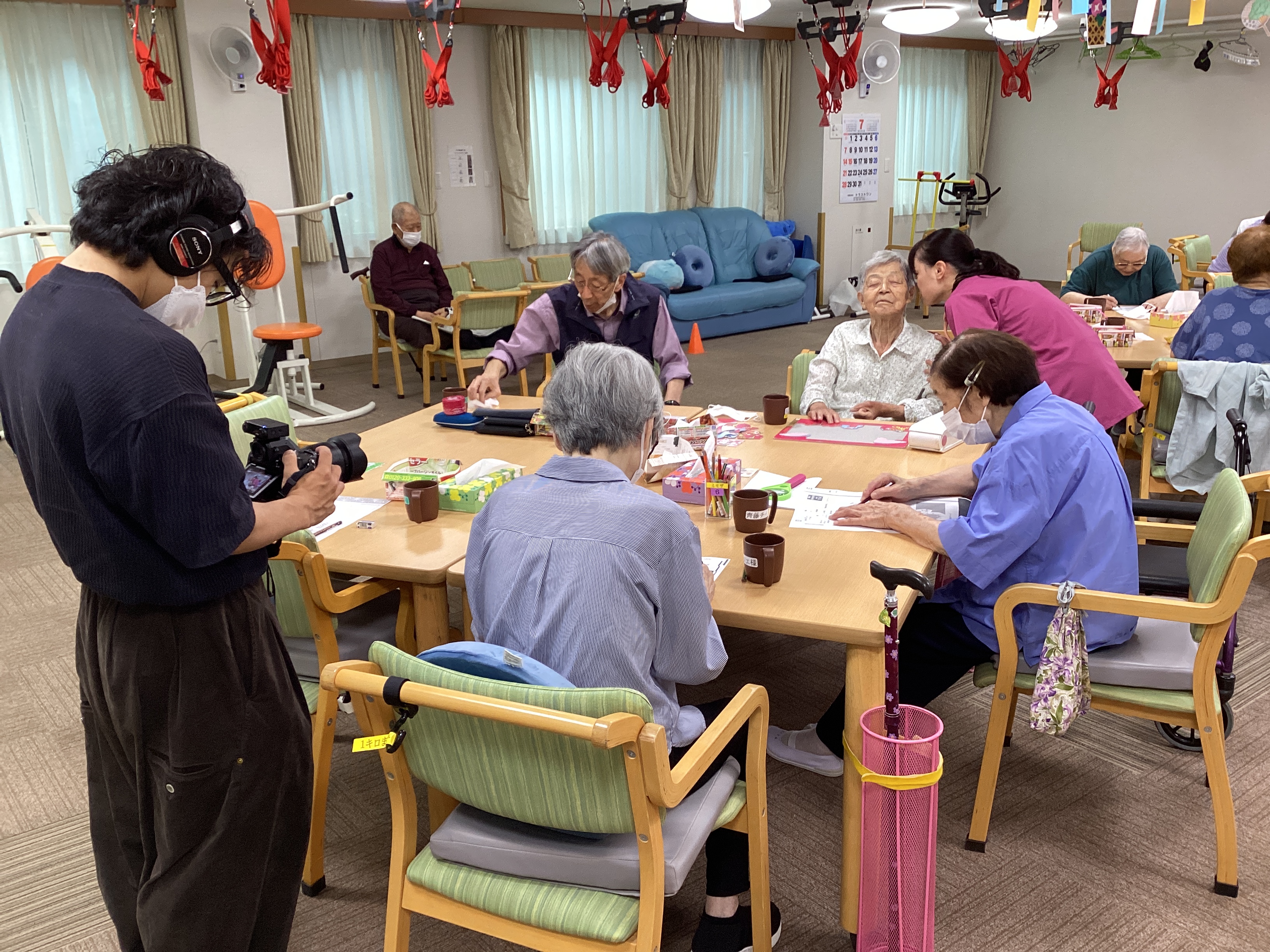 この度、ミモザ獅子ヶ谷デイサービスでYouTube撮影が行われました。ご利用者のインタビューや獅子ヶ谷エンジェルスのインタビューがあり緊張しながら撮影に臨みました。いつもと違う雰囲気に皆様、興味津々でした。
