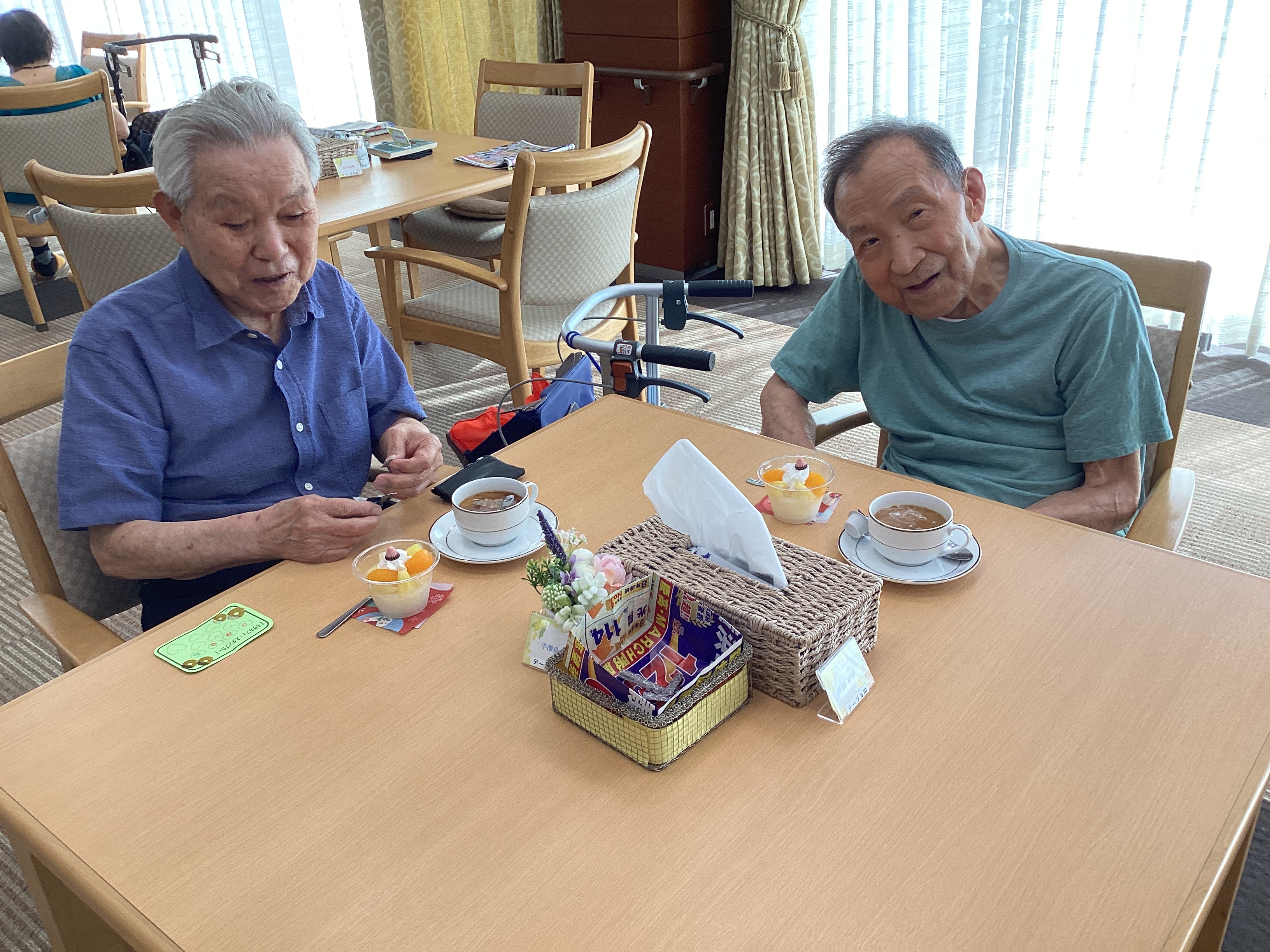 毎回ご好評を頂いているミモザカフェを開催しました。 今回はフルーツゼリーをベースに夏を感じていただけるよう柑橘系の果物を中心に盛り付けたところ、皆さま美味しい!と喜んでいらっしゃいました。 また次回のミモザカフェをお楽しみに~♪