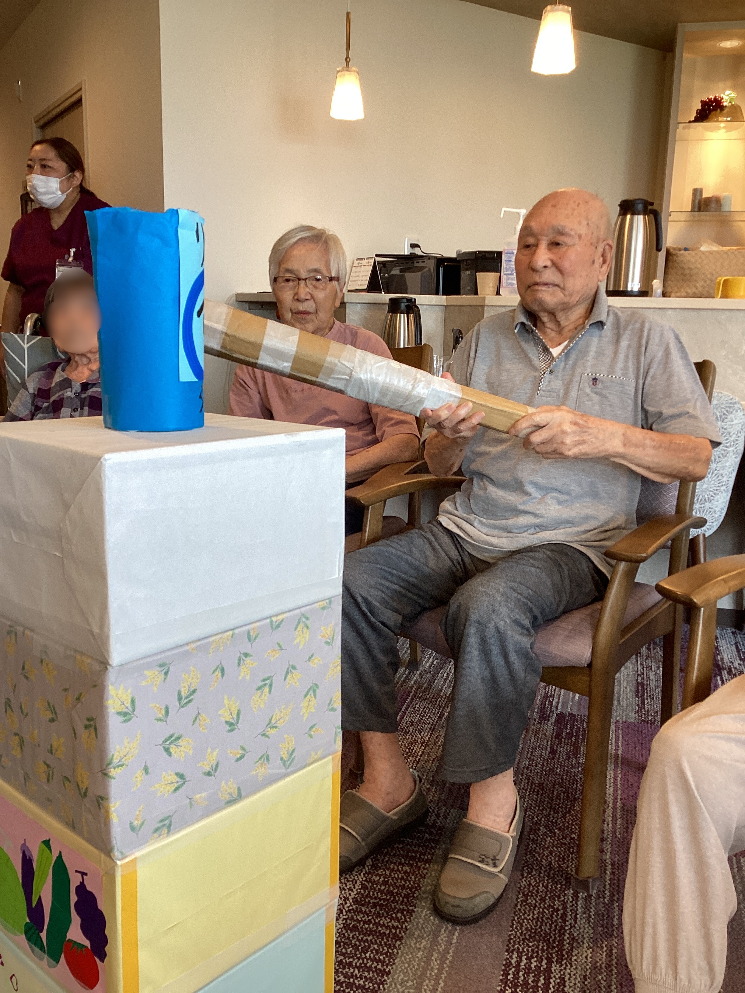 お誕生日おめでとうございます。(^^♪ ちょっと照れくさそうに喜んで下さいました💞皆様で楽しくだるま落としゲームをして盛り上がりました♬