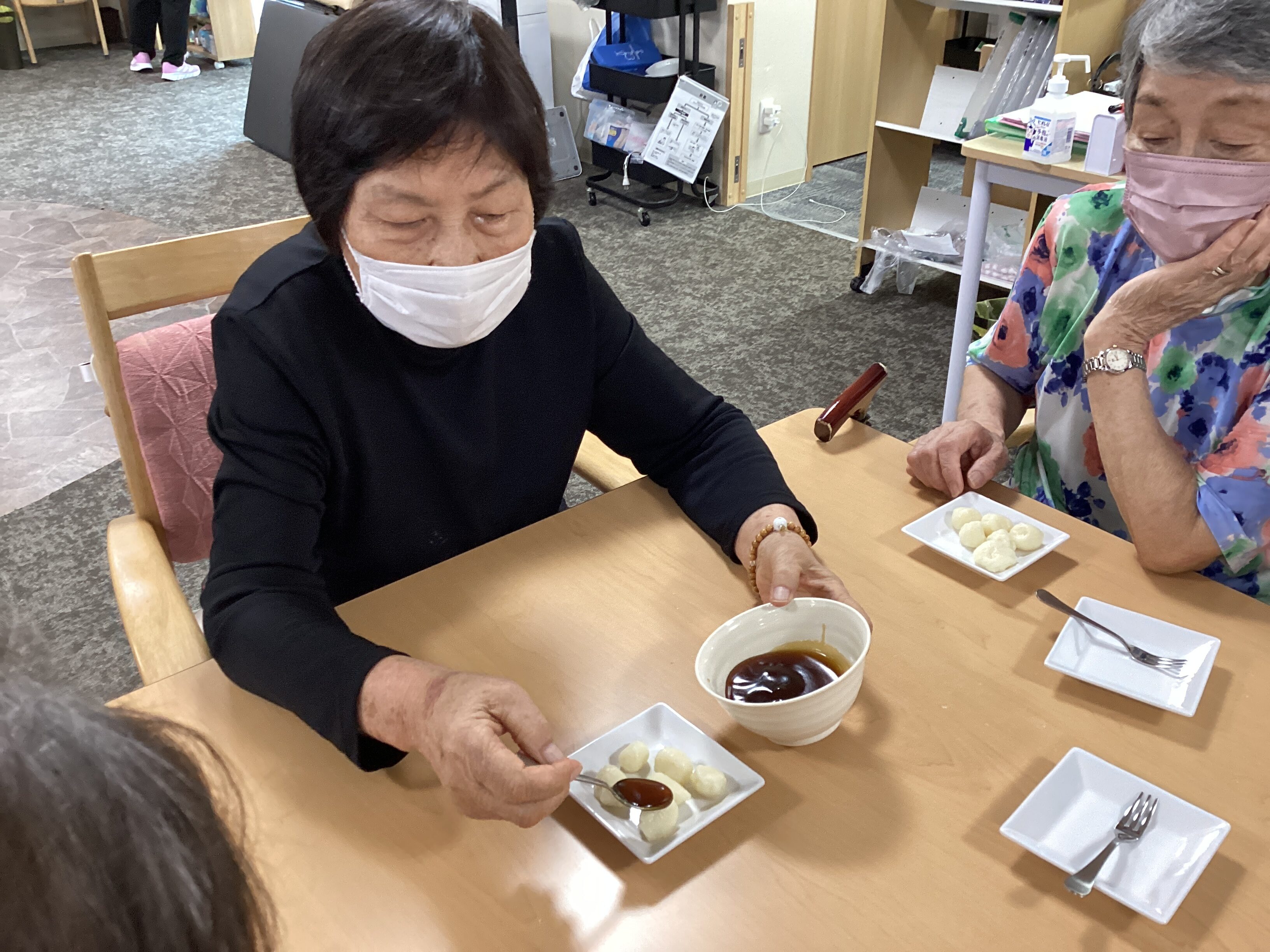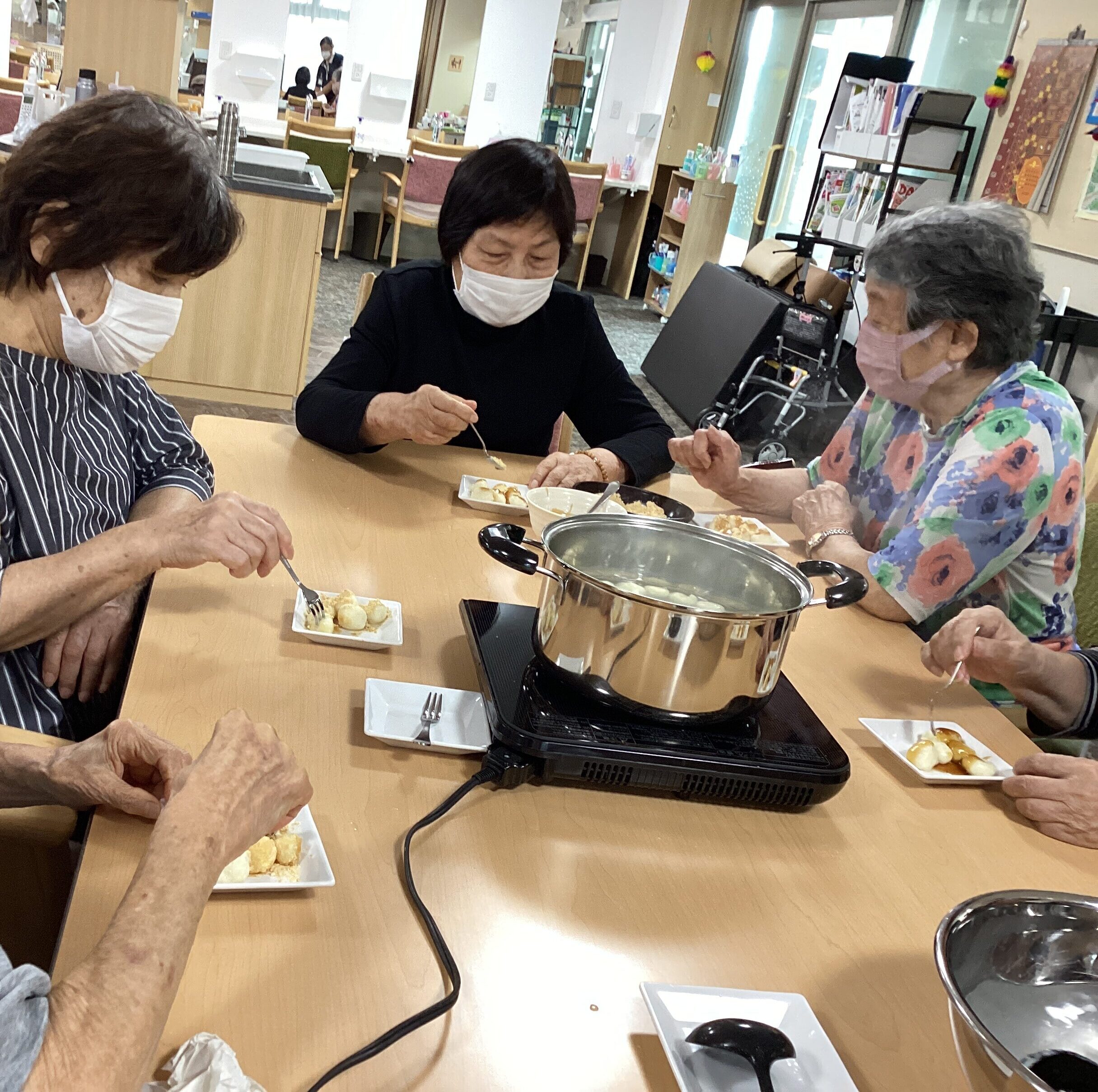 本日もお越しいただきありがとうございます。 今週は秋を先取り!ということでお月見団子作りを しました。「浮かんできたらもういいんじゃない?」「もうちょっとじゃない?」と主婦の大先輩方 からありがたいアドバイスをいただき、おいしいお団子ができました!