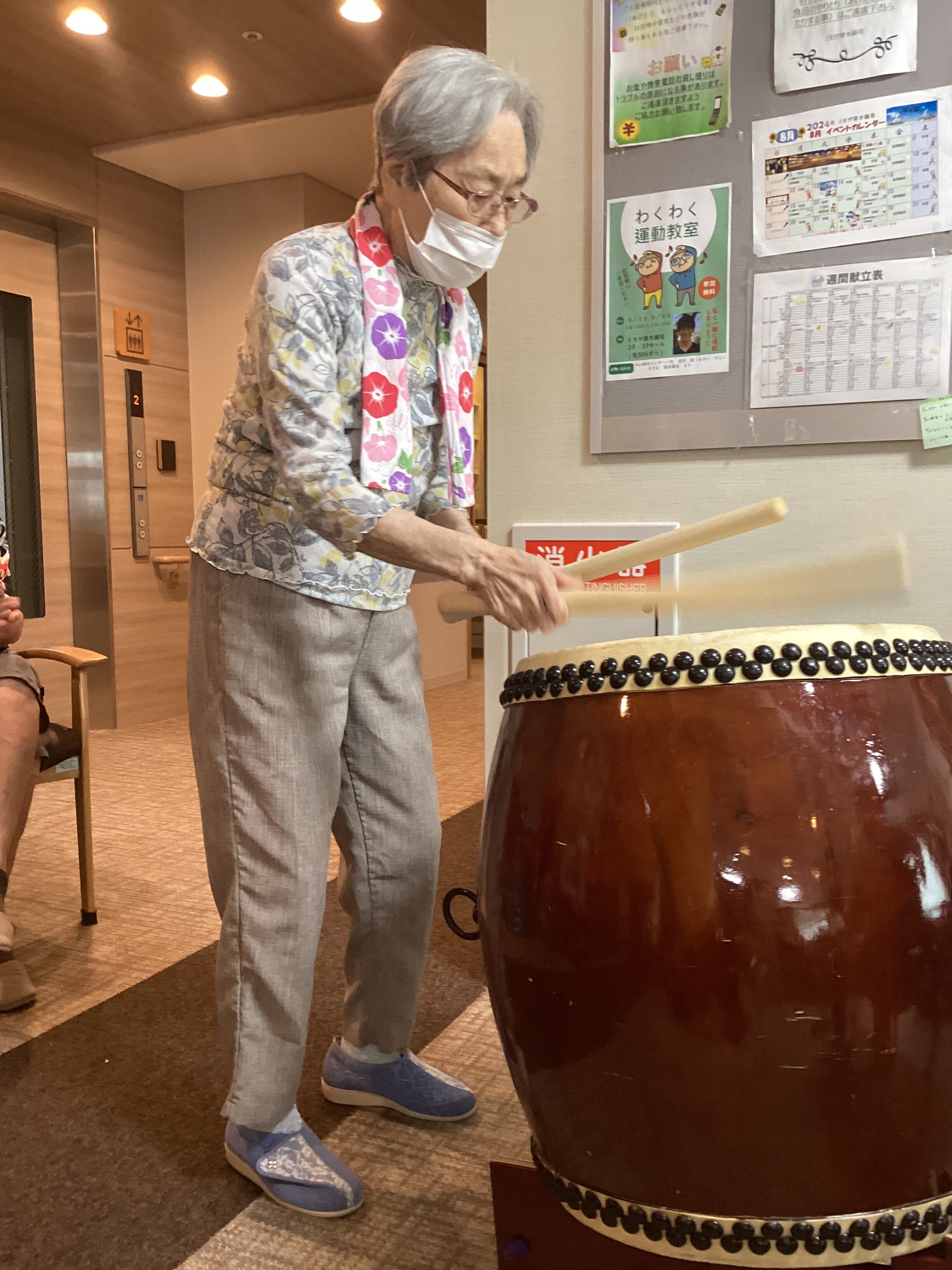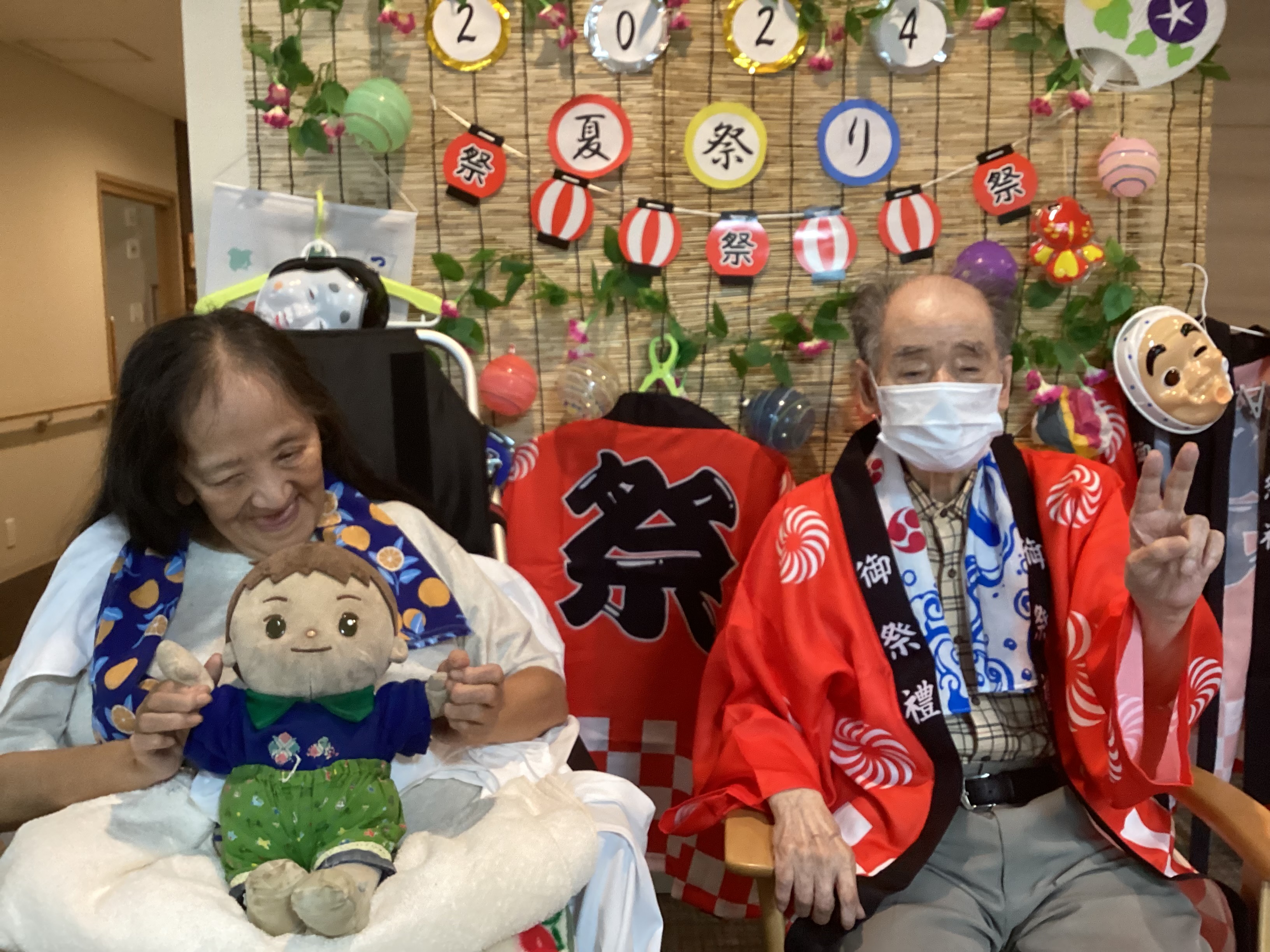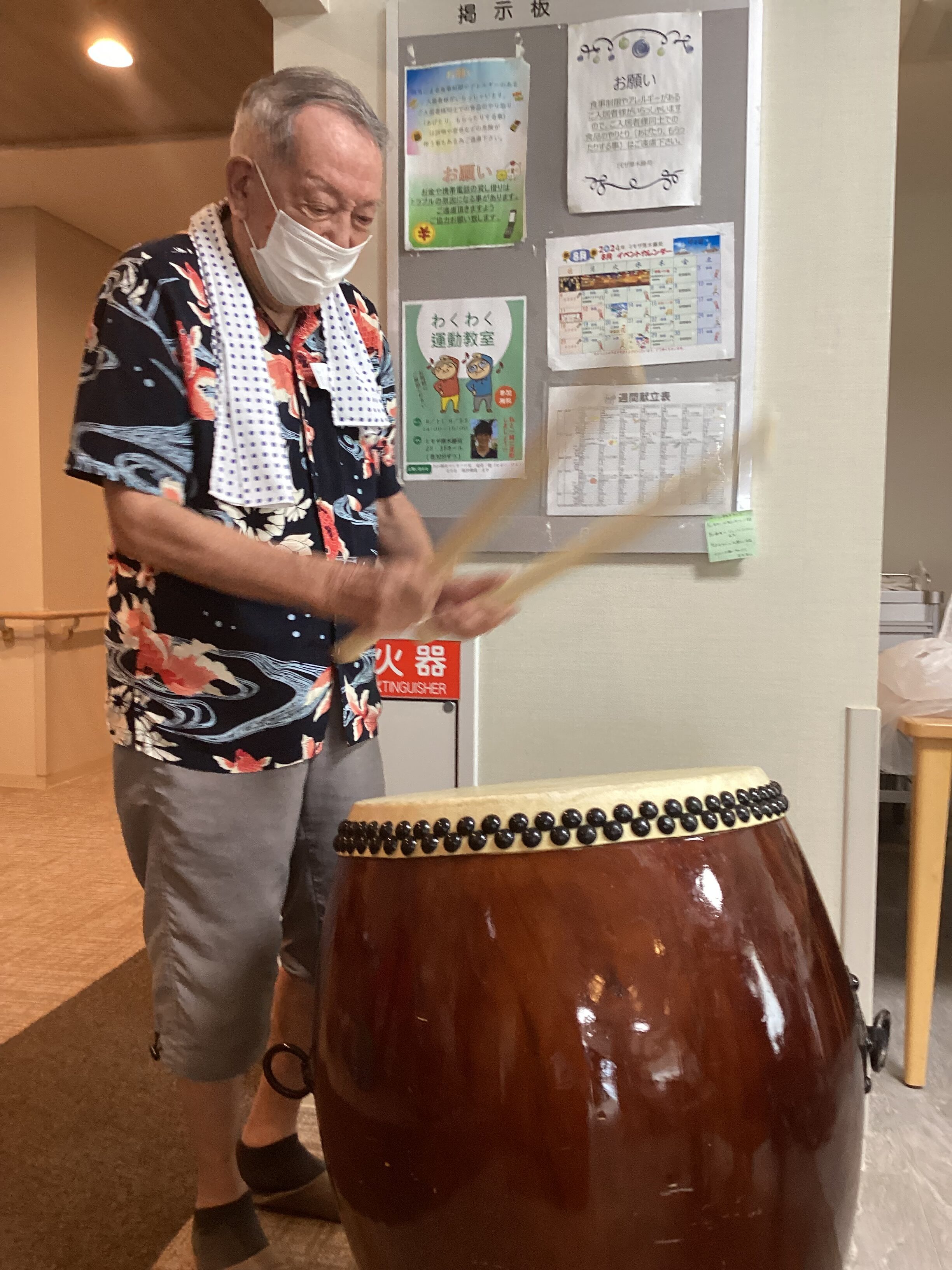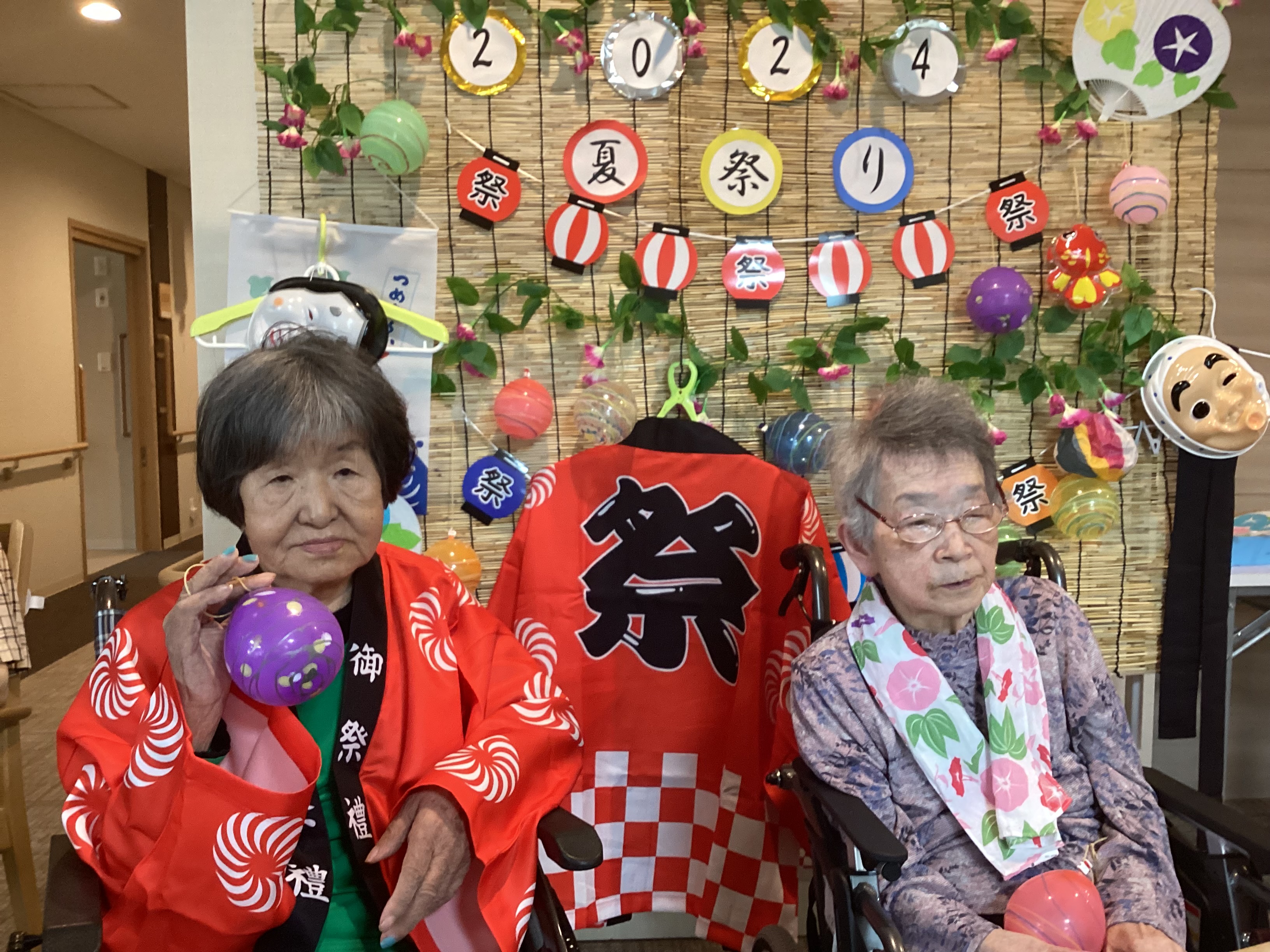 藤苑の夏祭りを行いました。 2階と3階に分かれて行いましたが、それぞれの盛り上がり方で楽しめました。 魚釣り、玉入れ、夏の飾りのフォトスポットで写真撮影を行いました。 和太鼓演奏や盆踊りも行い、盛り上がりました。