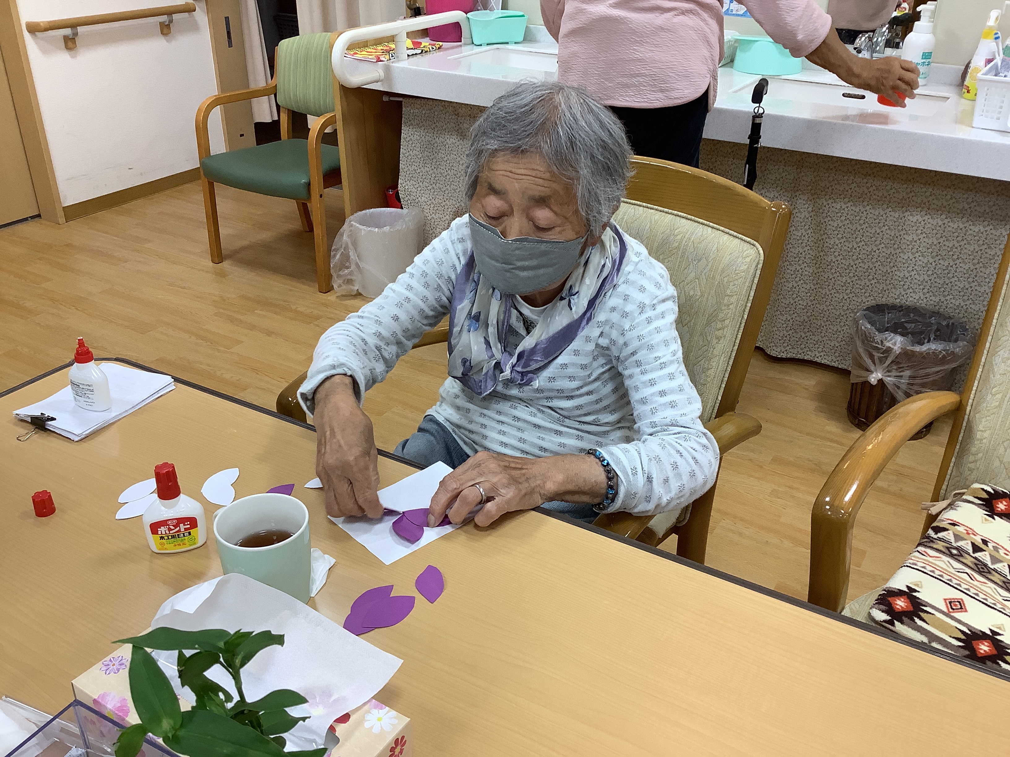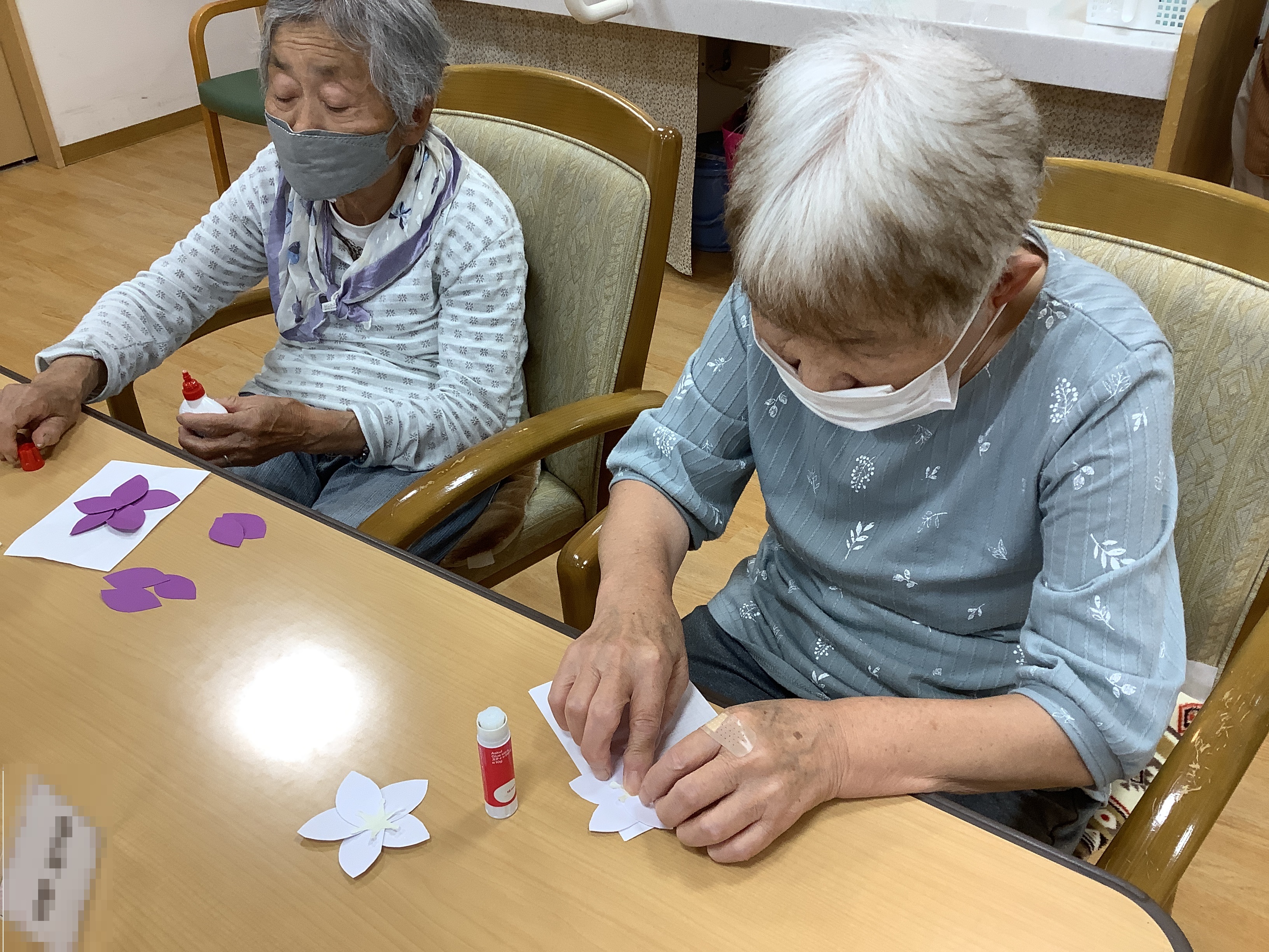 9月の飾りとして、桔梗の壁面飾りが完成しました♪