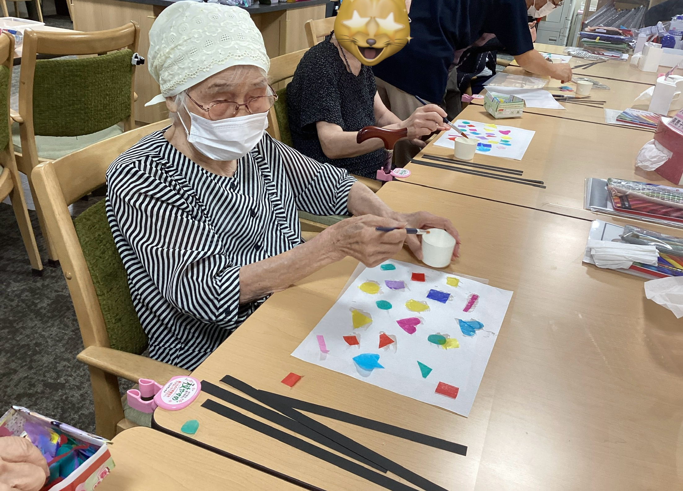 本日もお越しくださりありがとうございます。さて、ミモザではランプシェード作りを行いました。皆さん、真剣に模様の紙をのり付けし、色とりどり、世界に1つだけのランプシェードが完成しました!秋の夜長にどんな明かりが皆さまを照らしてくれるでしょうか。