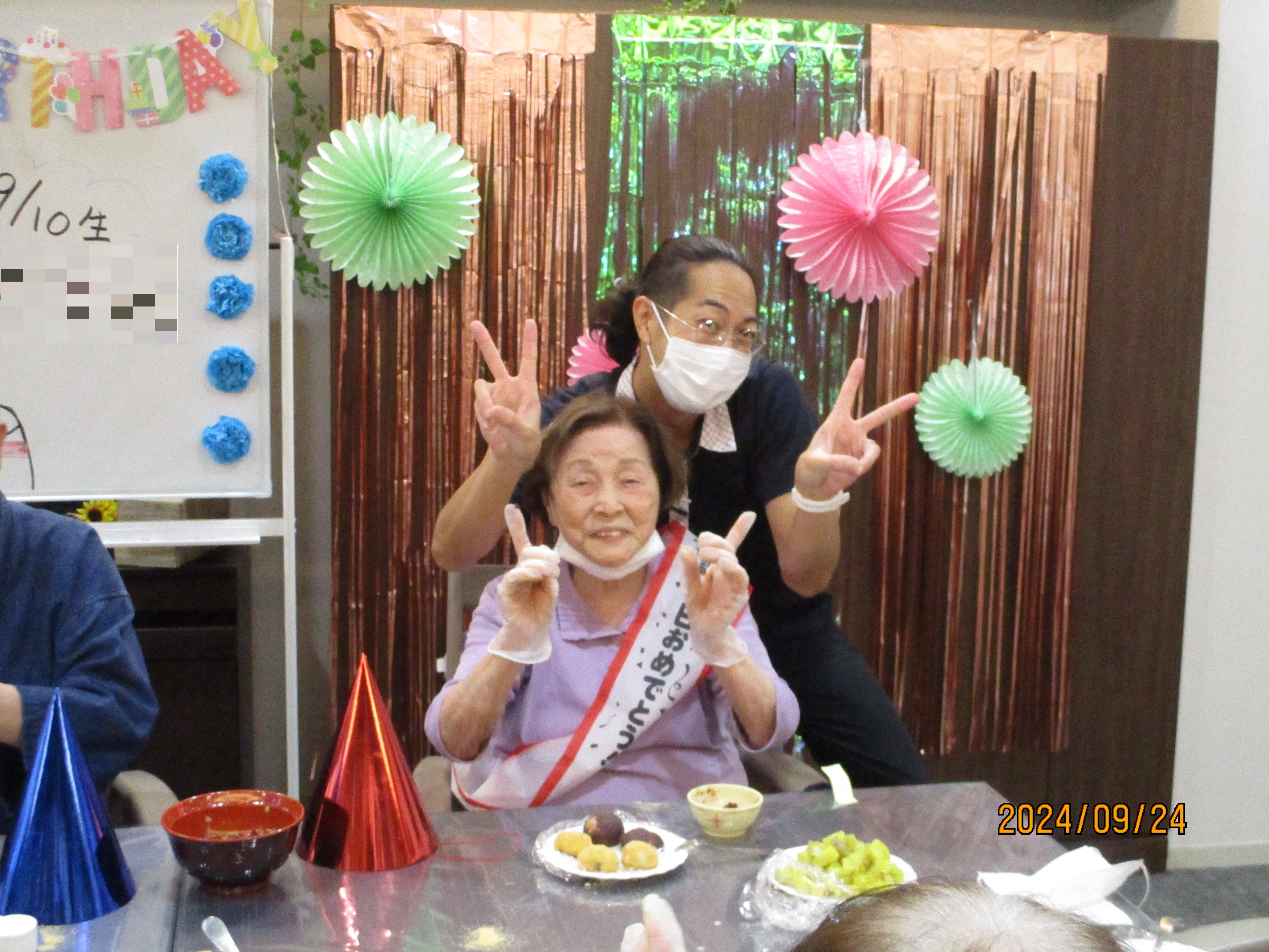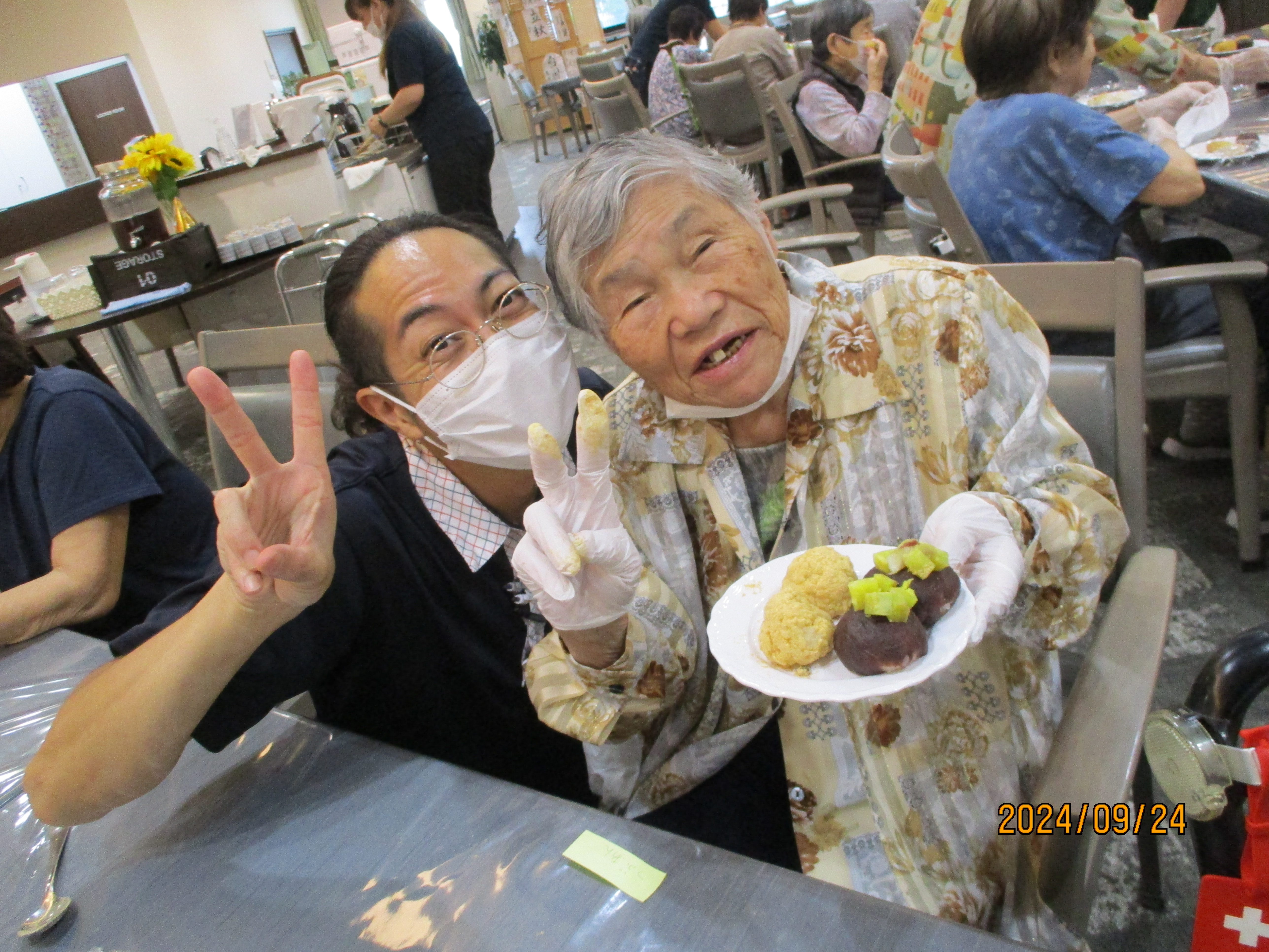 今日は9月誕生日の方を、お彼岸らしく皆さんでおはぎを手づくりしてお祝いしました。