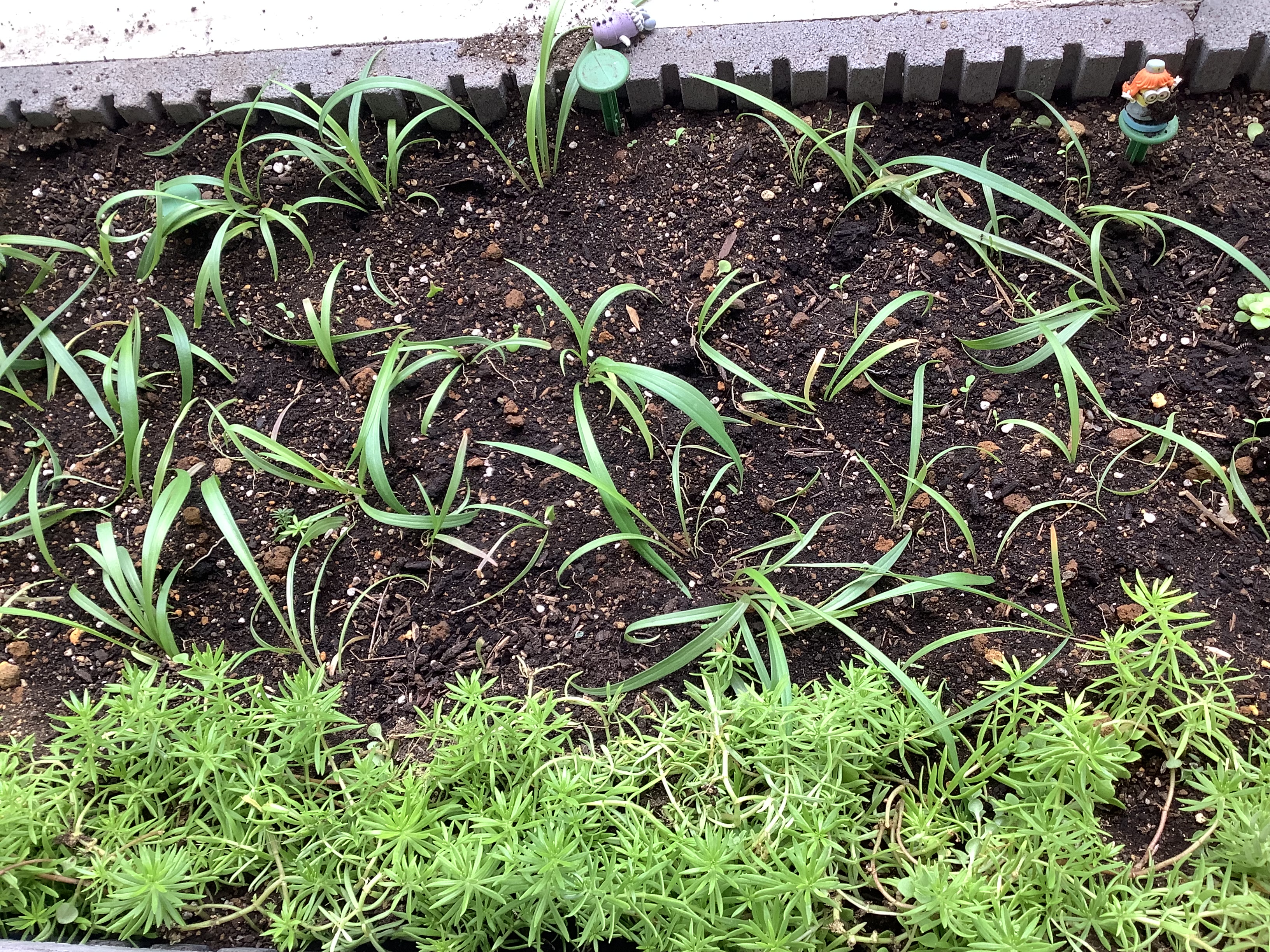 だいぶ涼しく過ごしやすくなってきました。秋に向けて花壇の手入れをしました。種から育てたタカサゴユリも大きくなり、プランターから花壇に植え替えました。