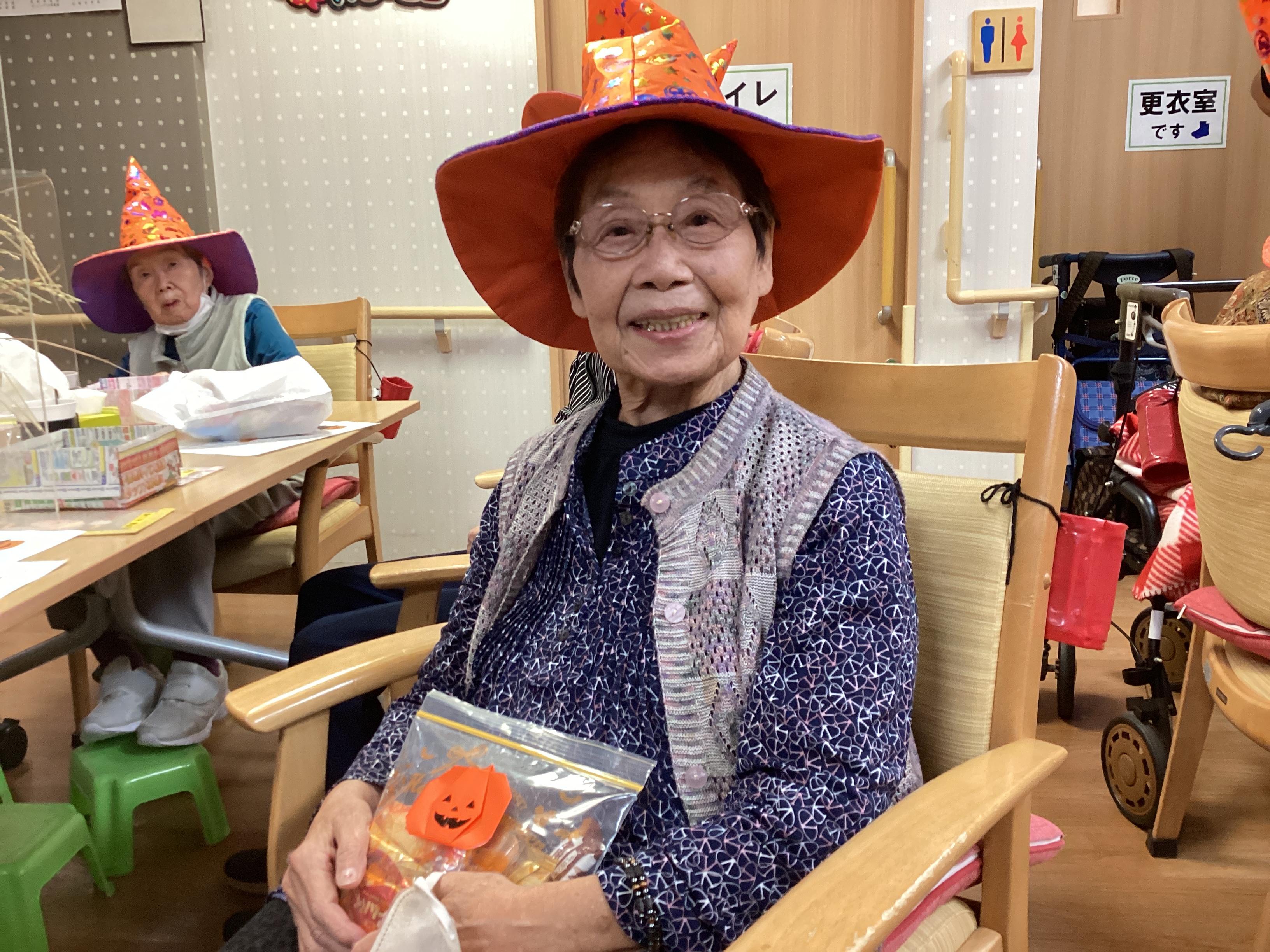 ハロウィンの帽子を皆様に被って変装して頂きました。 お菓子のつかみ取りを行いたくさんお土産が出来ました☆