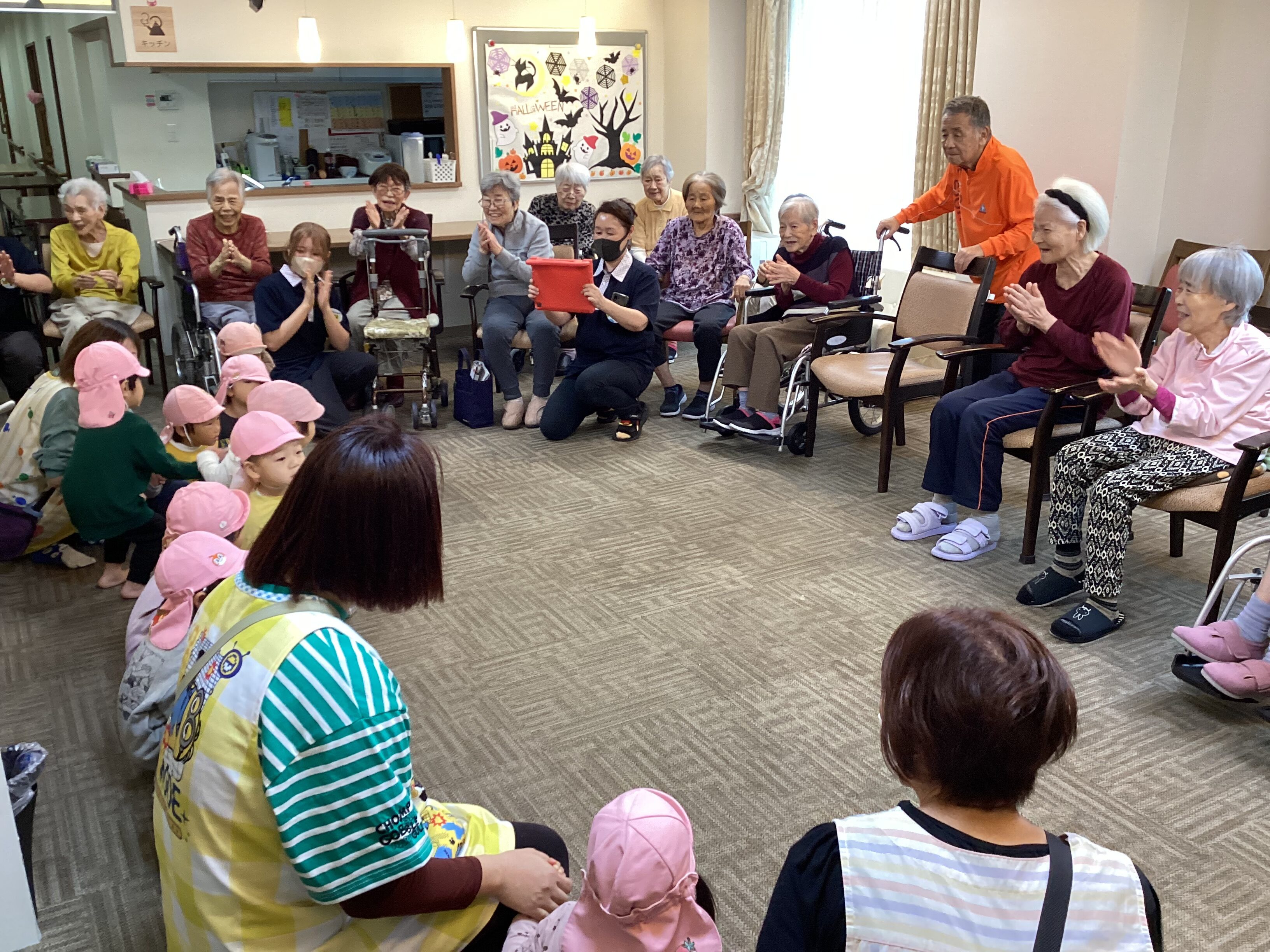 本日はめいせい保育園の皆様が遊びに来てくれました!!とても可愛らしく、元気いっぱい🥰 小さいお子さんから癒しと元気をたくさんもらいました!!ご利用者様も涙ぐみながら交流を楽しんで頂けました。 世代を繋ぐ交流が皆様の心の健康に繋がることを、、🥰