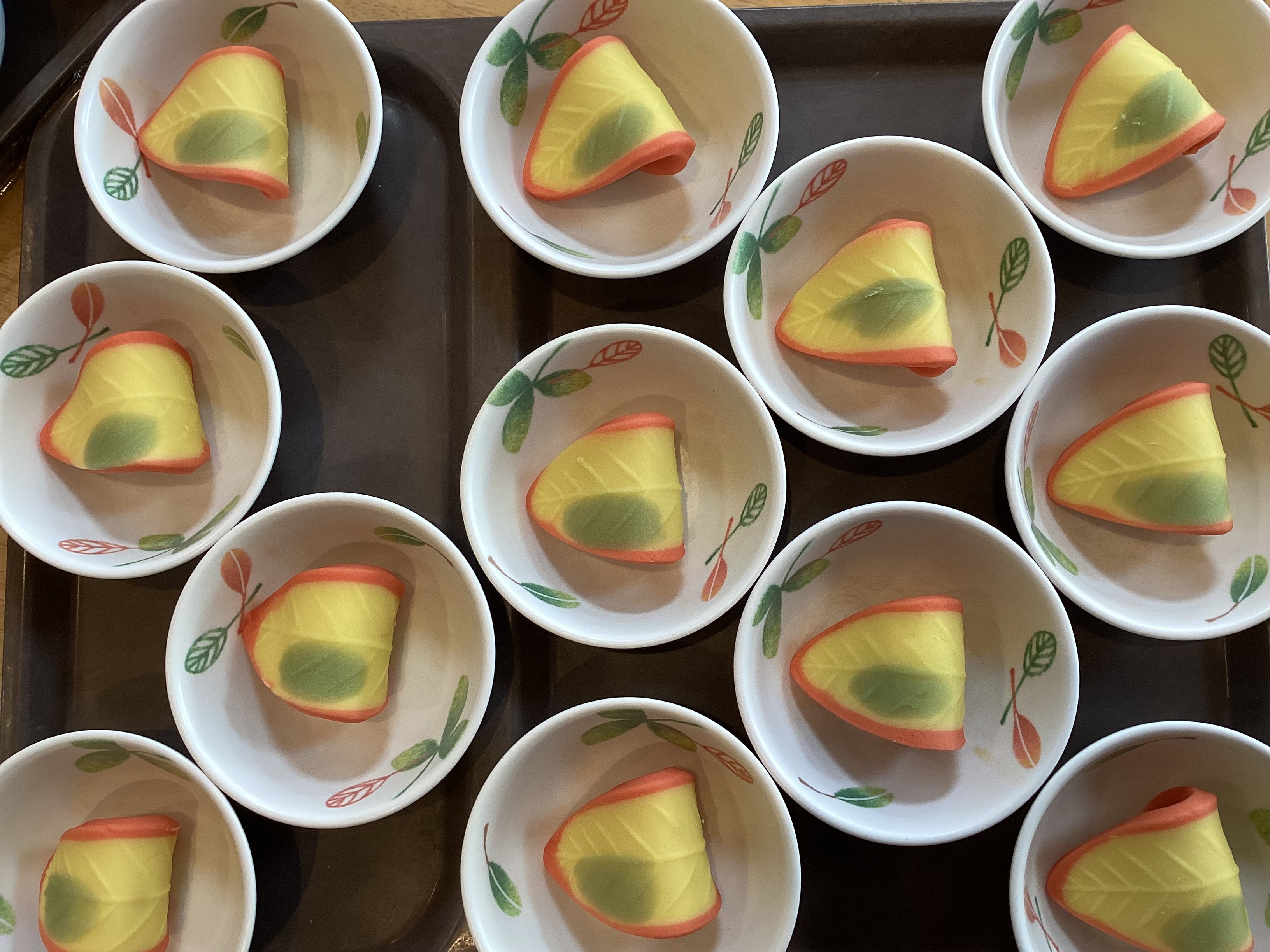 おやつの時間も楽しんでもらいたい!と厨房の方々が考えて下さり、毎日ではありませんが可愛らしい和菓子が出てきました。 食べるのもったいないわねと話しながらもしっかり召し上がっている皆様です!!! 会話も弾み、いつもと違うおやつの時間にもなりました。