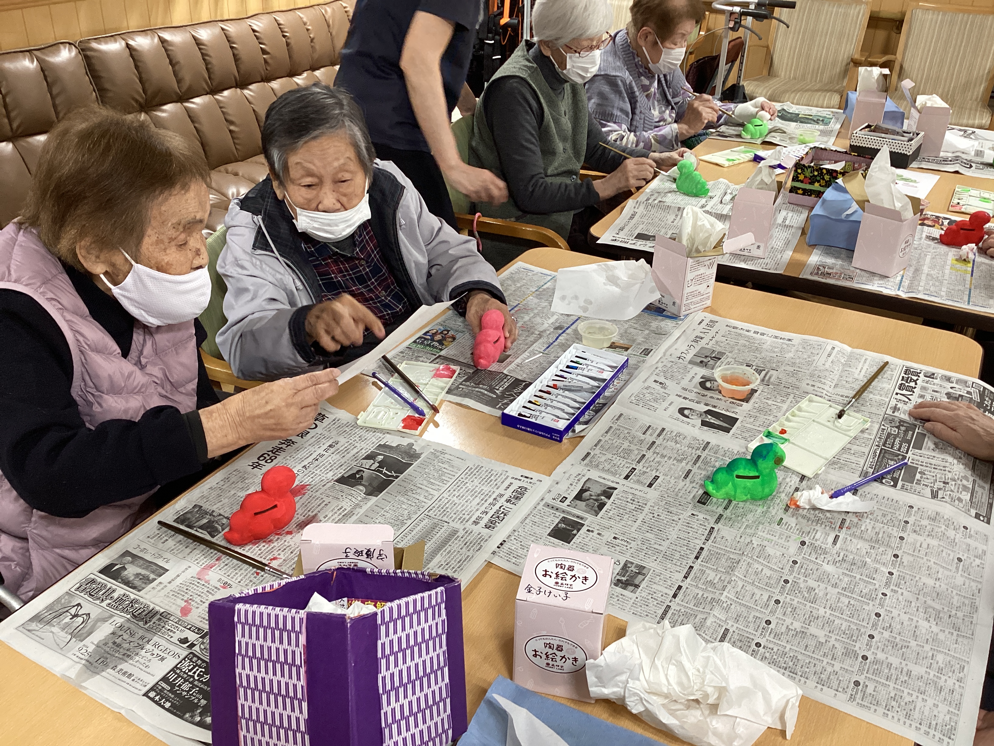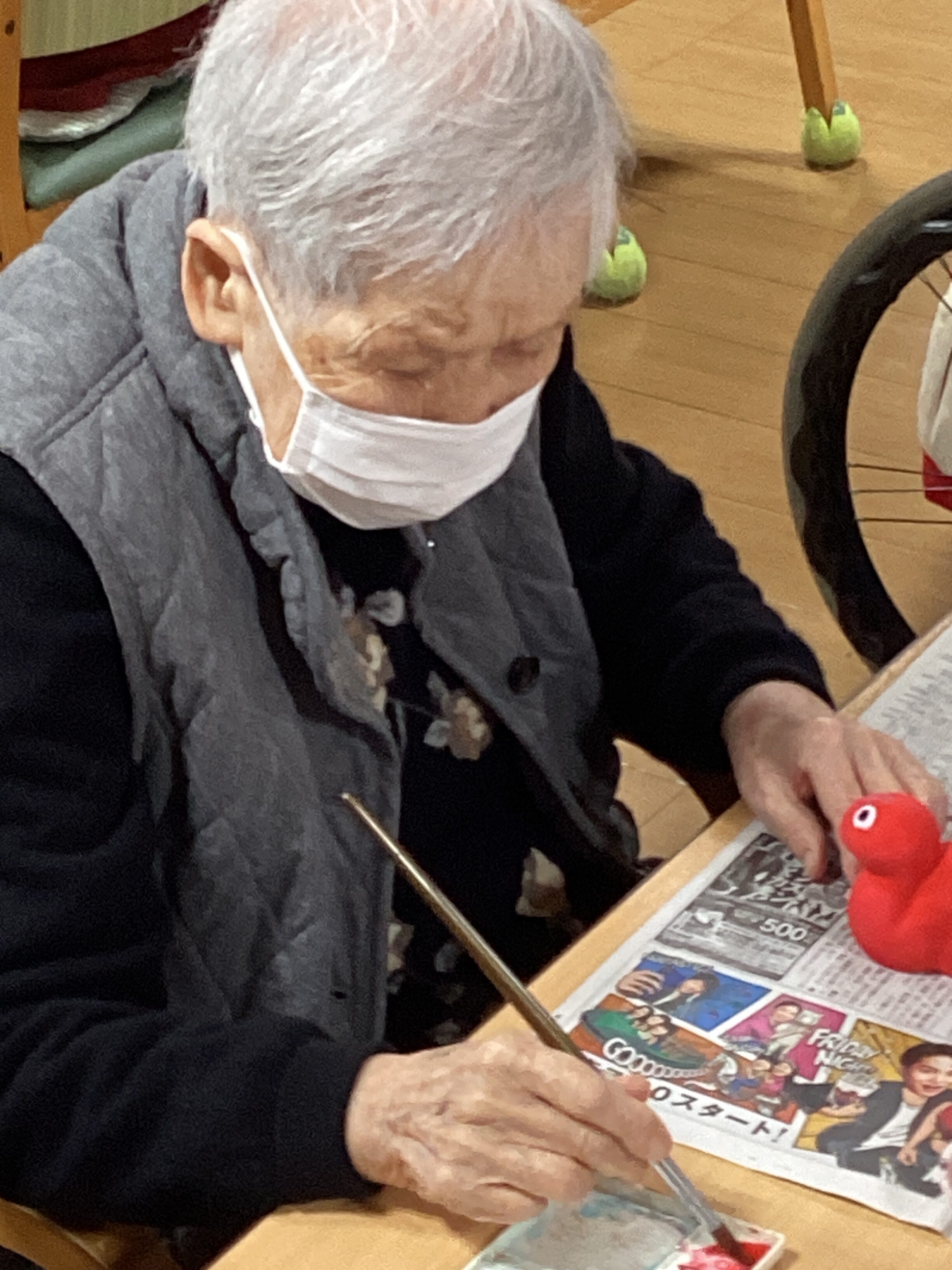 今日から少しづつお持ち帰り作品をレクで始めました。今年のお持ち帰り作品は来年の干支の「へび」🐍 素焼きのへびに好きな色や柄を付けて頂きます♬「何色にしようかな~」「柄はどうしようかな~」と頭や指先を使うので脳トレにもなり、皆さん楽しんで行ってます♬