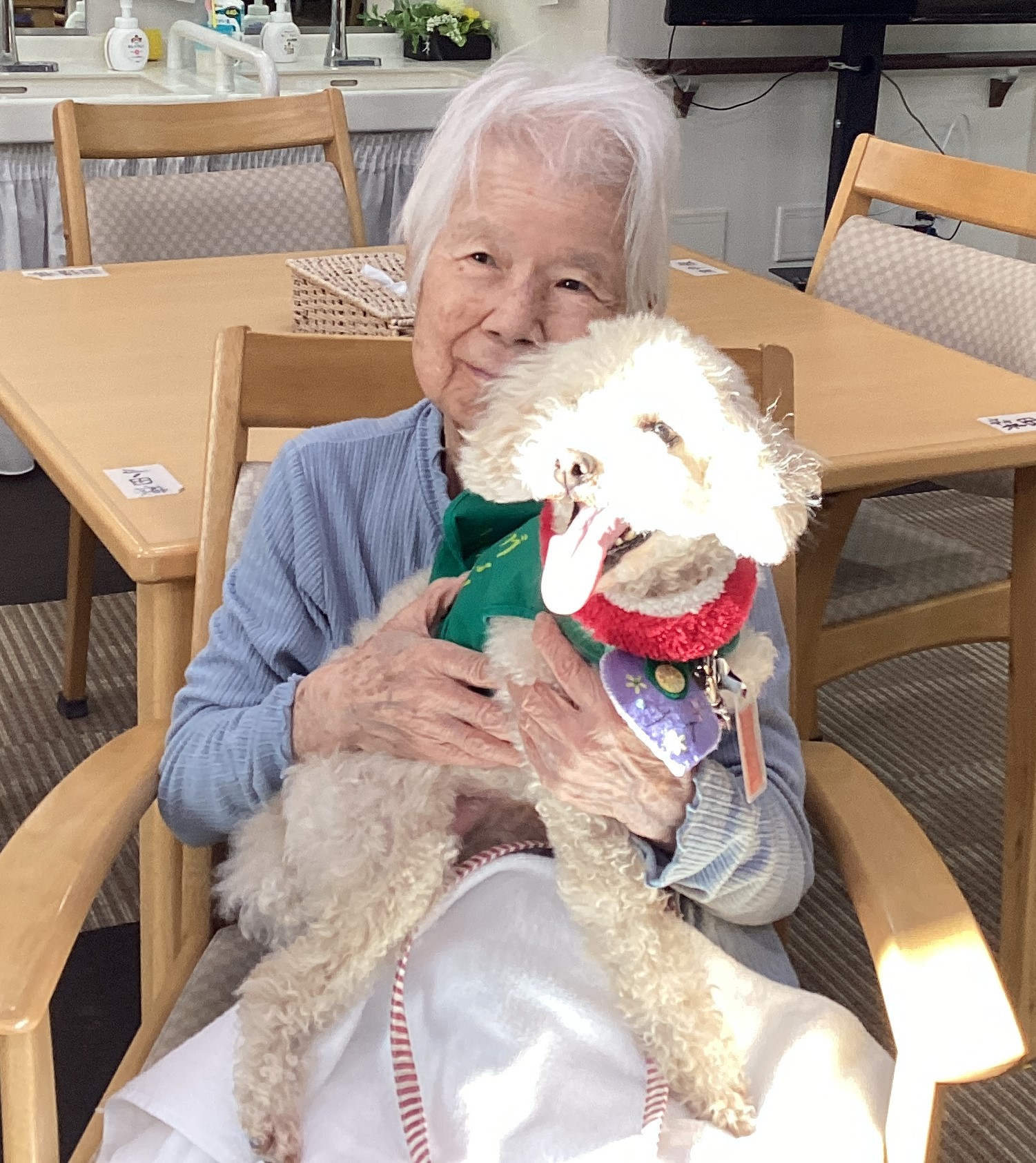 元気いっぱいのワンちゃんが来てくれました。皆さんとても楽しそうに触れ合っていました。