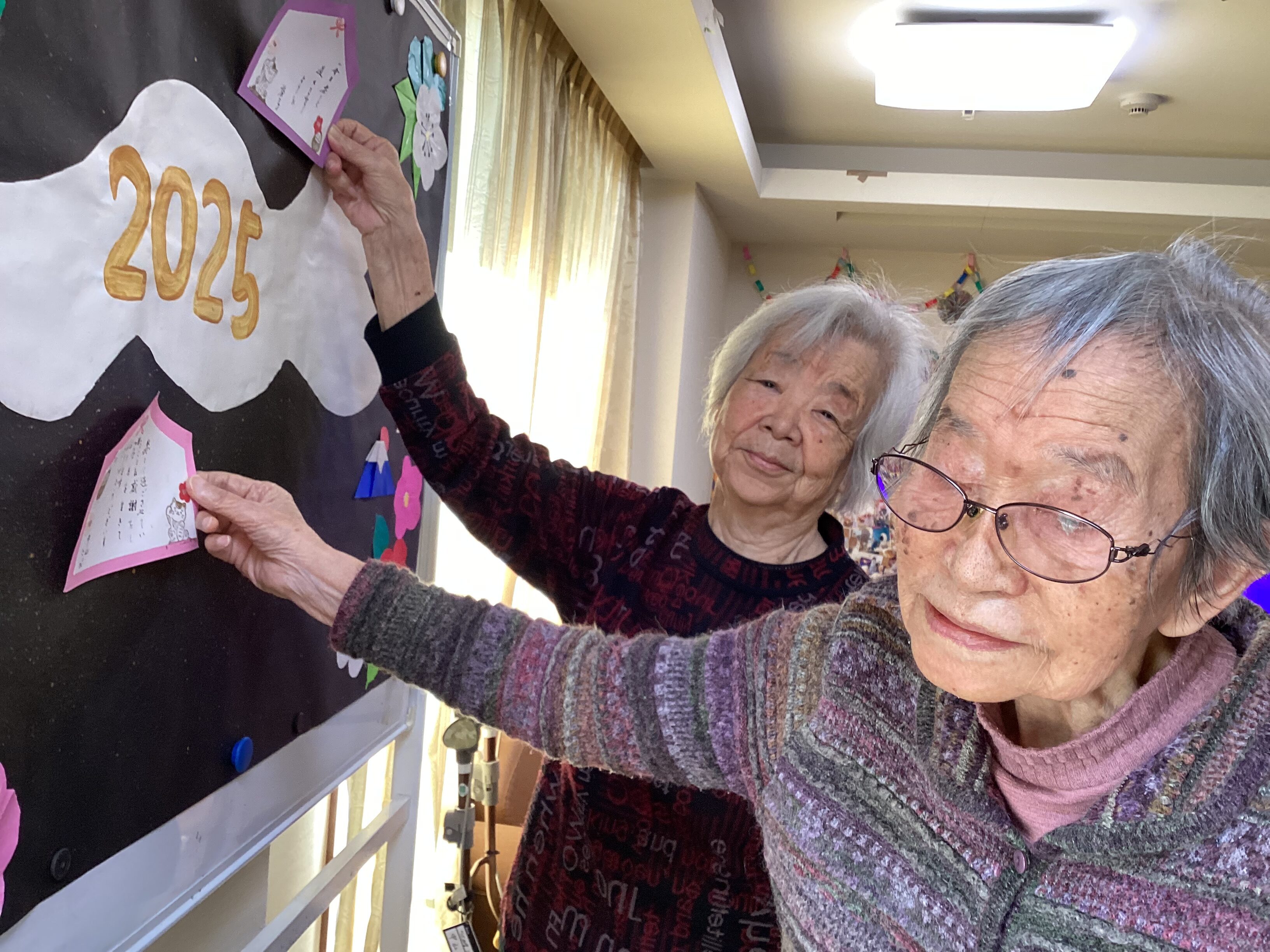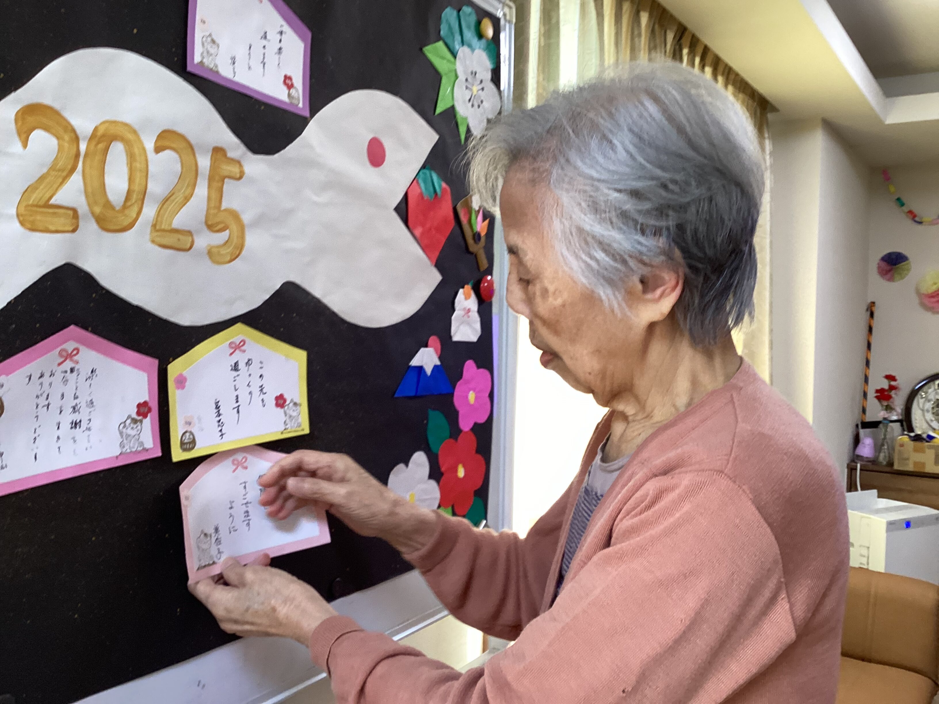 新年の抱負や願い事を絵馬に込めて、、♡♡ 今年は巳年として、職員が白巳をミモザ市原グループホームに登場させました♡美しいでしょう♡ 今年もハッピーで巳(み)んなで元気に笑顔いっぱい!張り切って行きましょう!!!