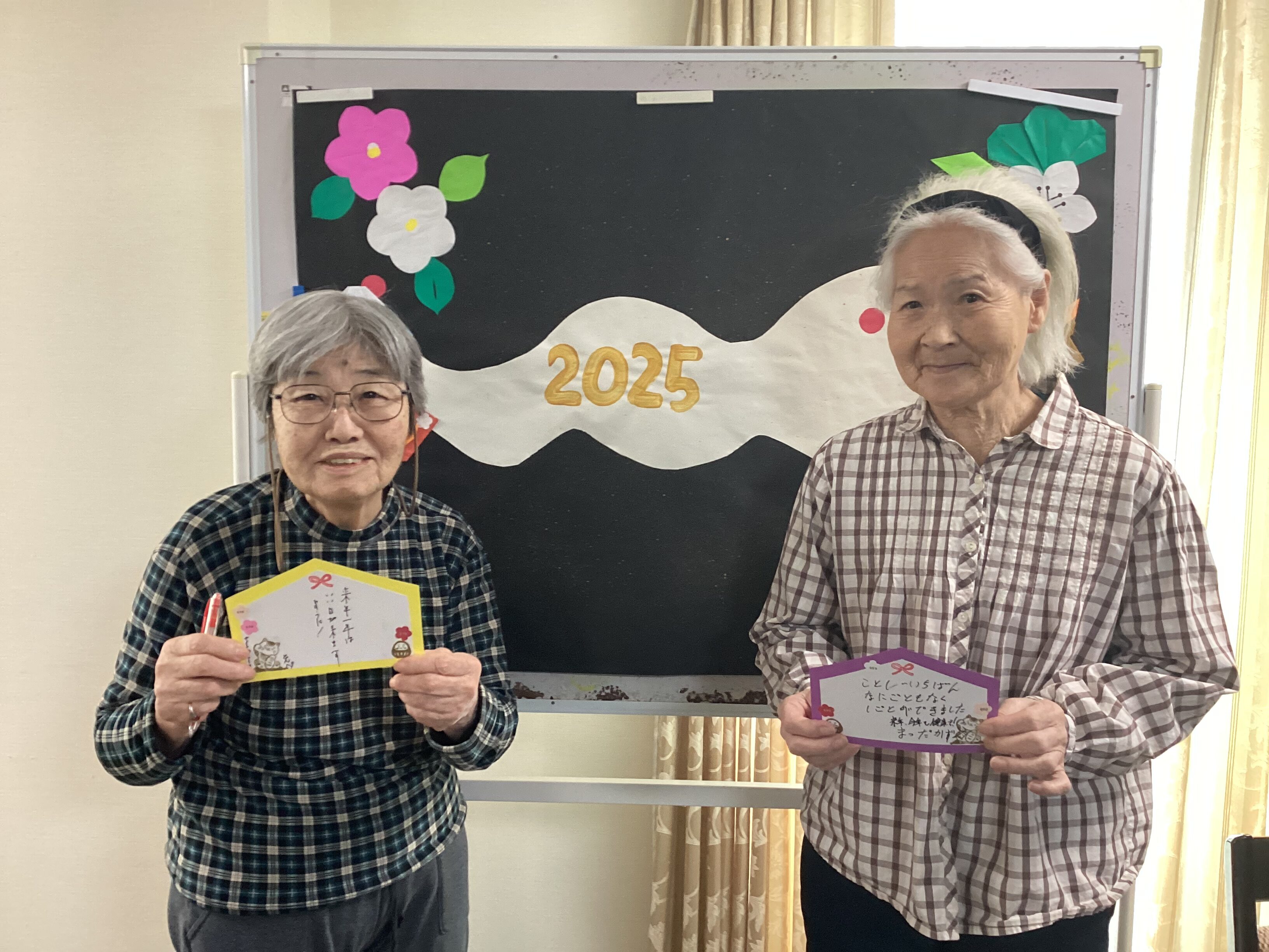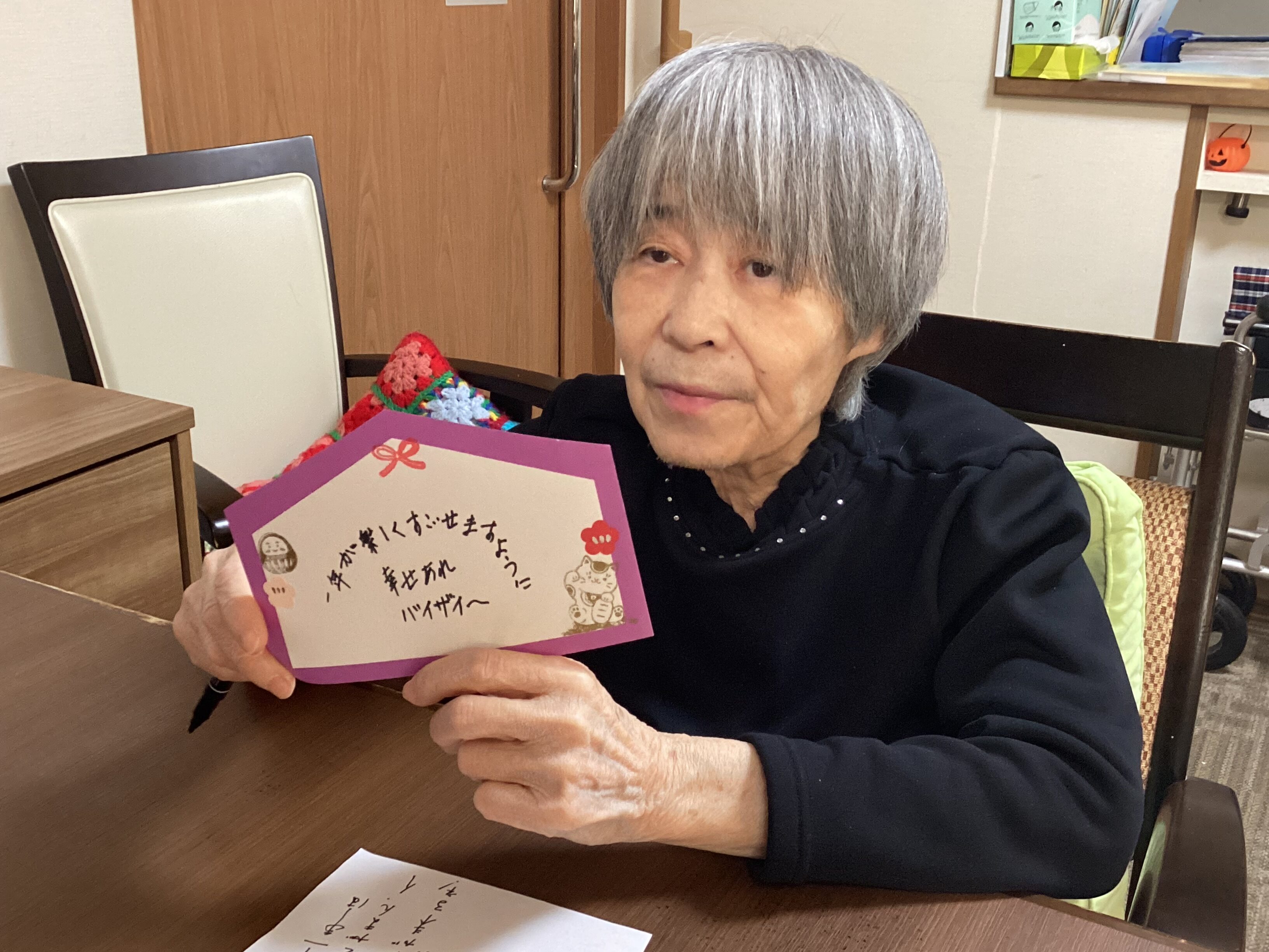 お正月といえばお餅、、ですが、ミモザ市原グループホームではお持ちの代わりに 何だかめでたそうなどら焼き!を御提供させて頂きしました♬ 粒あん派、こしあん派永遠の論争ですよね☻平和な日本のお正月です☻ 絵馬のお写真もお届け♡♡