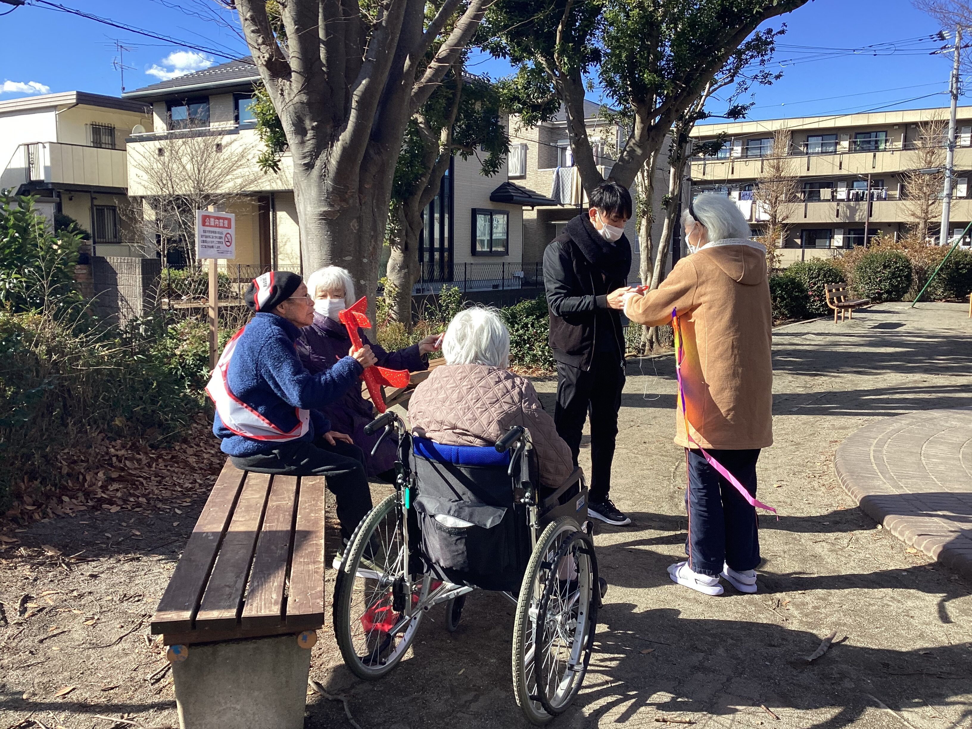 近隣の公園に外気浴をしてきました~♡ ぽかぽか陽気の中、ご利用者様も職員も笑顔が溢れていました!! 公園で凧揚げをしたり、滑り台やブランコをしたりしました♡ その後様子もお届けしますね!!