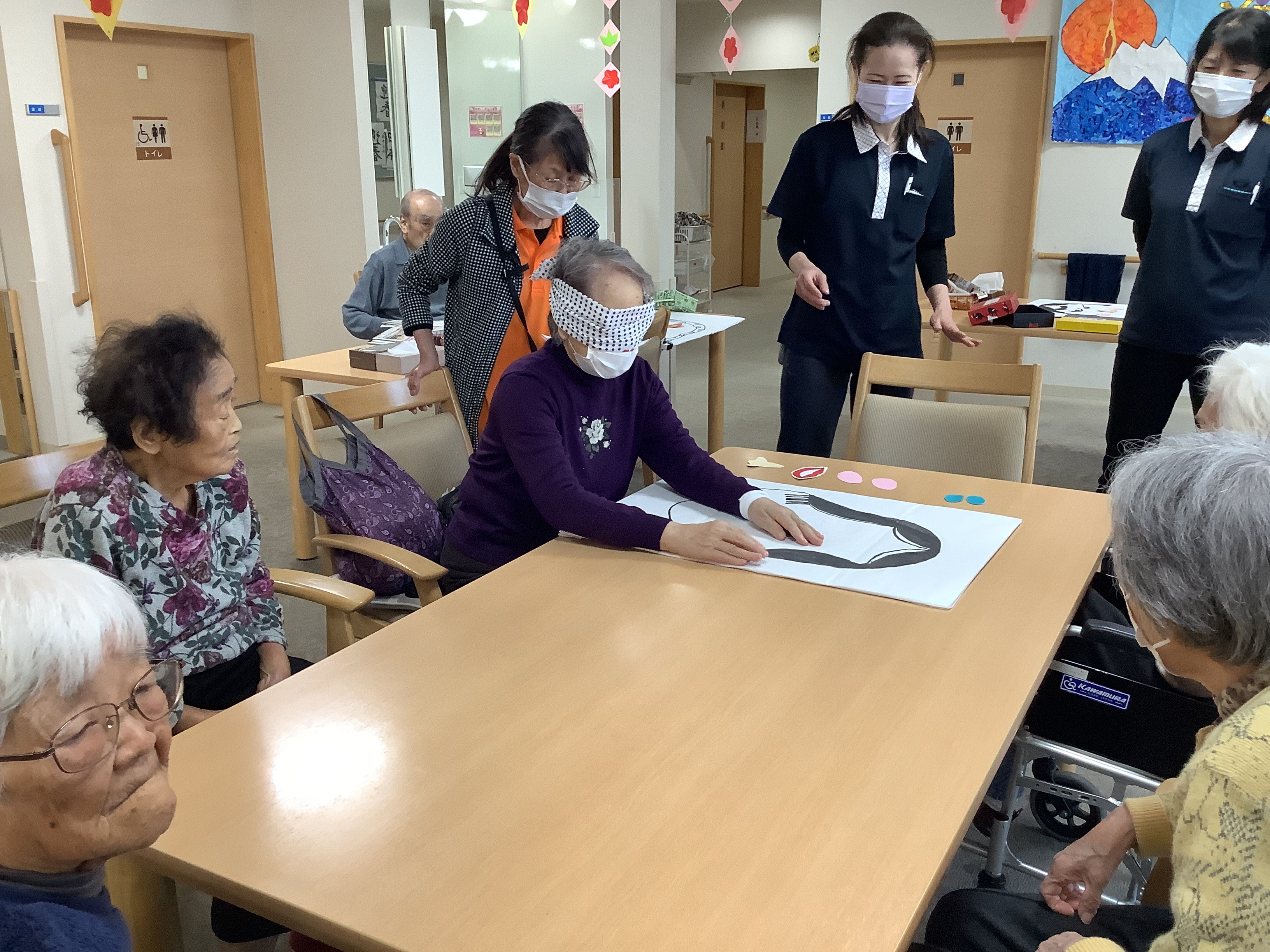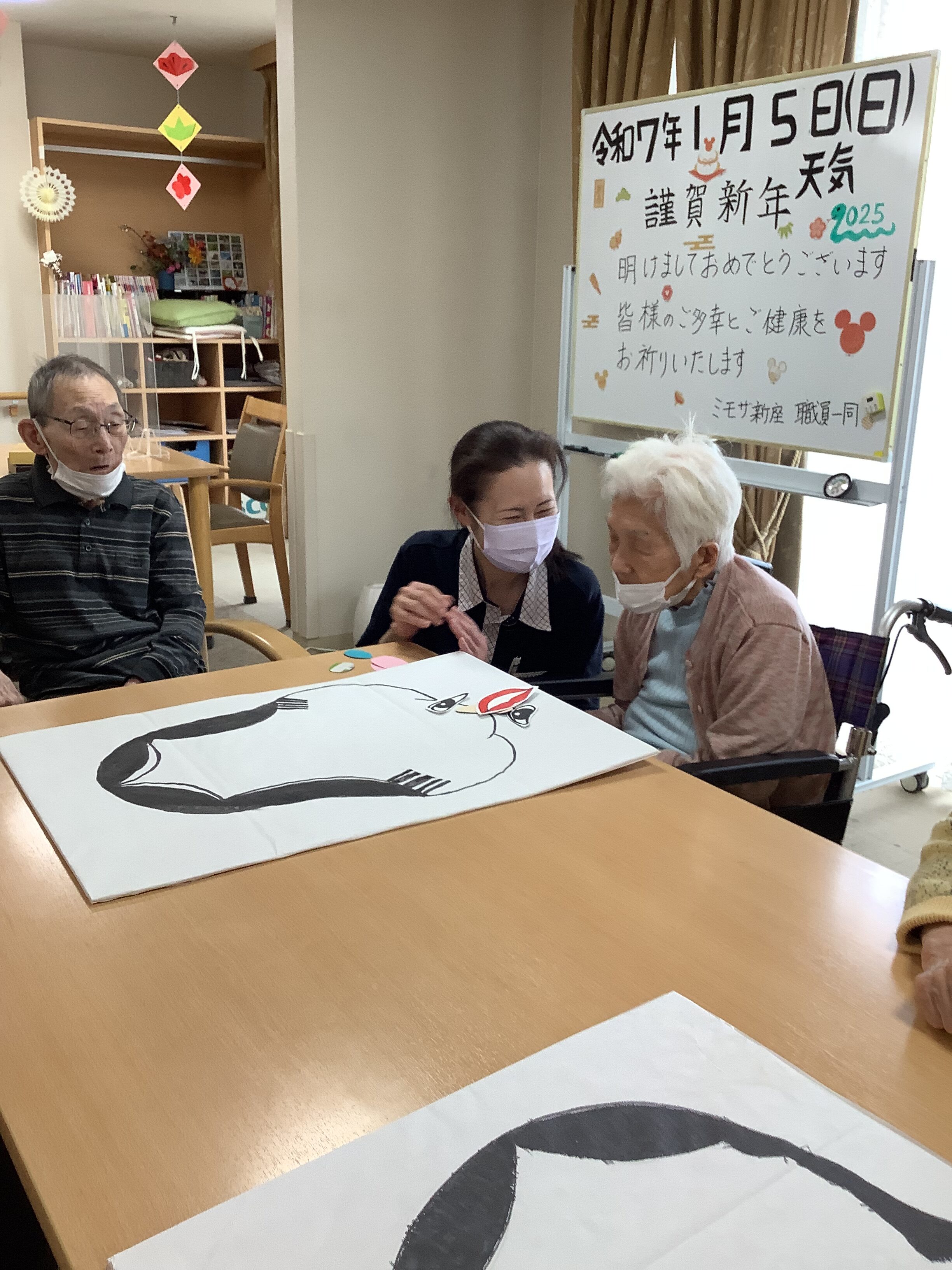 明けましておめでとうございます。お正月の期間、坊主めくりや福笑い、お正月の歌を合唱したり、お習字したりとゆったりのんびり過ごしました。今年も皆さんと平和で良い一年となりますように。