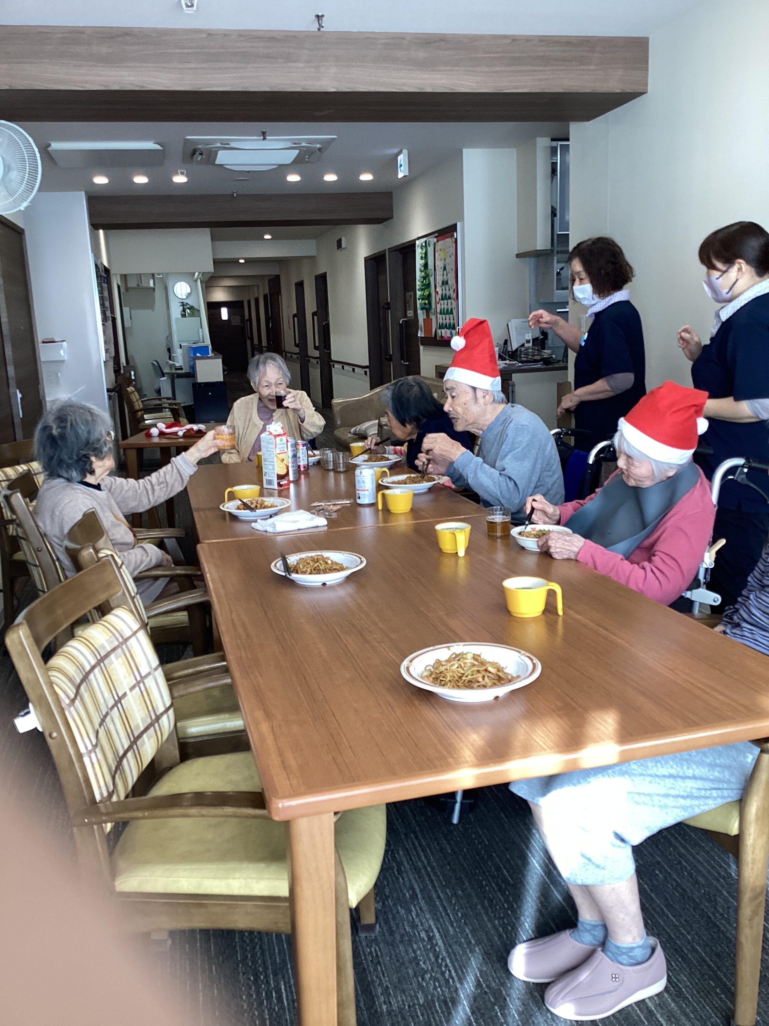 クリスマス会を開催しました。焼きそばやカップケーキを一緒に作りました。
