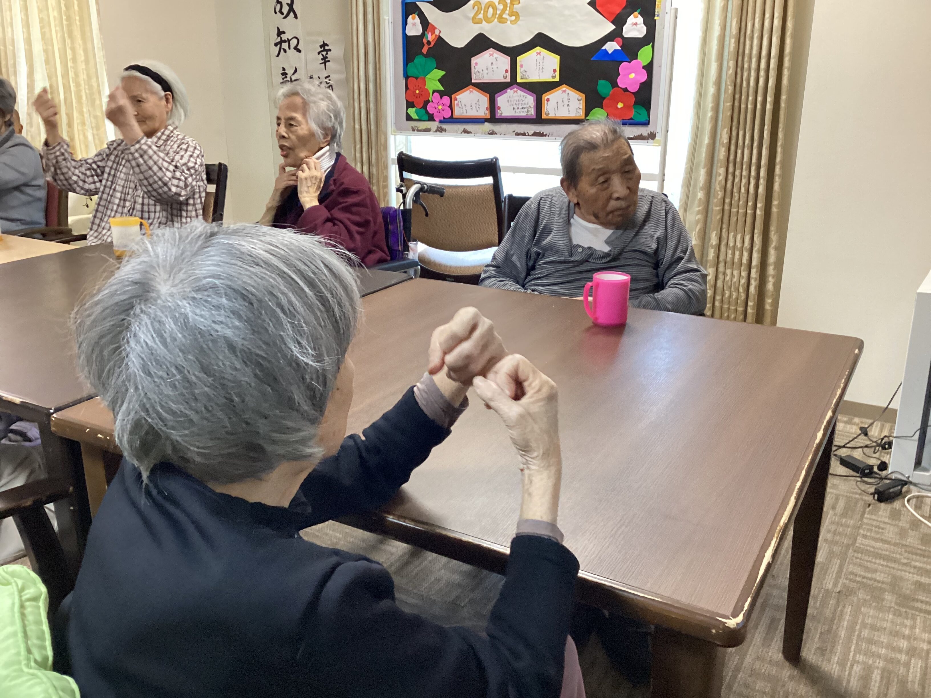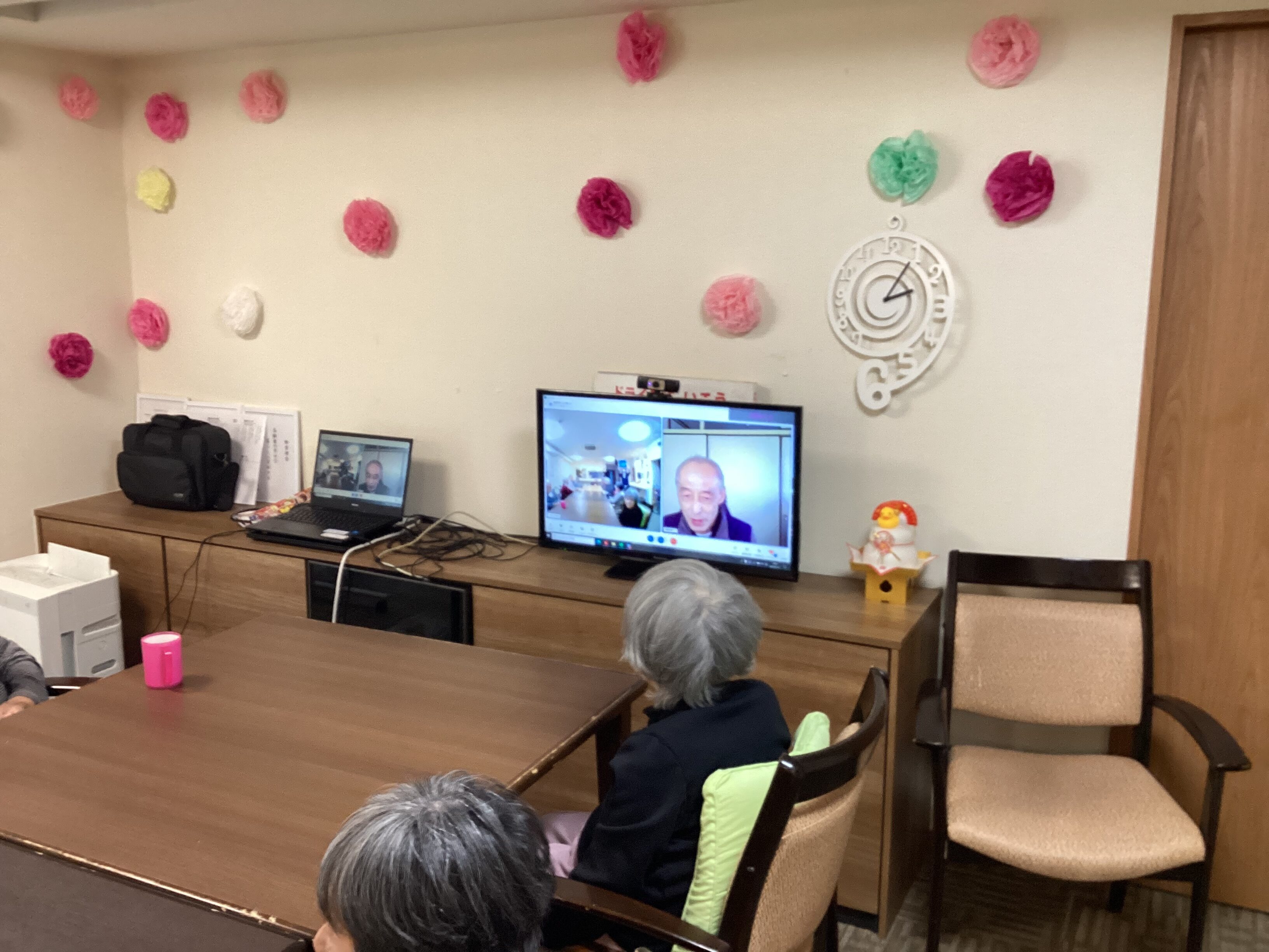 本日はWEBボランティアが開催されていました! リズム体操を行ってくださいました!♫ リズムに合わせてできる範囲で体を動かして頂きました♡ 「体操したから後10年は元気でいられるわ」とご利用者様から嬉しい言葉を頂きました☻ 心も体も丸ごと元気に!!