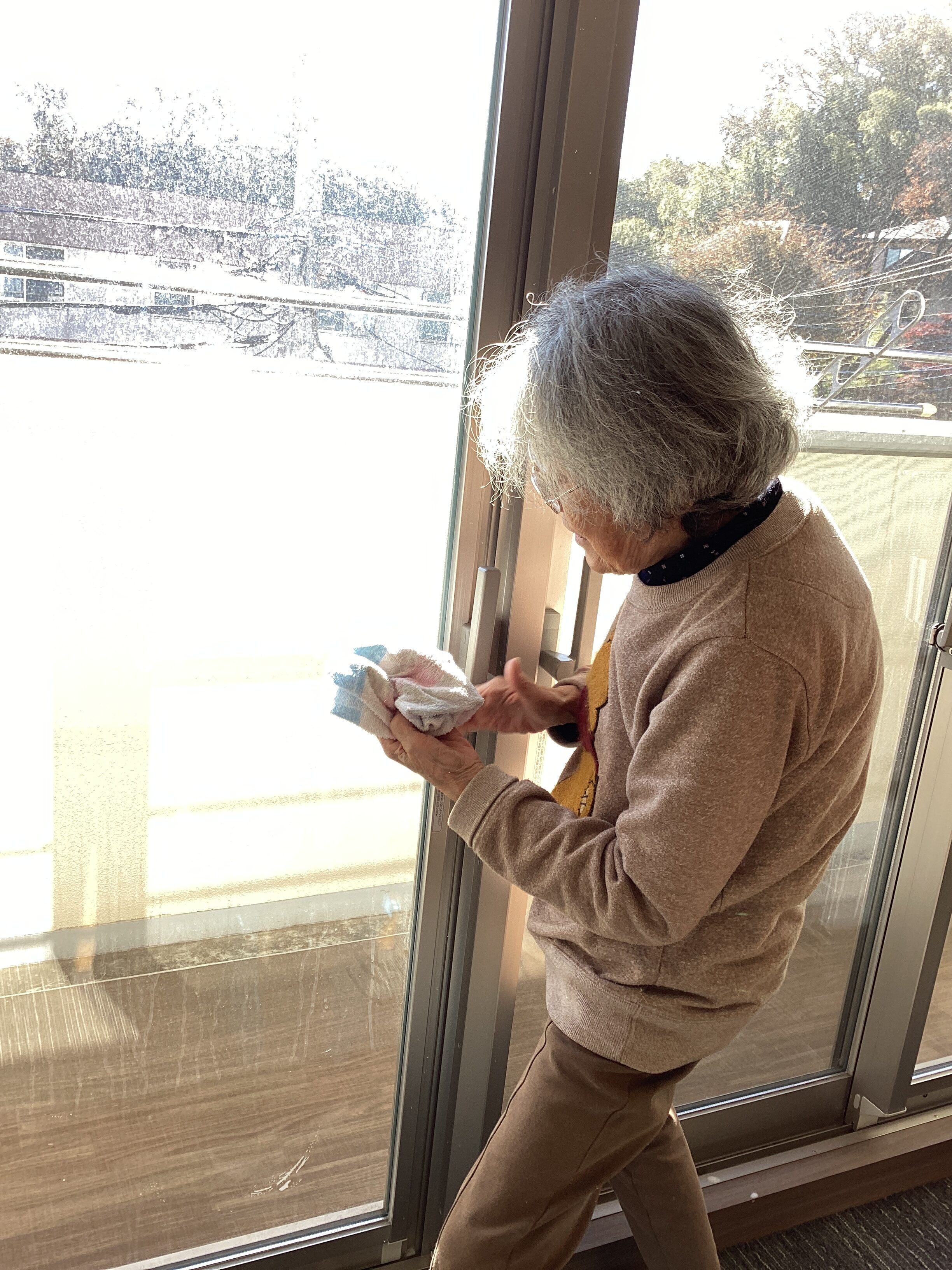 少し前になりますが、年末に窓ふきと雑巾を縫うのを手伝っていただきました。 大きい針ですが、糸も通してくださいました。