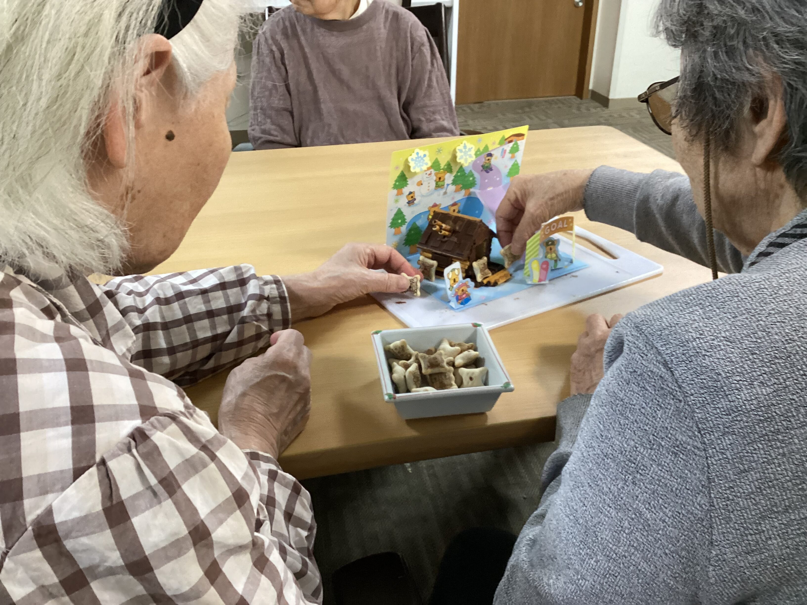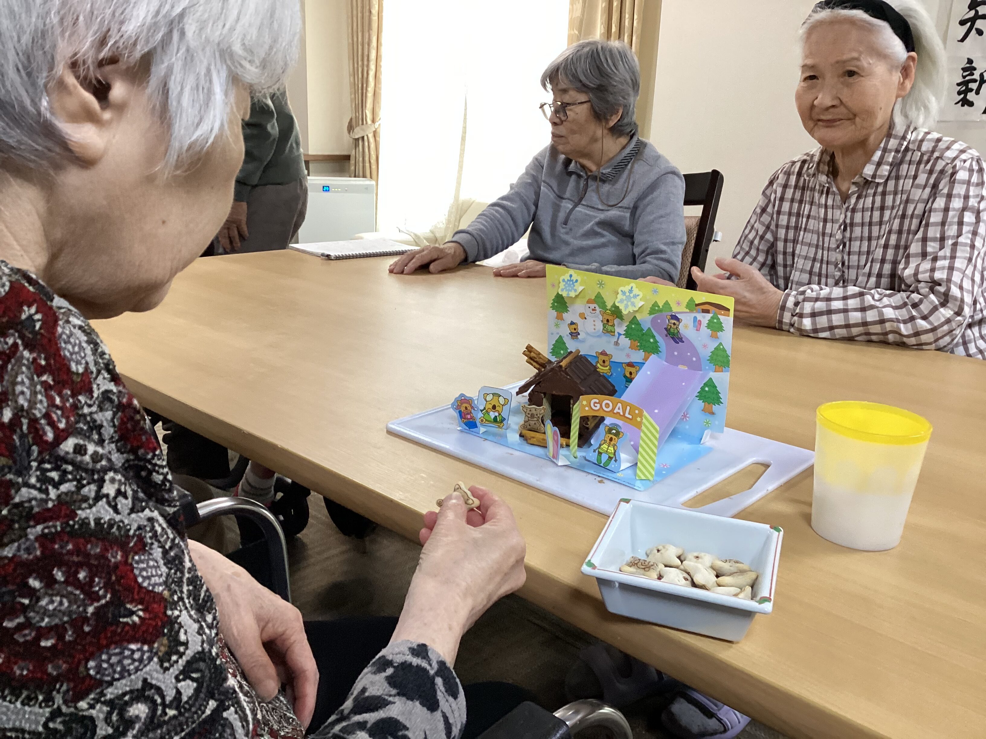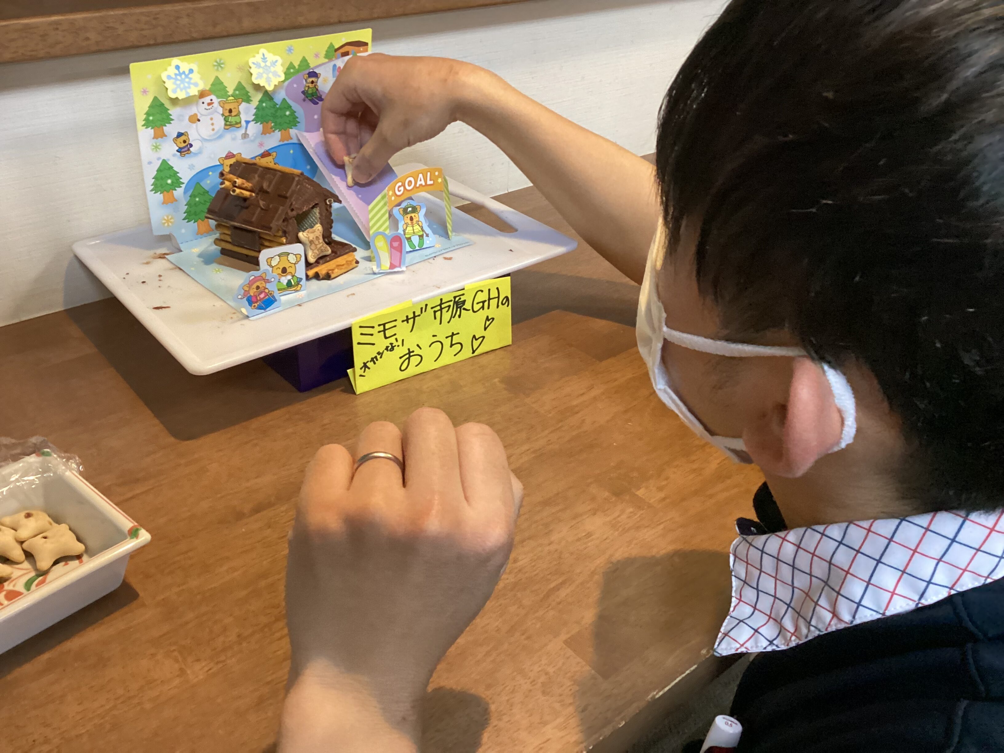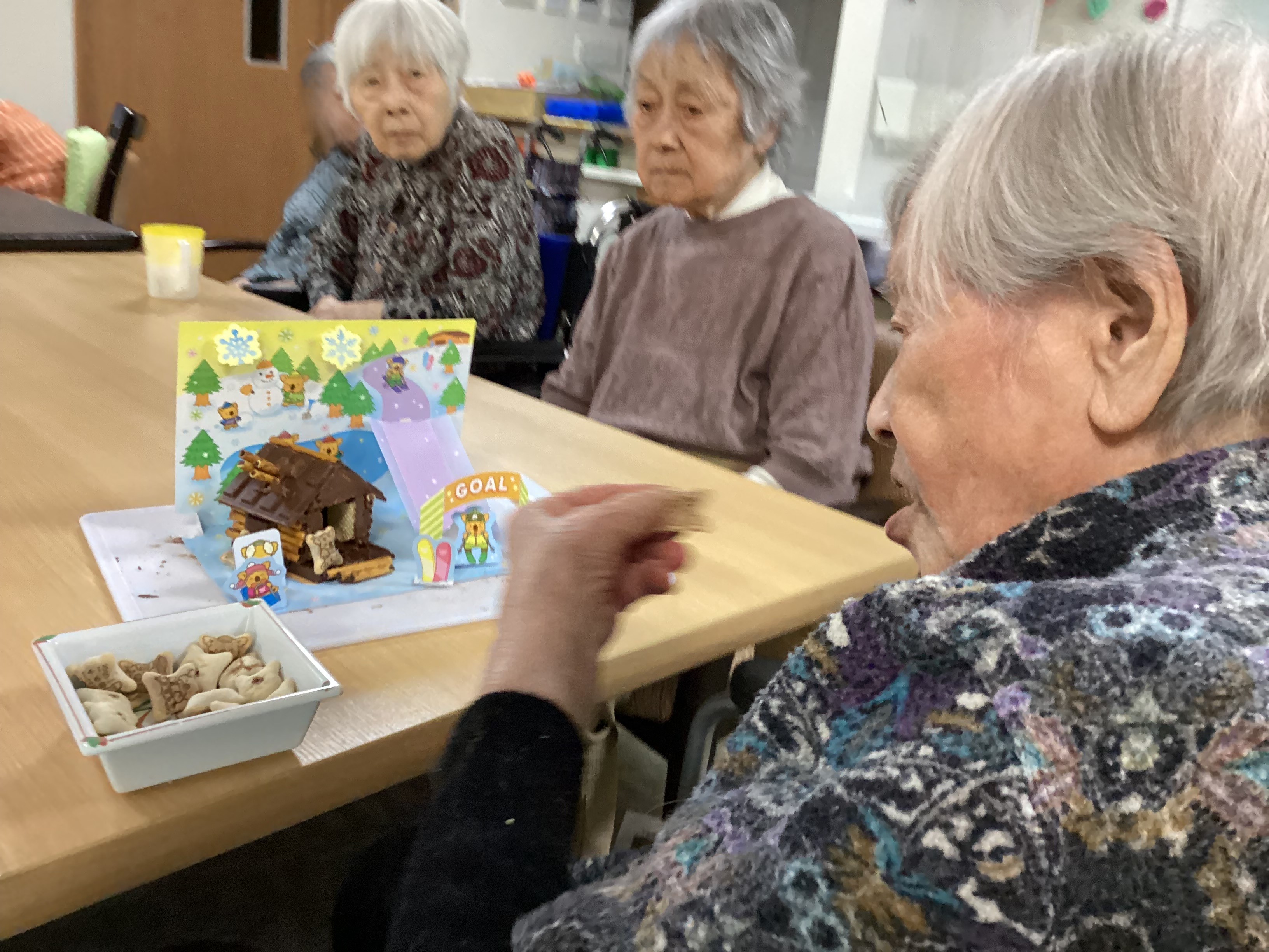 ”我が家のように居心地が良く快適な”そんなグループホームであり続けたい、、! おやつレクとして「おかしなお家」を皆で創りました☻ 食べずらそうだけど美味しそう(^^♪ これからも皆が笑顔で元気に過ごせるような”家”を一緒に創っていきましょう!!