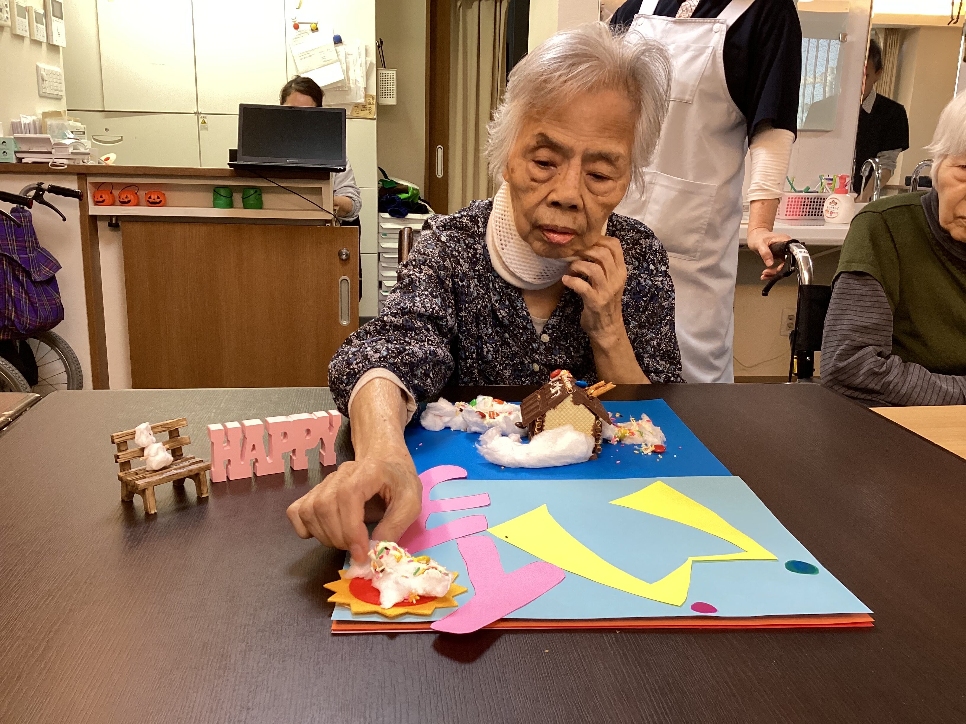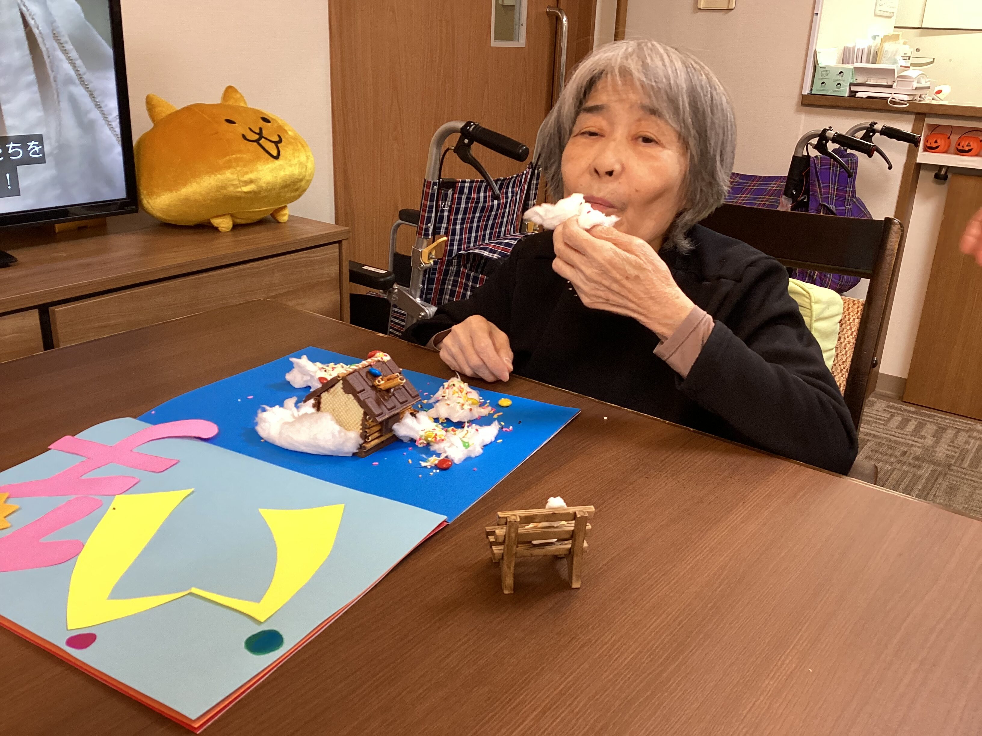 先日、ミモザ市原GHのお家を皆で創ったのですが、職員が「お誕生日のご利用者様の為にもっとお菓子で可愛くしたい!!」 との事で、”もっとお菓子をたくさん!お誕生日バージョン!”のミモザのおうちにバージョンアップ♫ 創った後は皆で美味しく頂きました♡