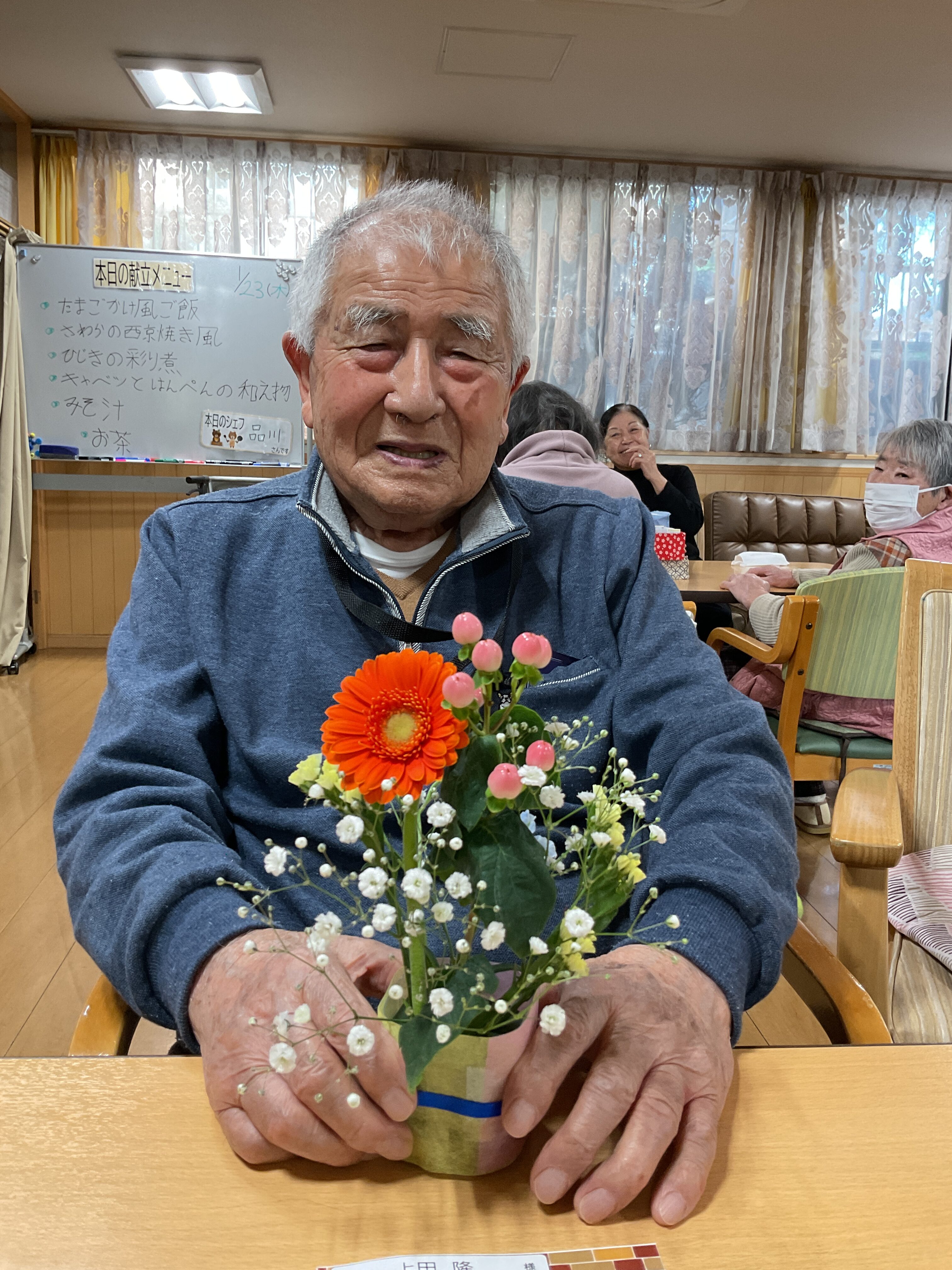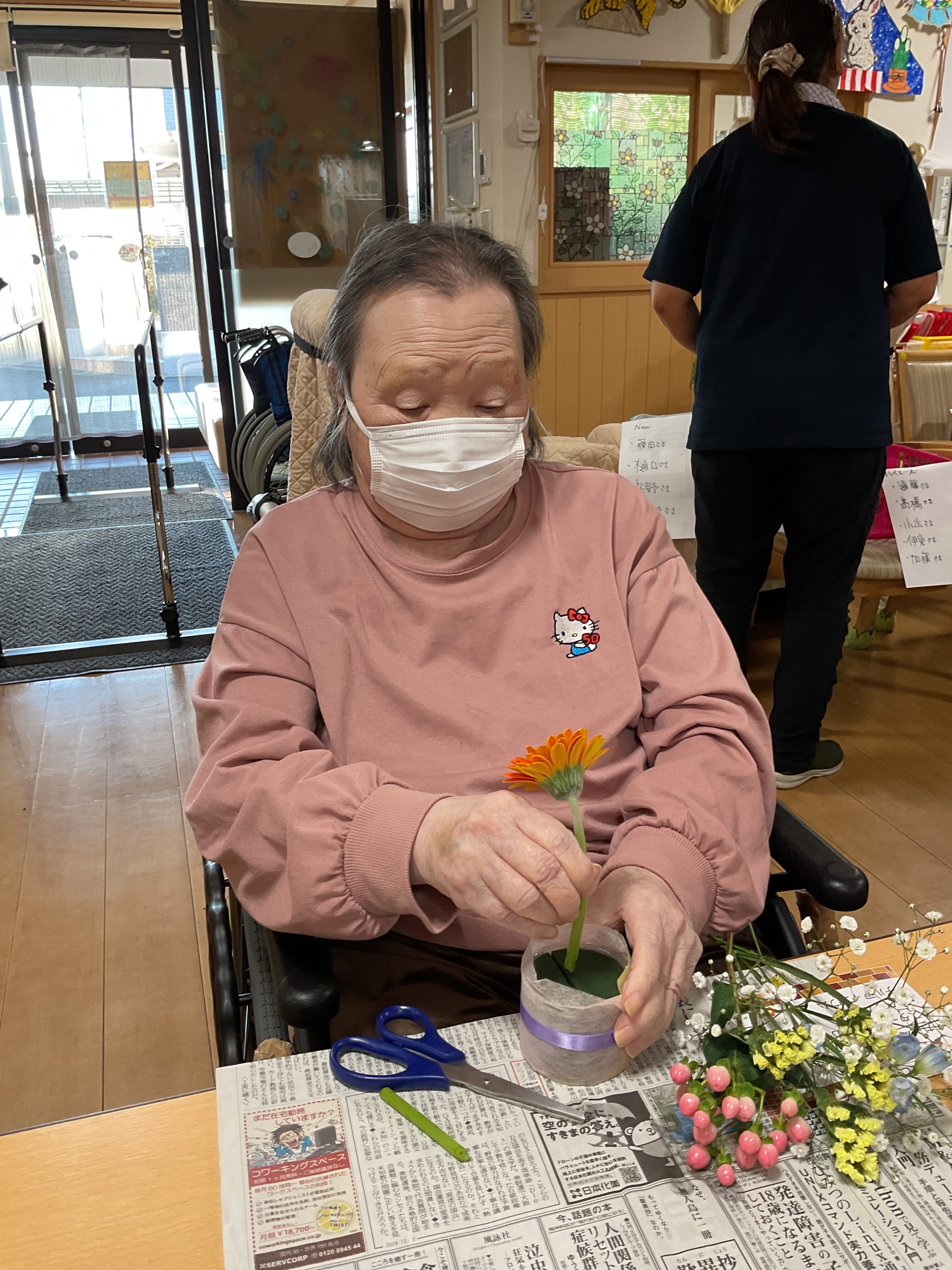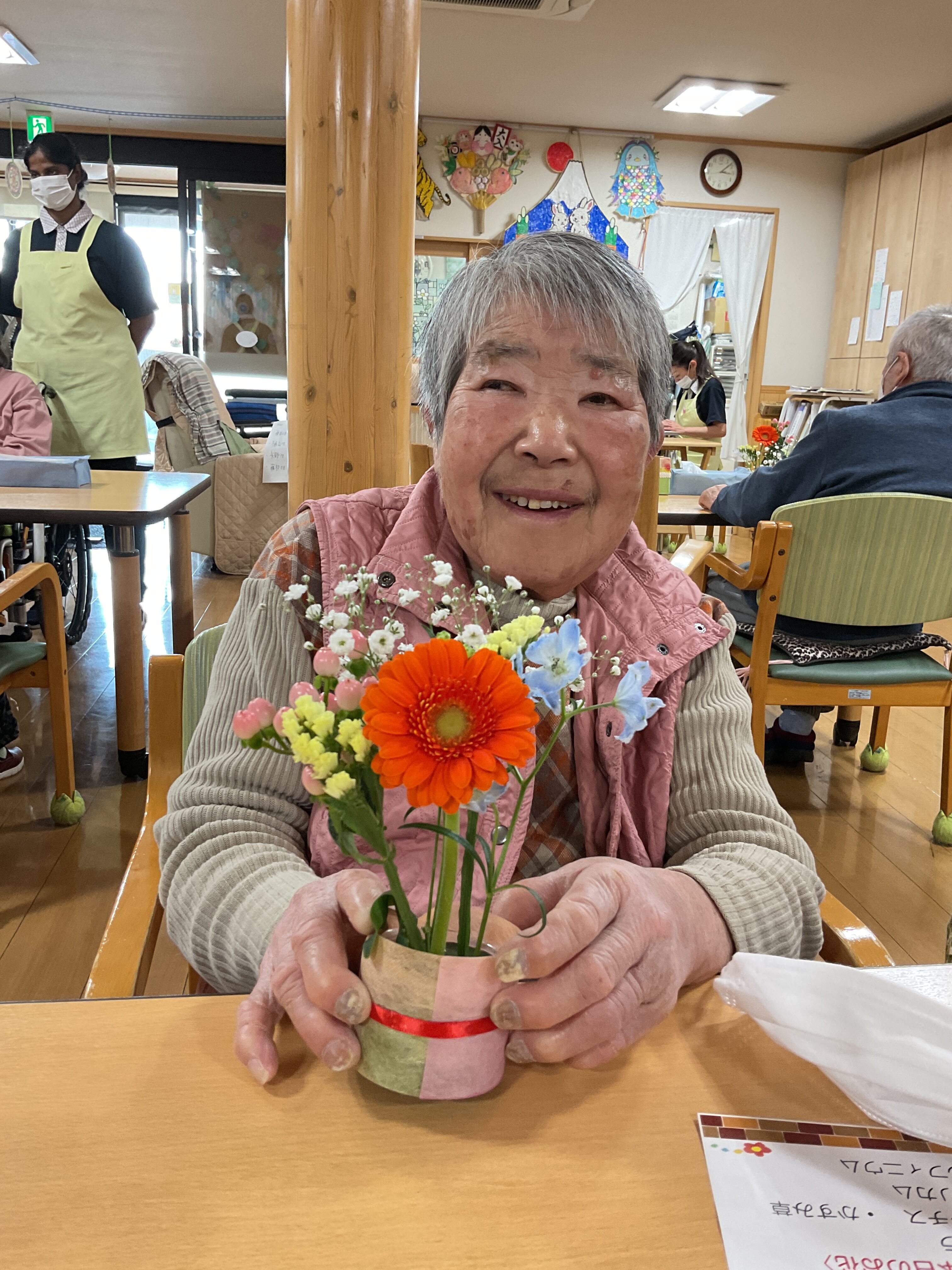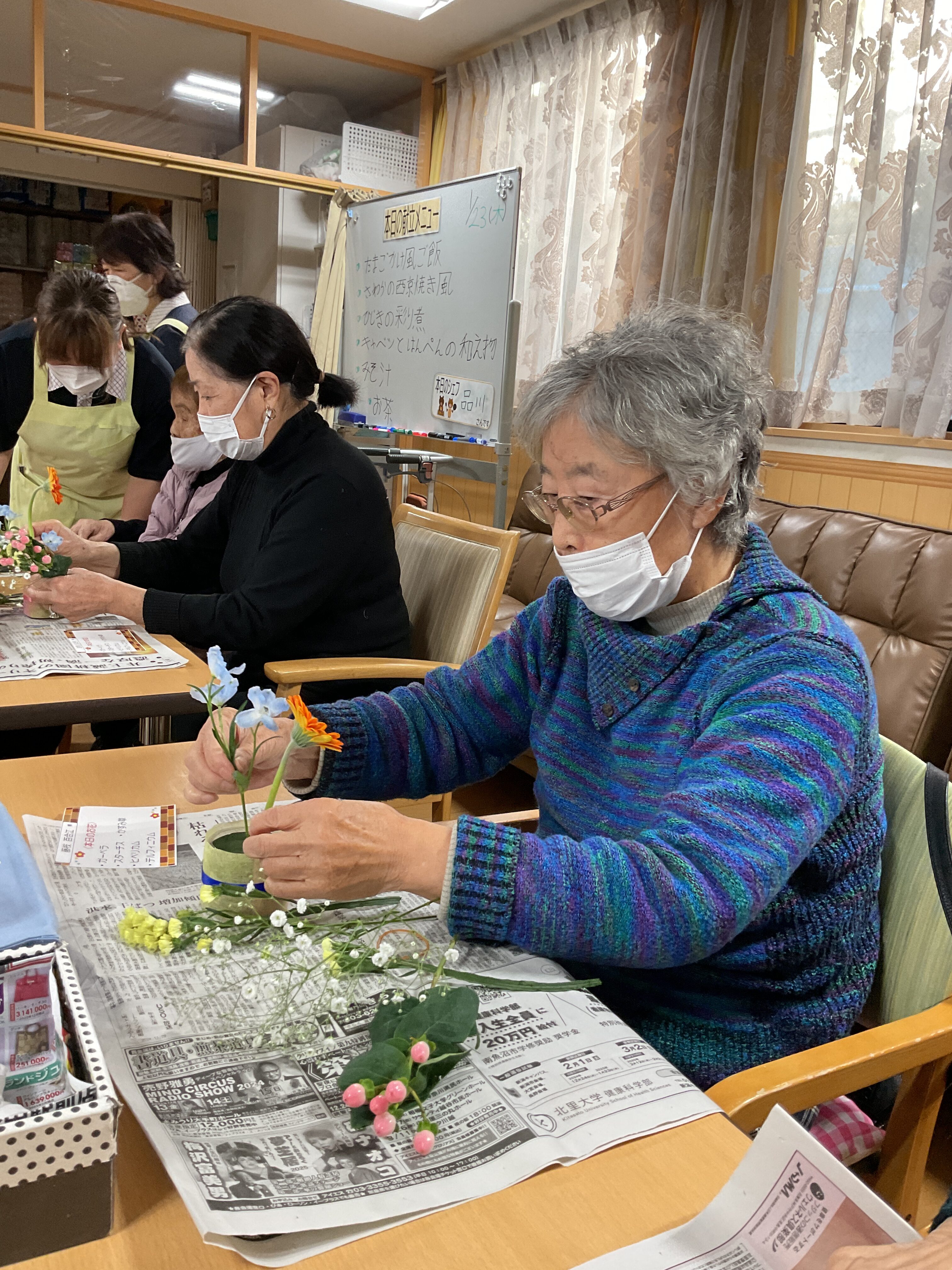毎月好評の「フラワーアレンジメントレク」 ご自分で活けたお花に皆さんニコニコでした🌷