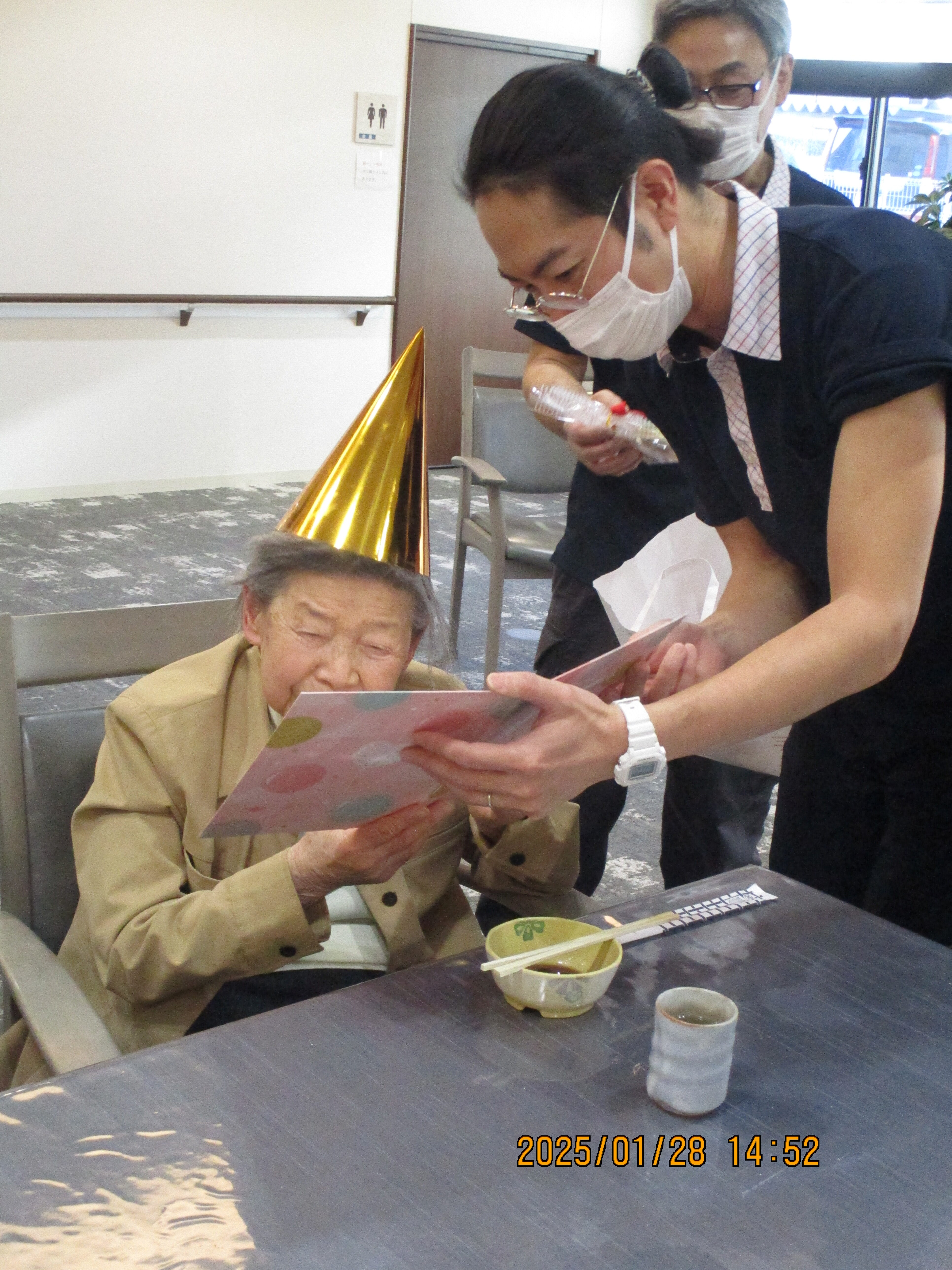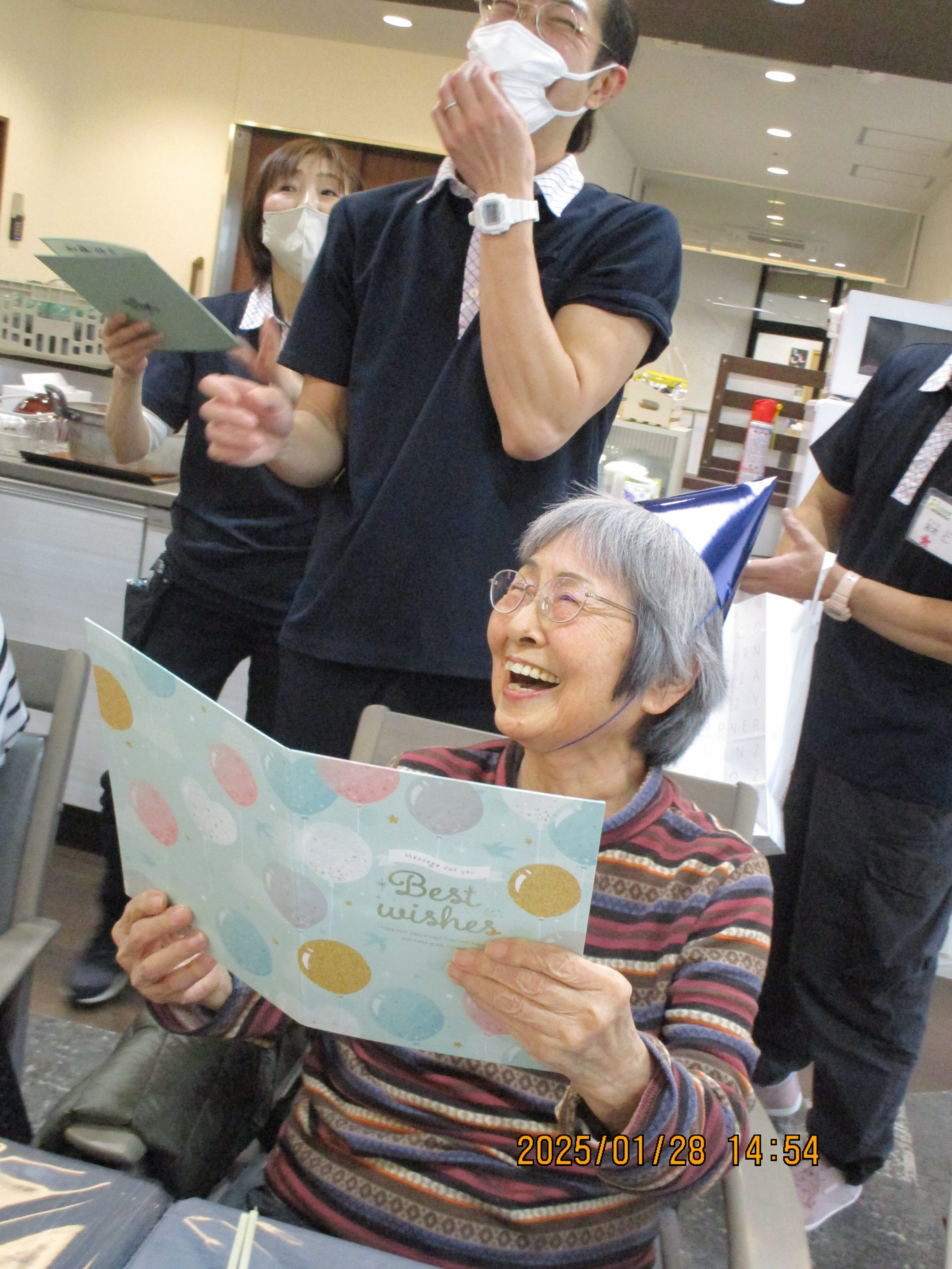 お誕生日おめでとうございます!今月はなんと11名の方が1月生まれ!たくさんのご入居者とスタッフでお祝いができました。また来年もミモザでお祝いができますように!!