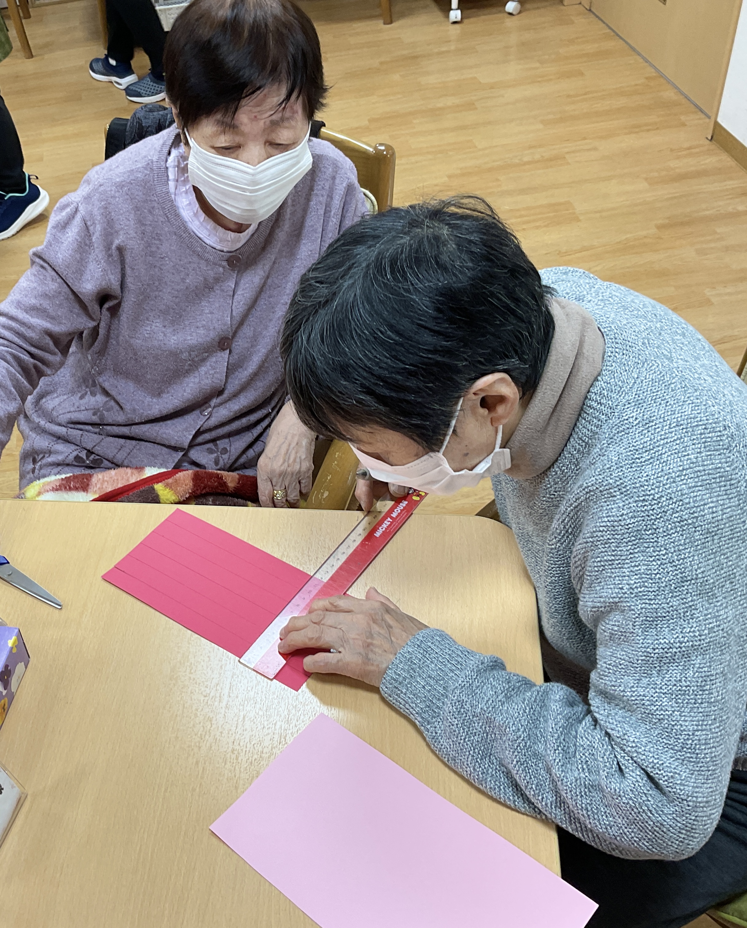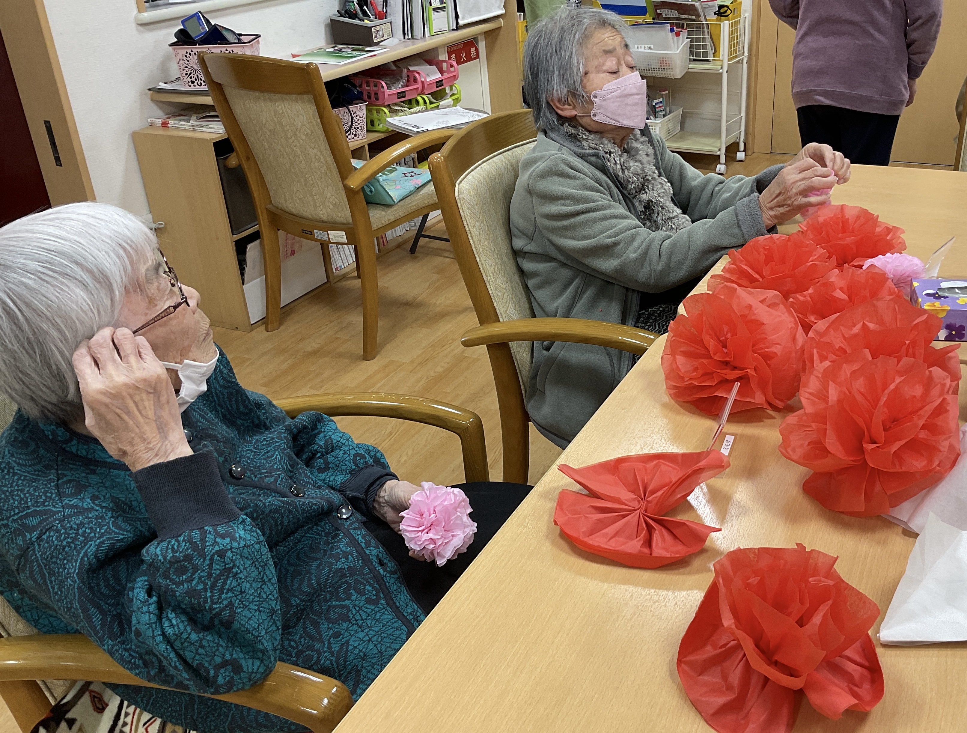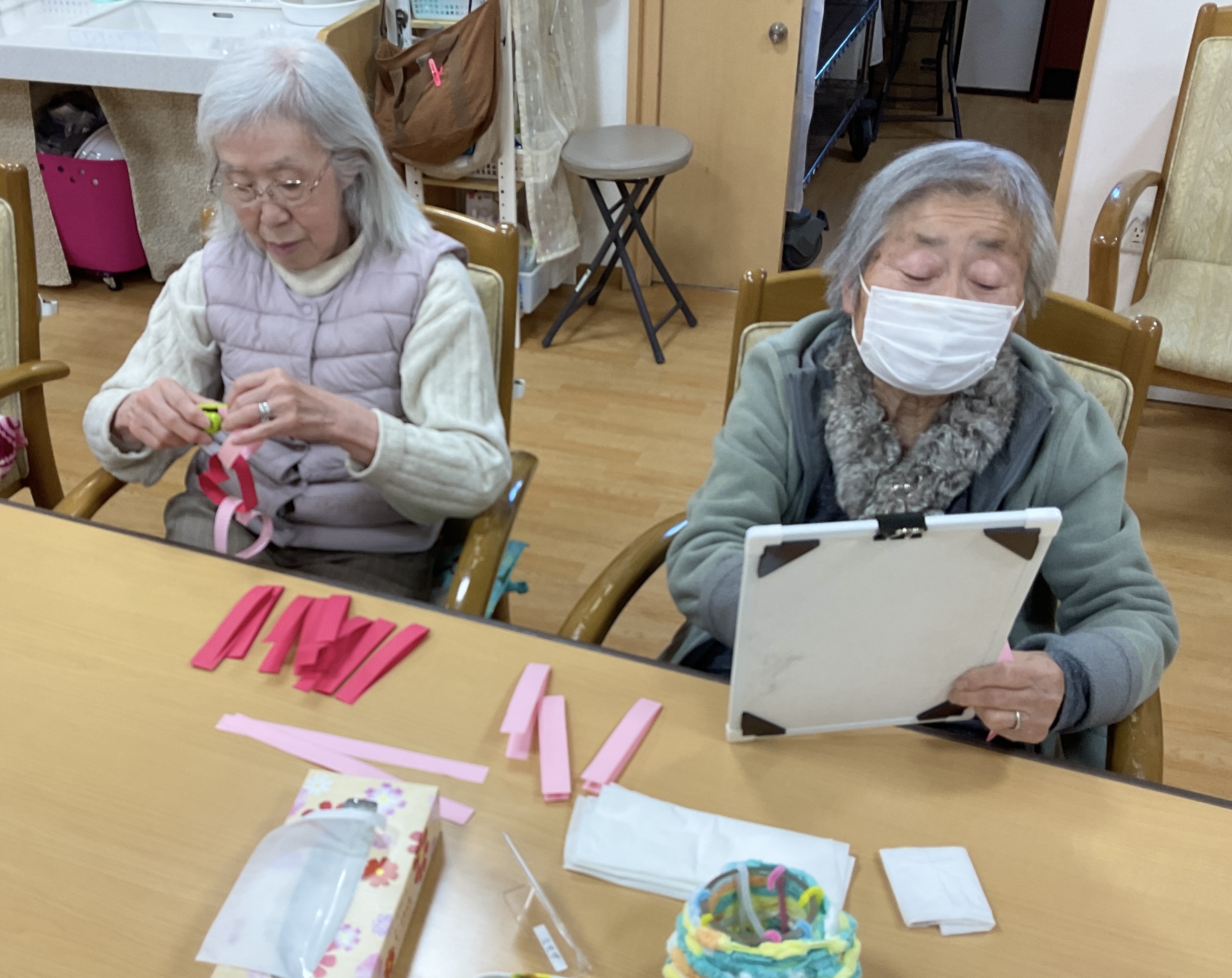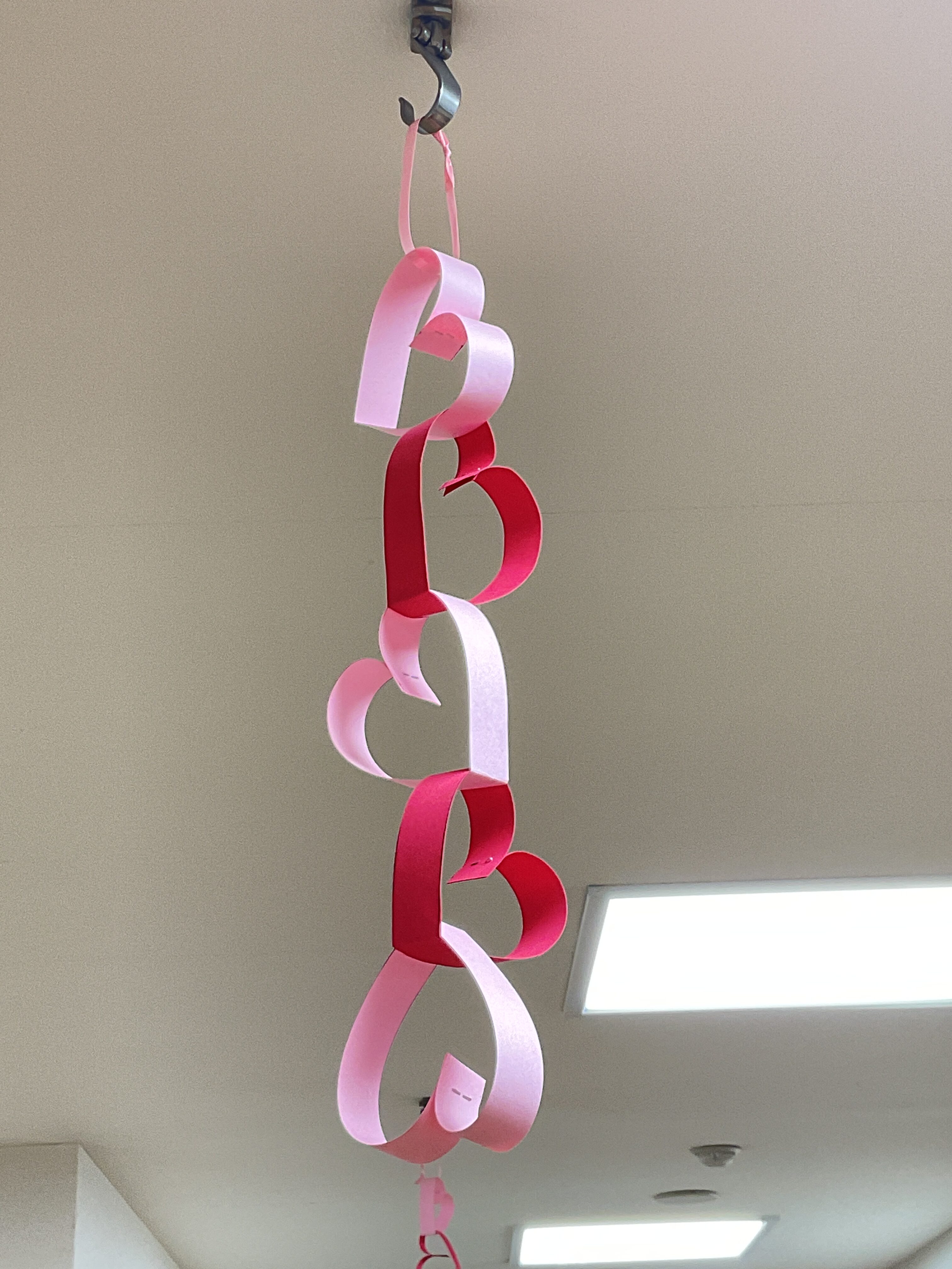 2月の季節の飾りはバレンタイン♥ かわいいハートの飾りができました♡
