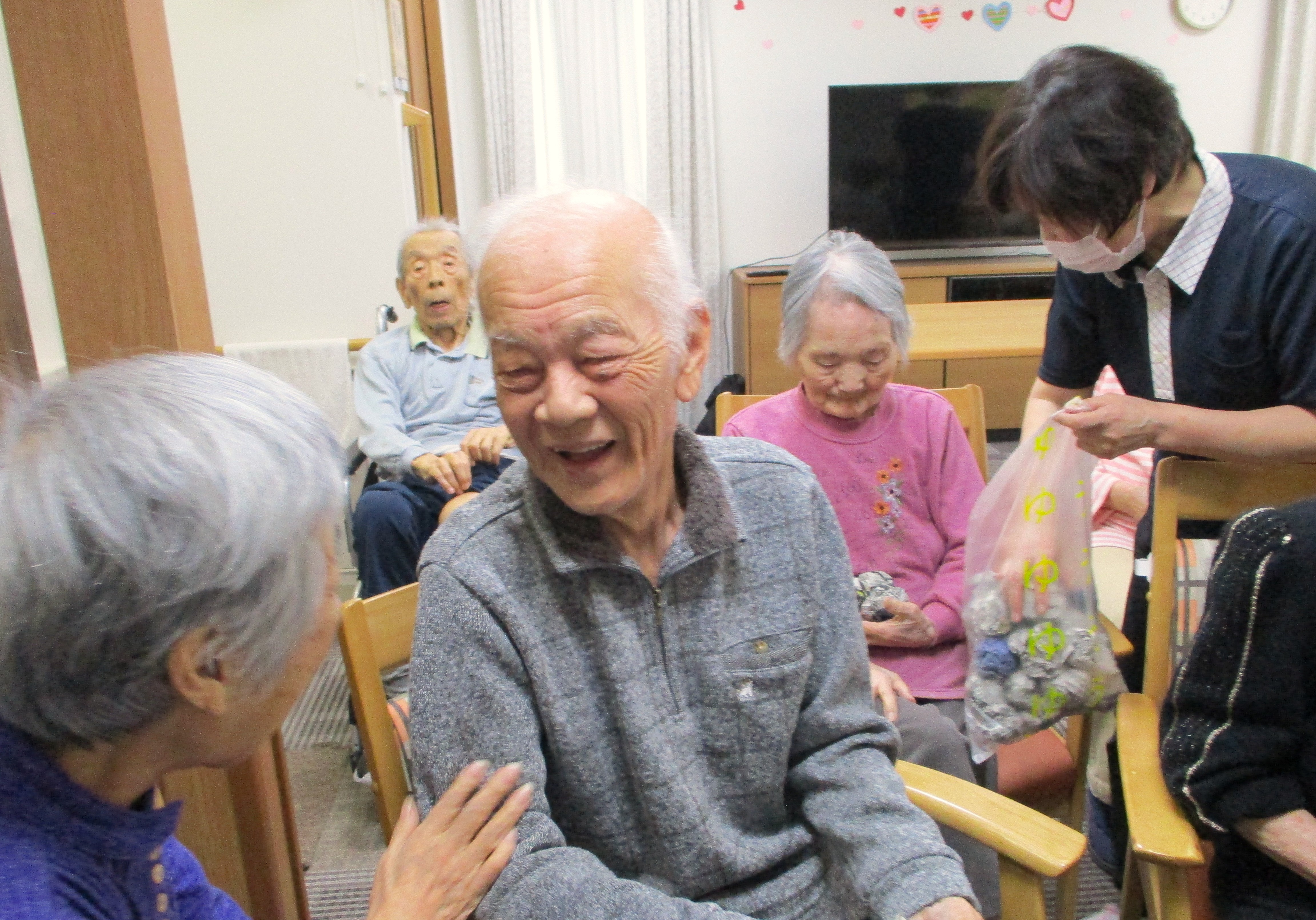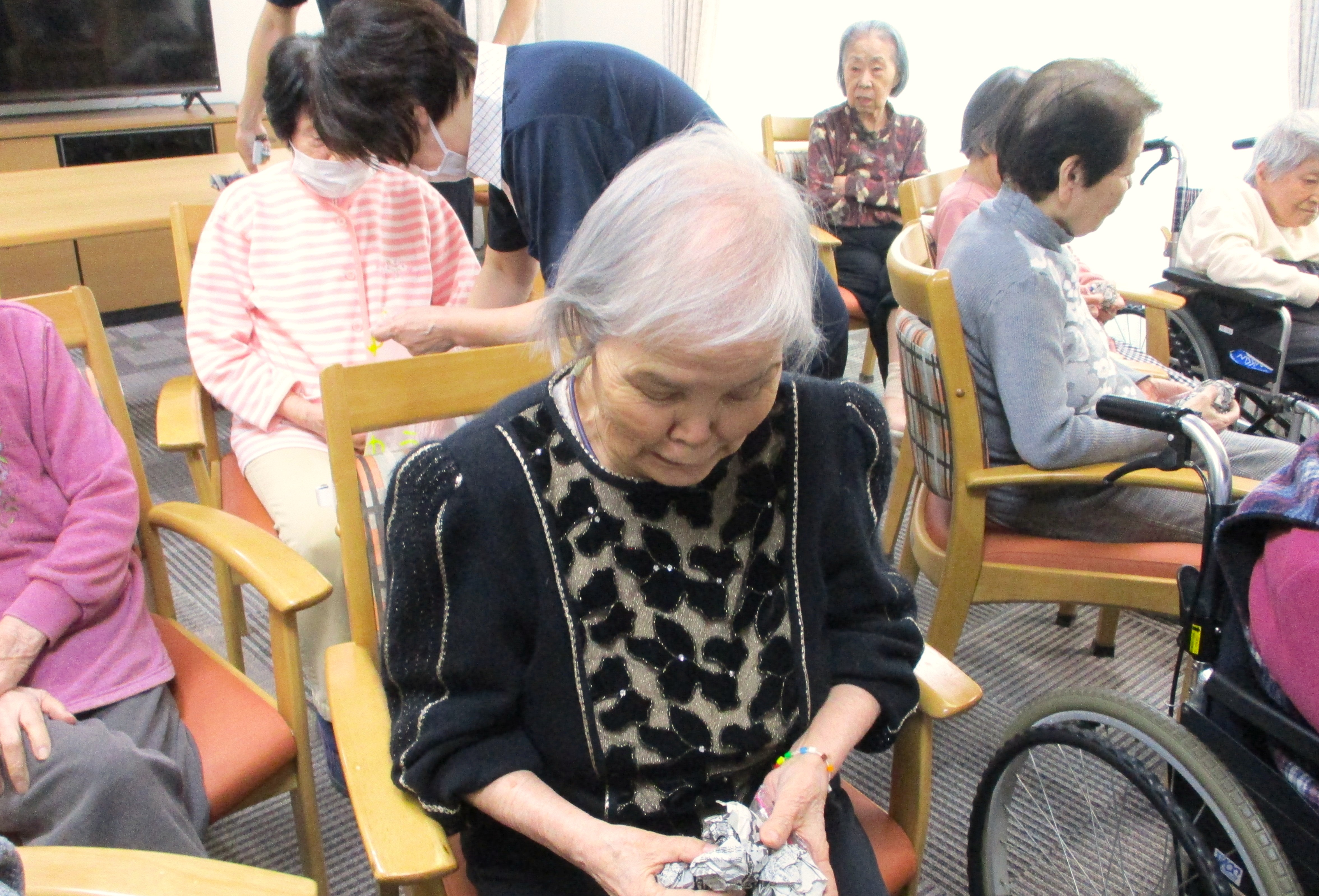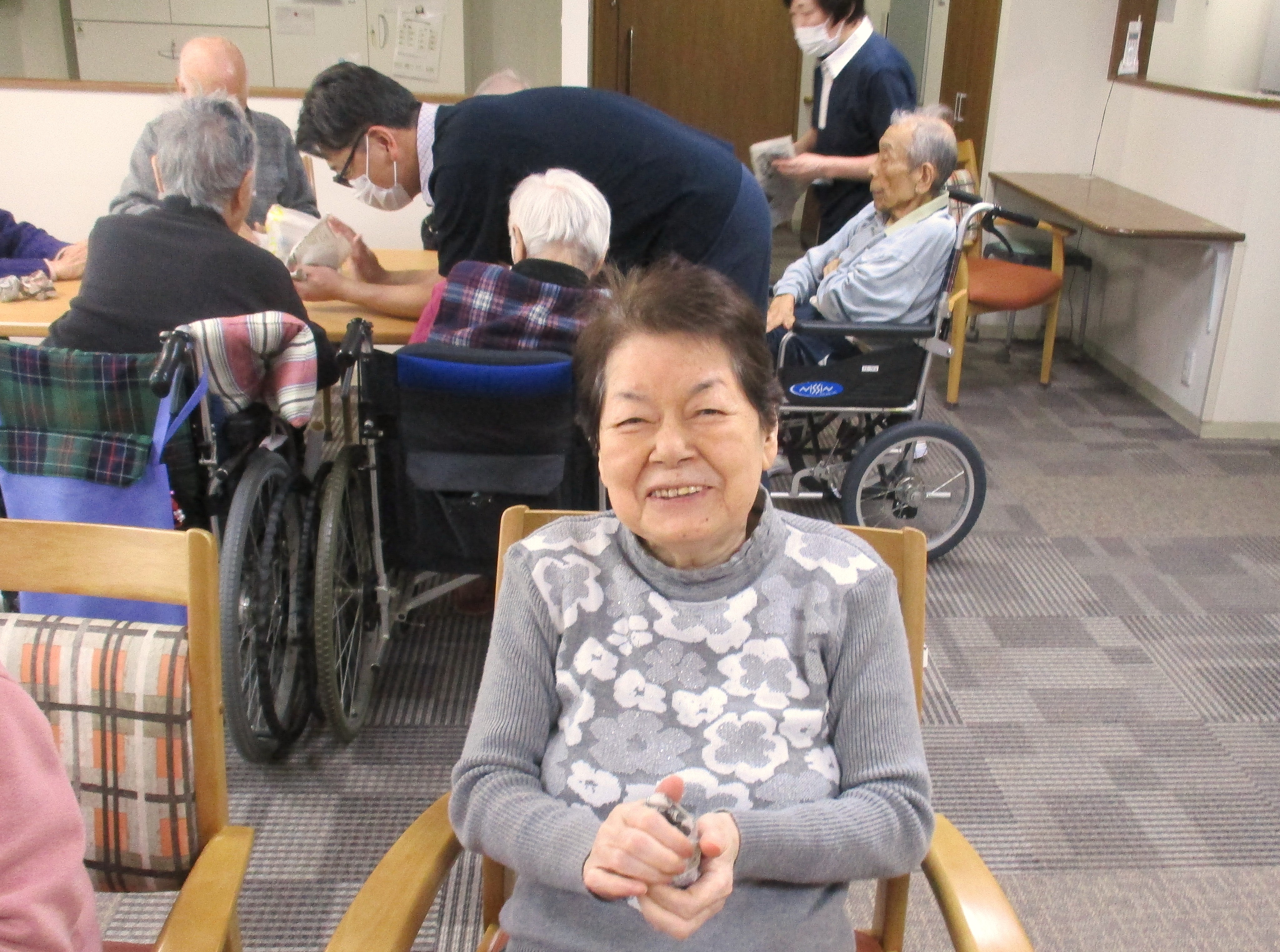 今日は節分レクの日!レクの前に、節分に必要な大事な豆を皆様と一緒に手作りしました。上手に出来ましたね!