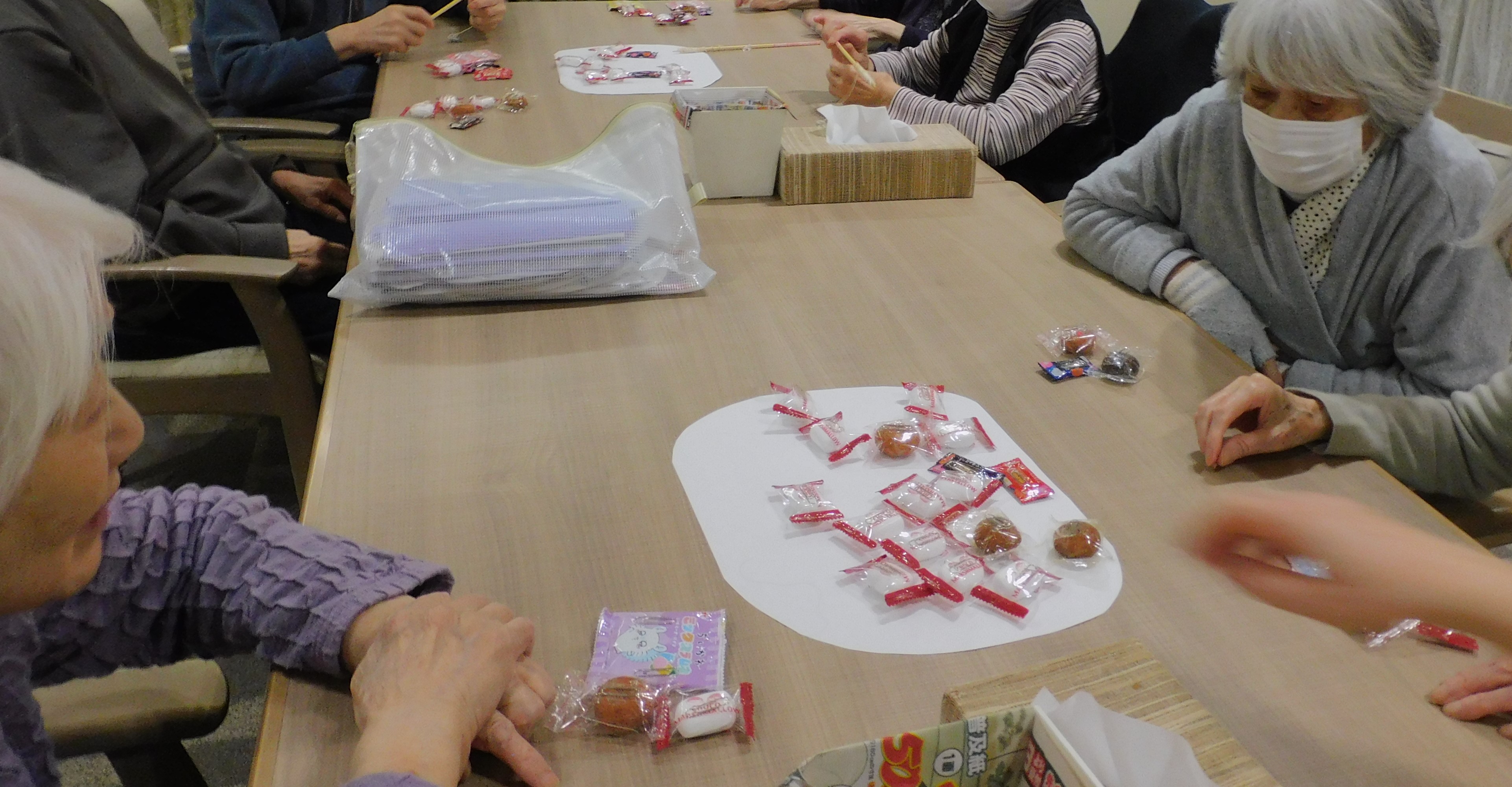 2月13日にバレンタインのレクリエーションとして、チョコレート釣りゲームを行いました!卓上に並んだチョコレートを釣り上げ、「たくさん釣れた」と大いに盛り上がりました!ゲームの後には各々釣り上げたチョコレートを召し上がり、喜ばれておりました🍫