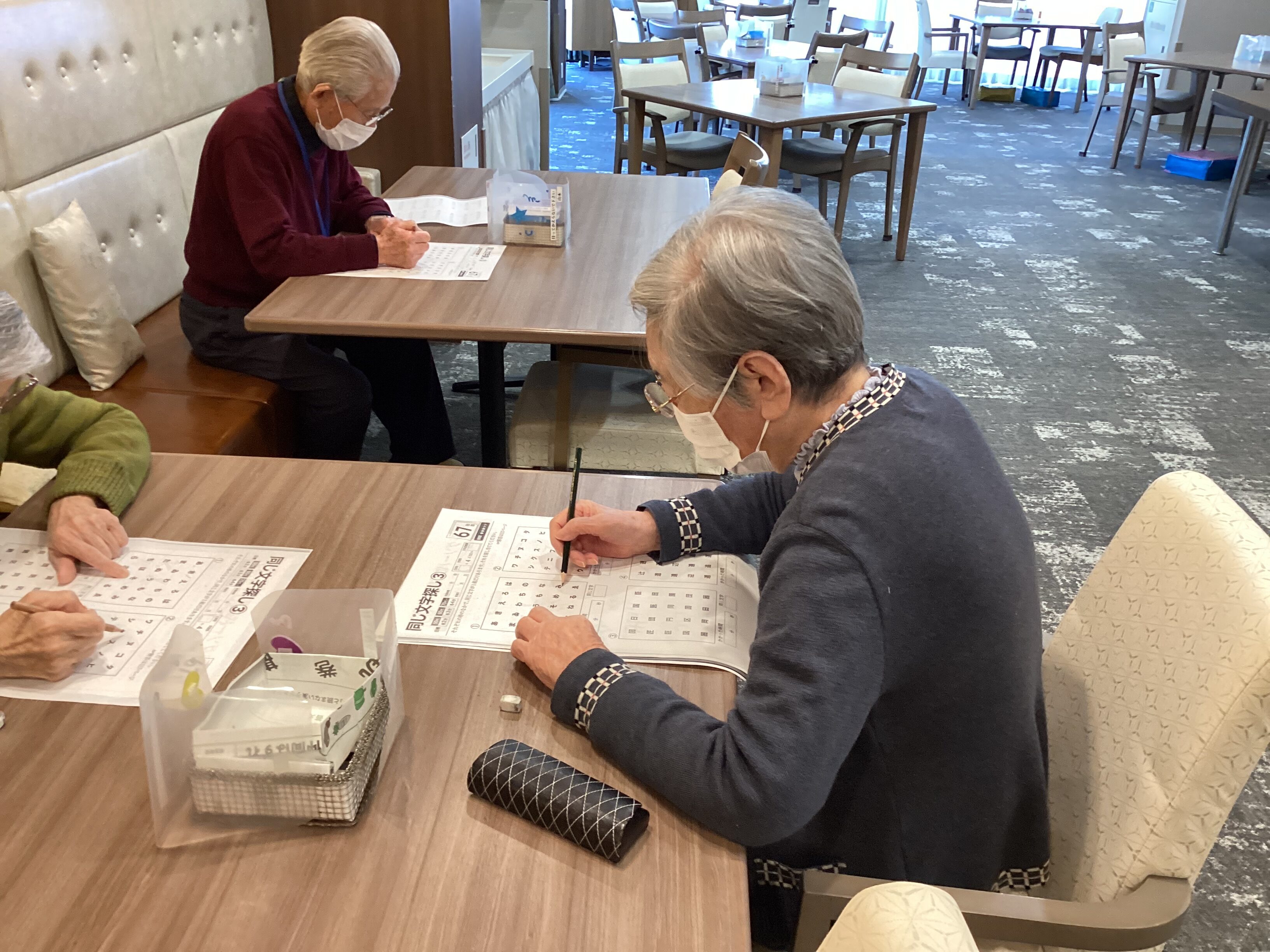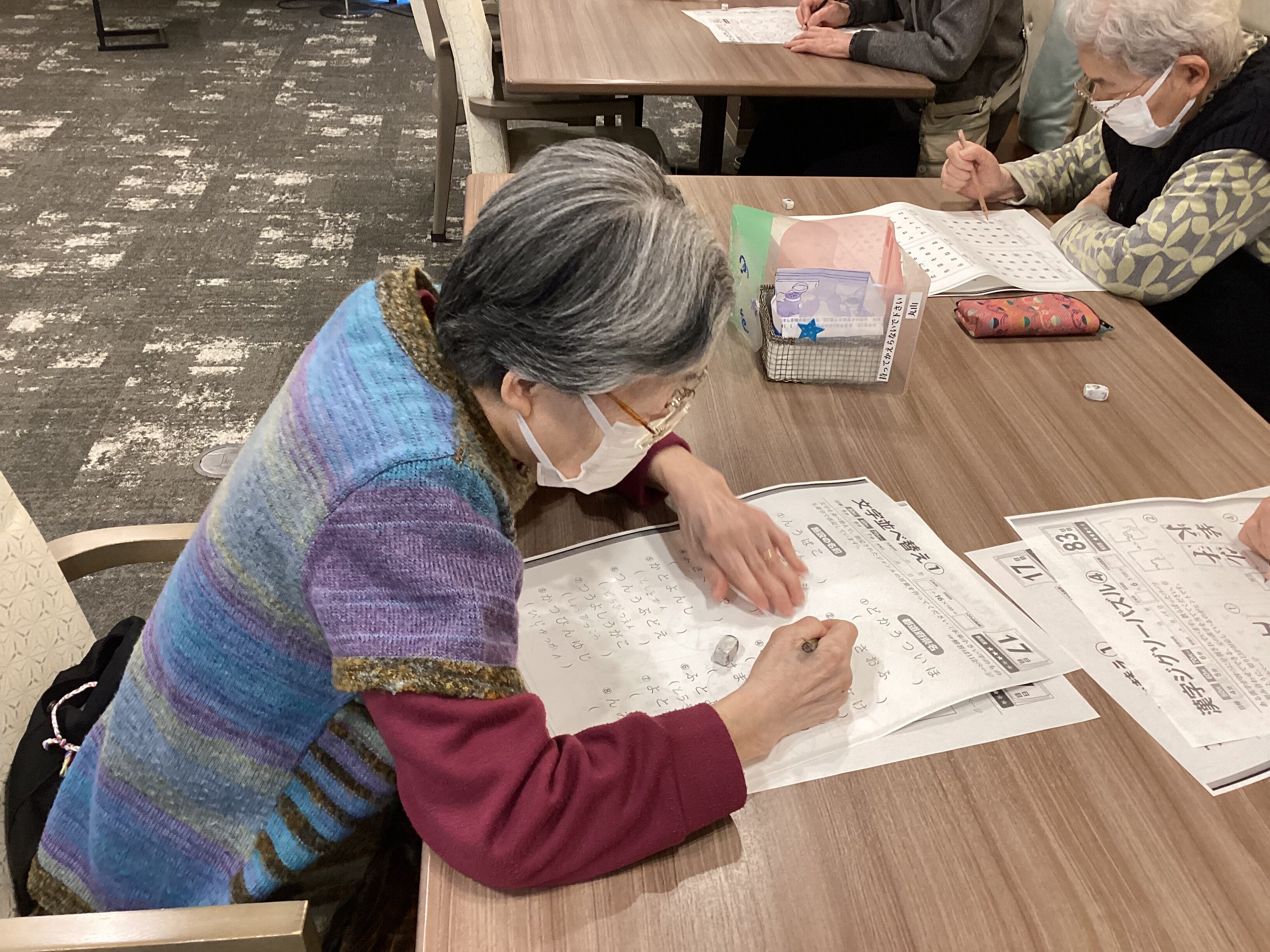 少し難しい脳トレです。皆さん頑張って解いています。答え合わせを待ち遠しく待っている方もいらっしゃいました(笑)