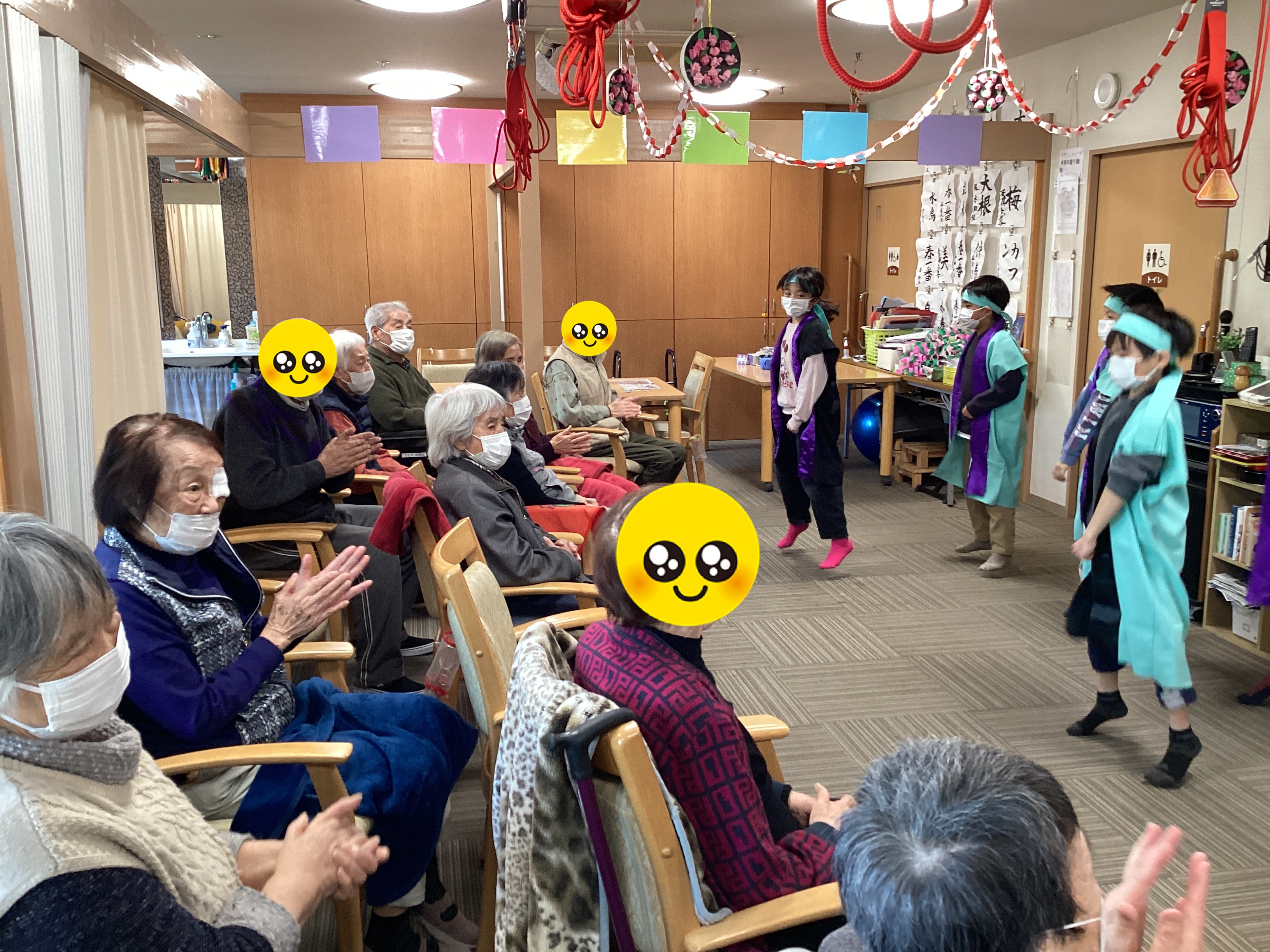 近くの小学校のわくわくの子供たちがソーラン節を踊りに来てくださいました。 子供たちの掛け声に合わせて一緒に声を出したり手拍子をしたりして、最後にはアンコールにもう1度踊ってくださったりして大変盛り上がりました