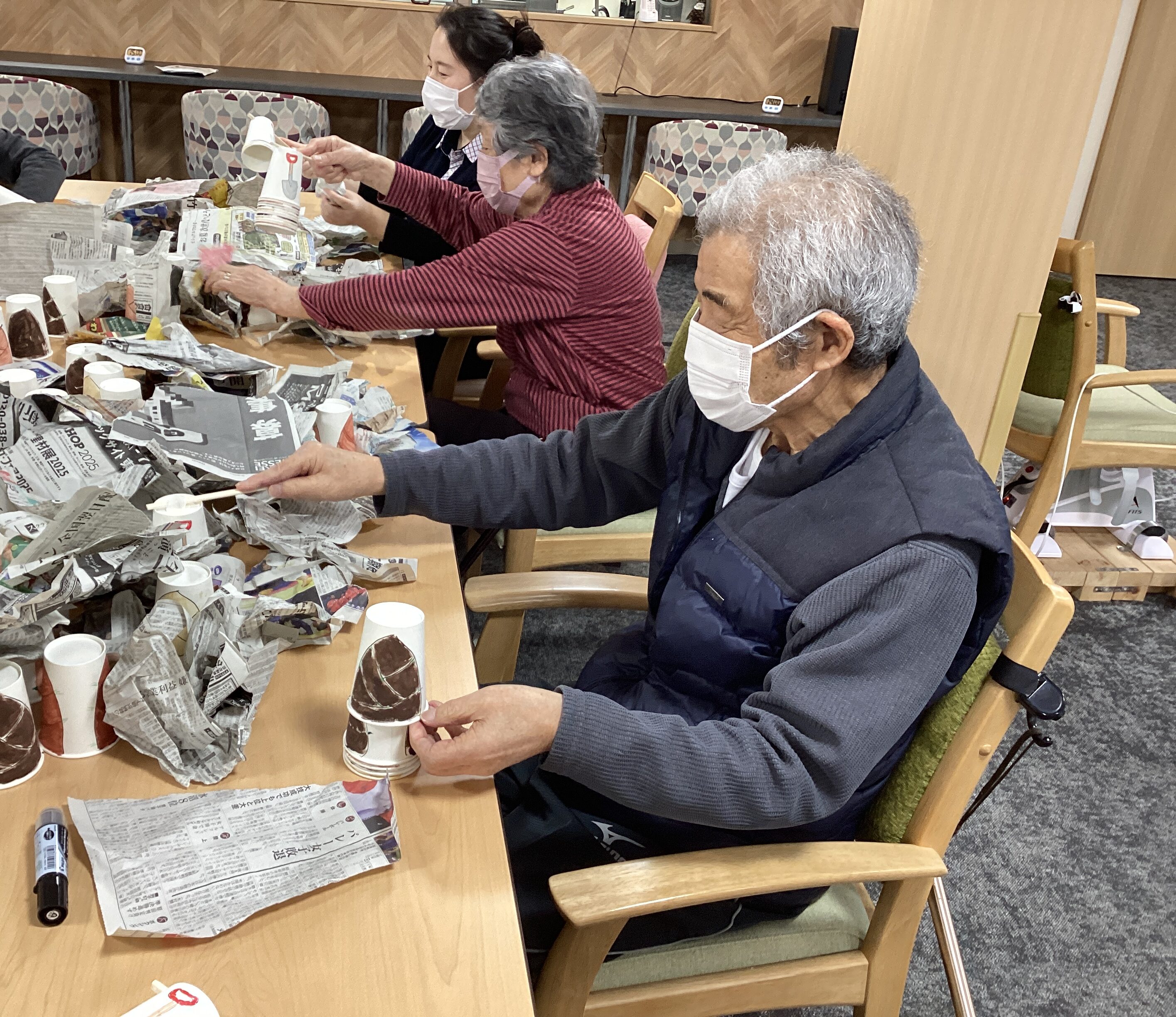 さて、こちらは何をしているでしょう❓❓❓ 新聞紙の土の中から、様々な色や形のタケノコを、ちいさなスコップ絵で掘り起こします👏 すぽん!とハマる感触がたまらない✨ スコップから外すのも意外と集中力がいるんです。。。だから自然と全集中👀