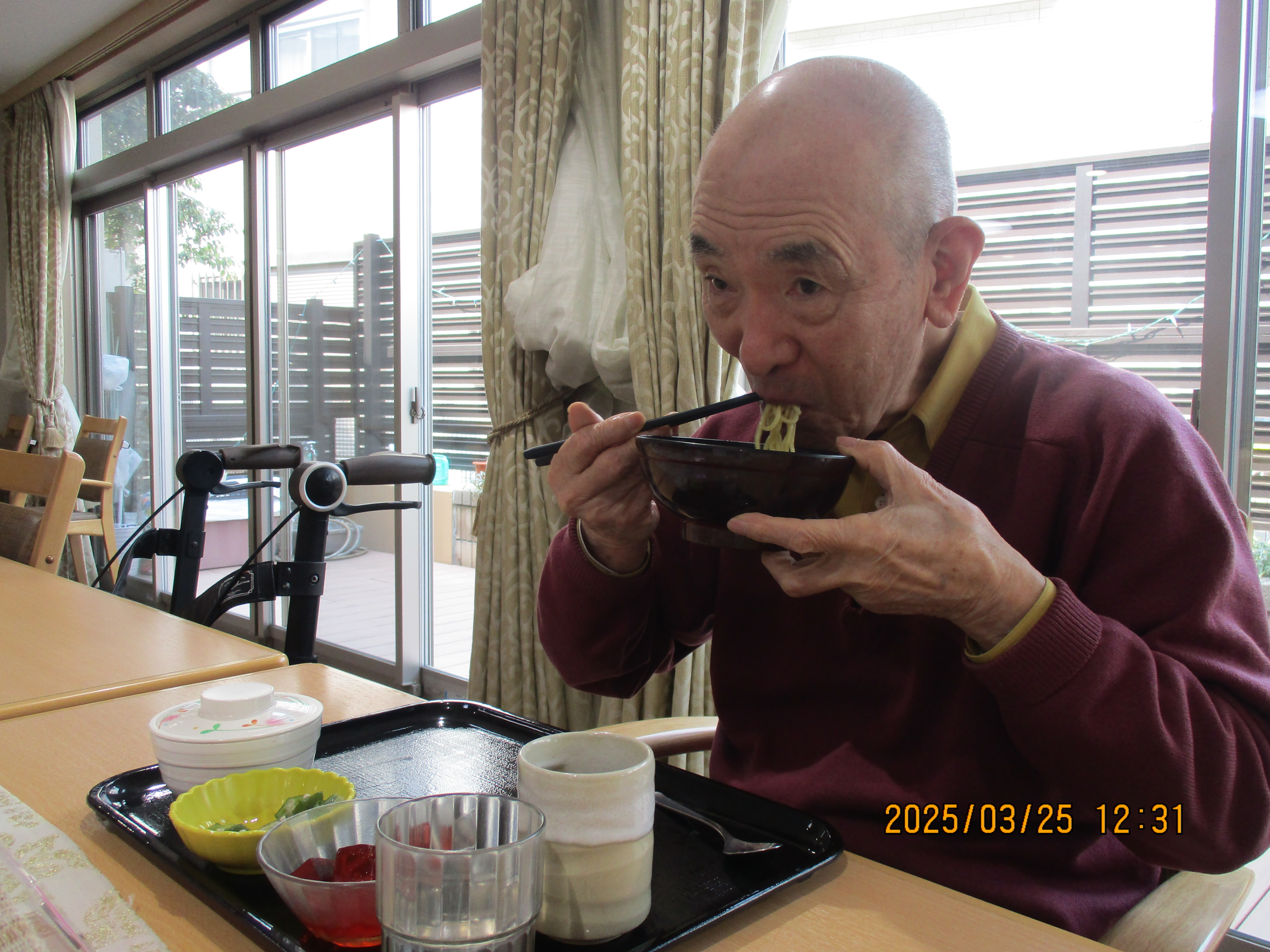 今日の昼食は醤油ラーメンでした。厨房さんが熱々で提供して頂いたラーメンは美味しくて皆様にこにこです。 厨房さんありがとうございます。