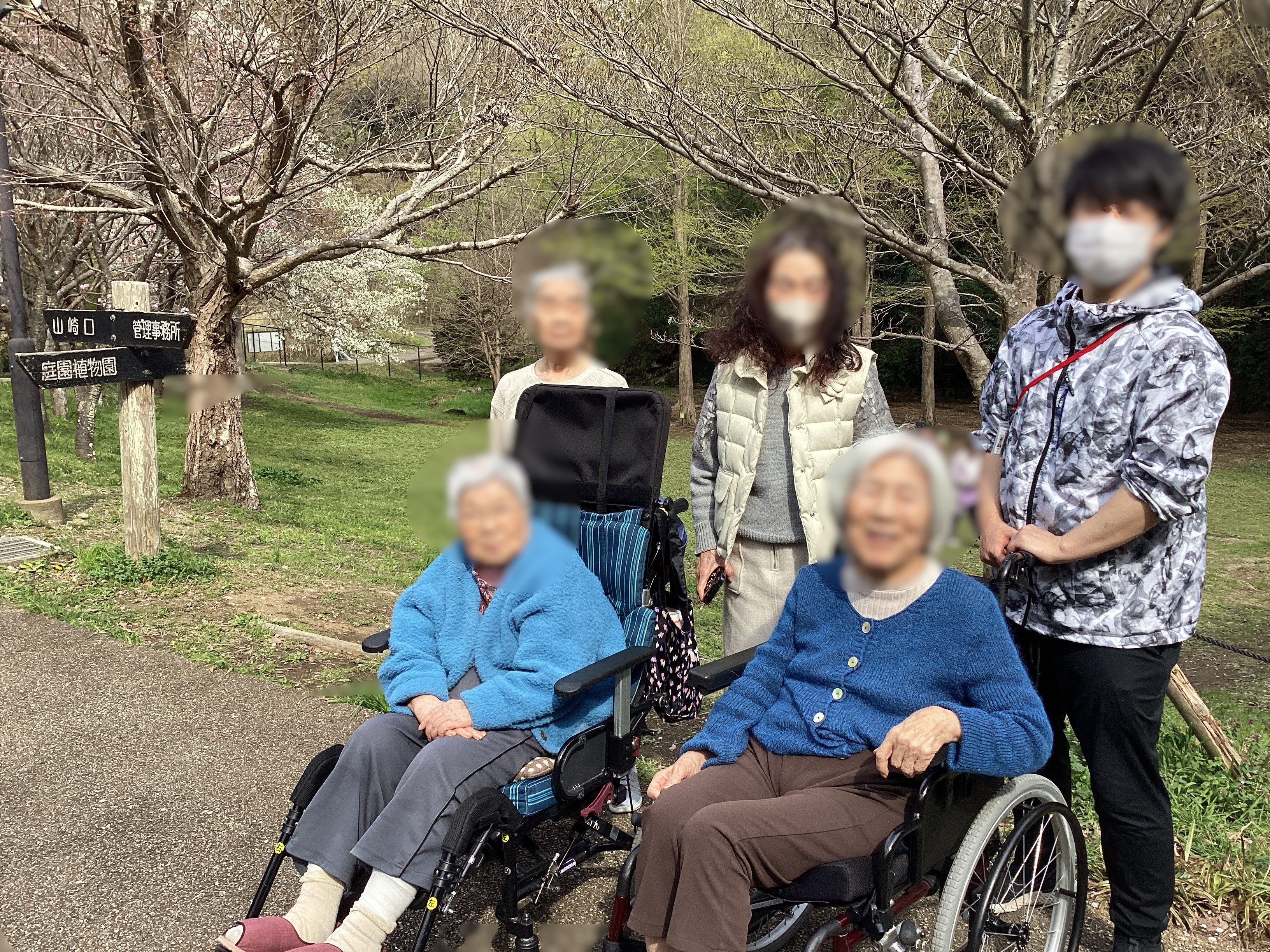 4/8に中央公園にお花見に出かけました。桜のほかたくさんの花たちがまるで出迎えてくれているかのように咲き誇っており ご利用者もとても喜んでくださいました。