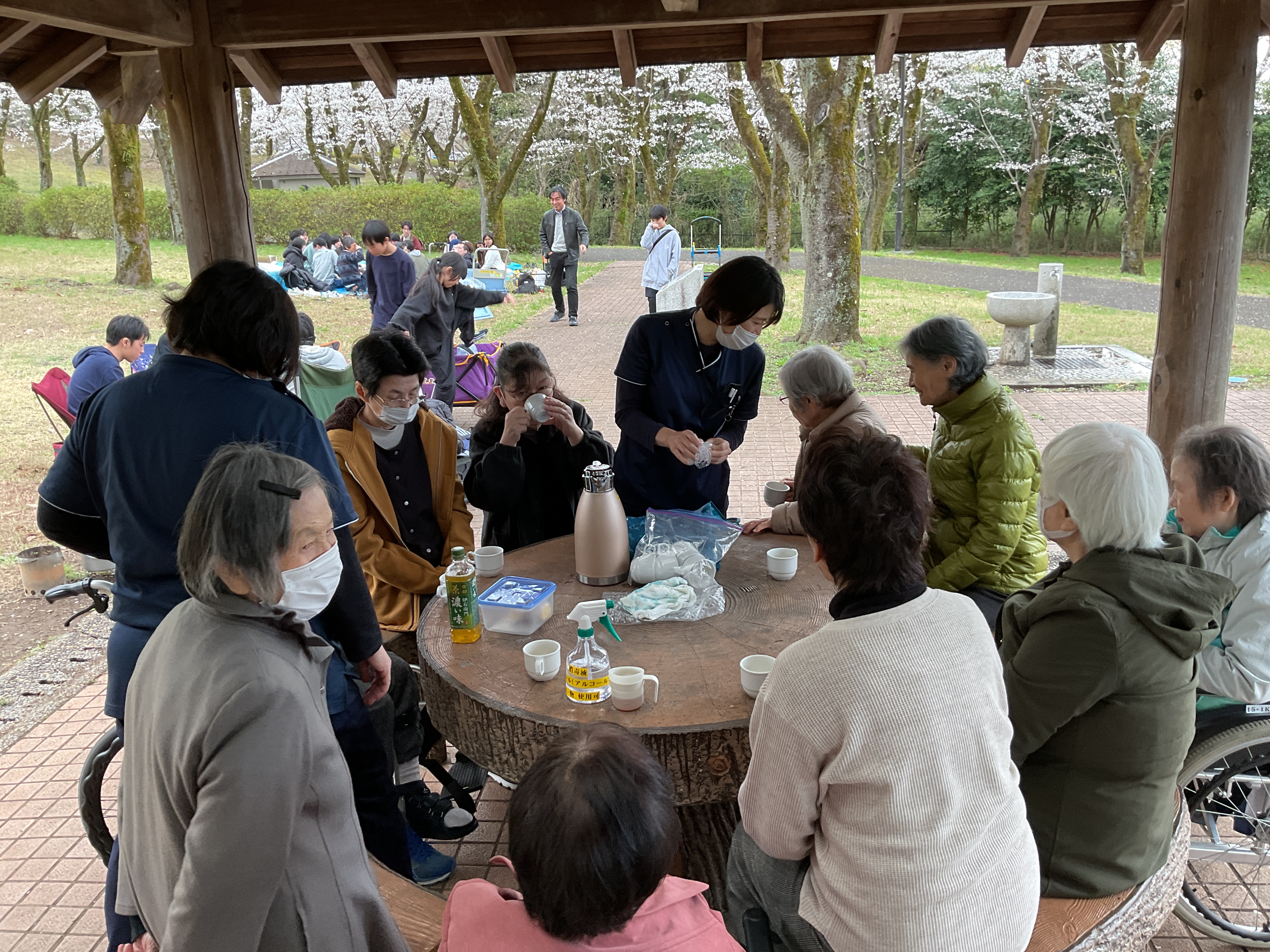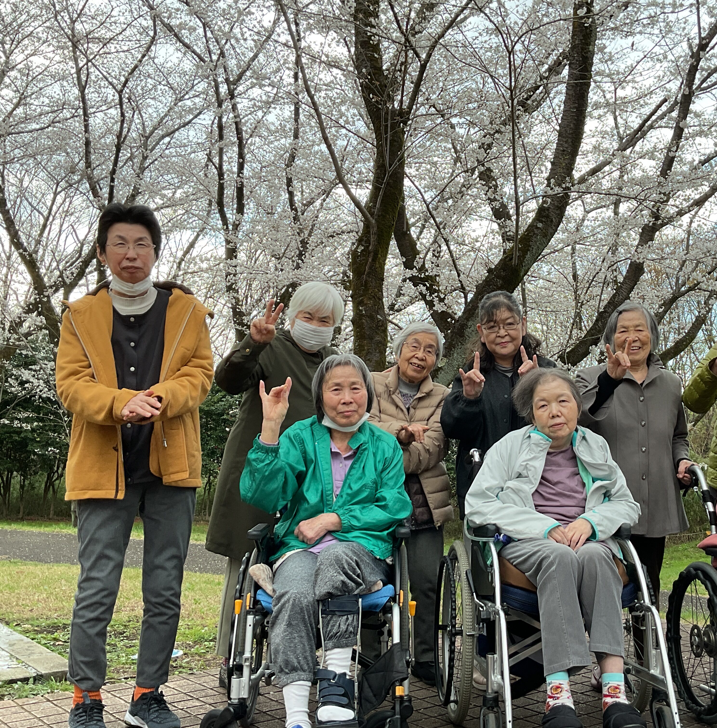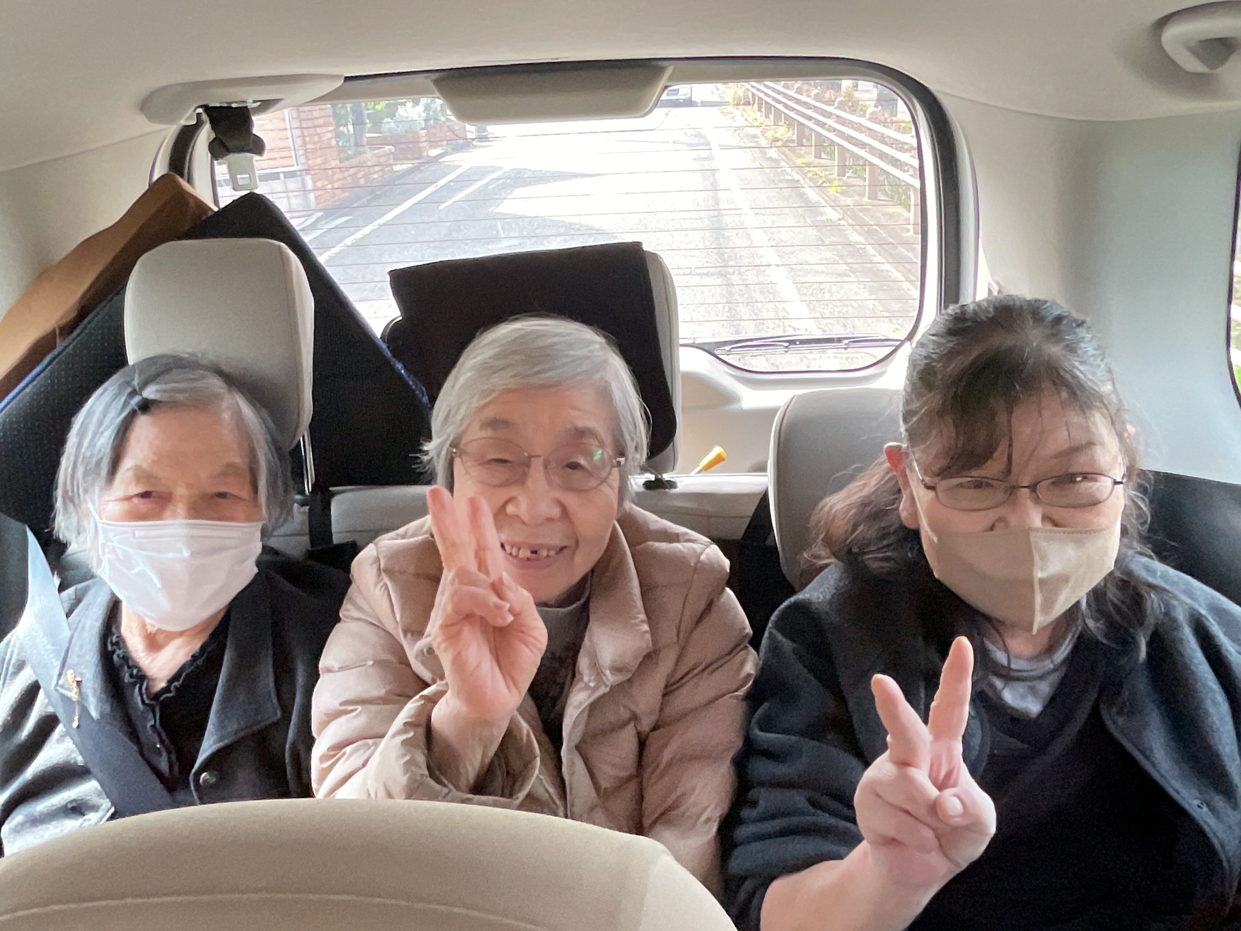 桜が満開なのでご利用者皆様とドライブに出かけました。
