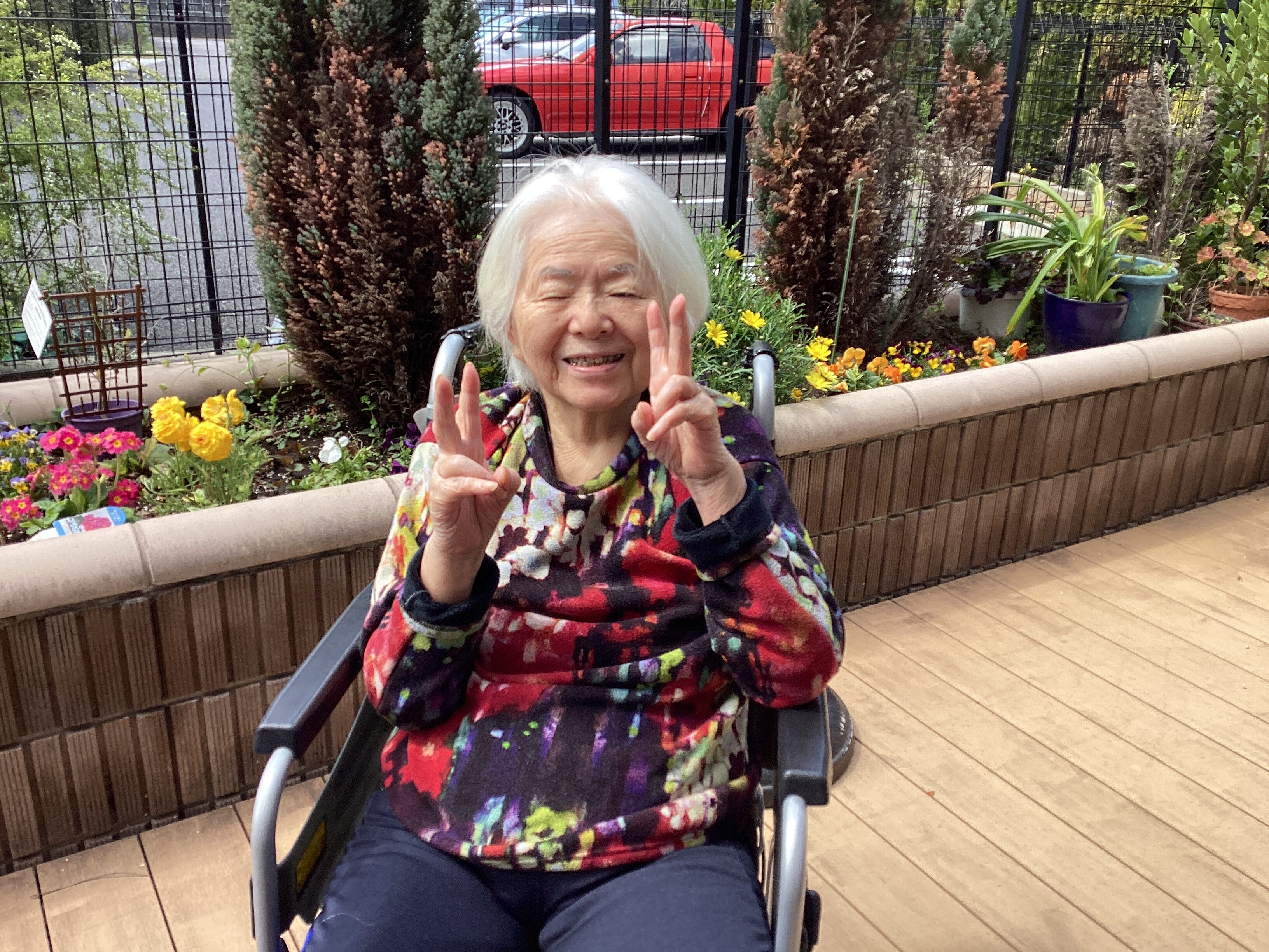 本日はお天気もよかったので、午前の時間皆様と少しベランダに出て、桜を見たり花壇に咲いている花と一緒に写真を撮ったりして過ごしました🌸