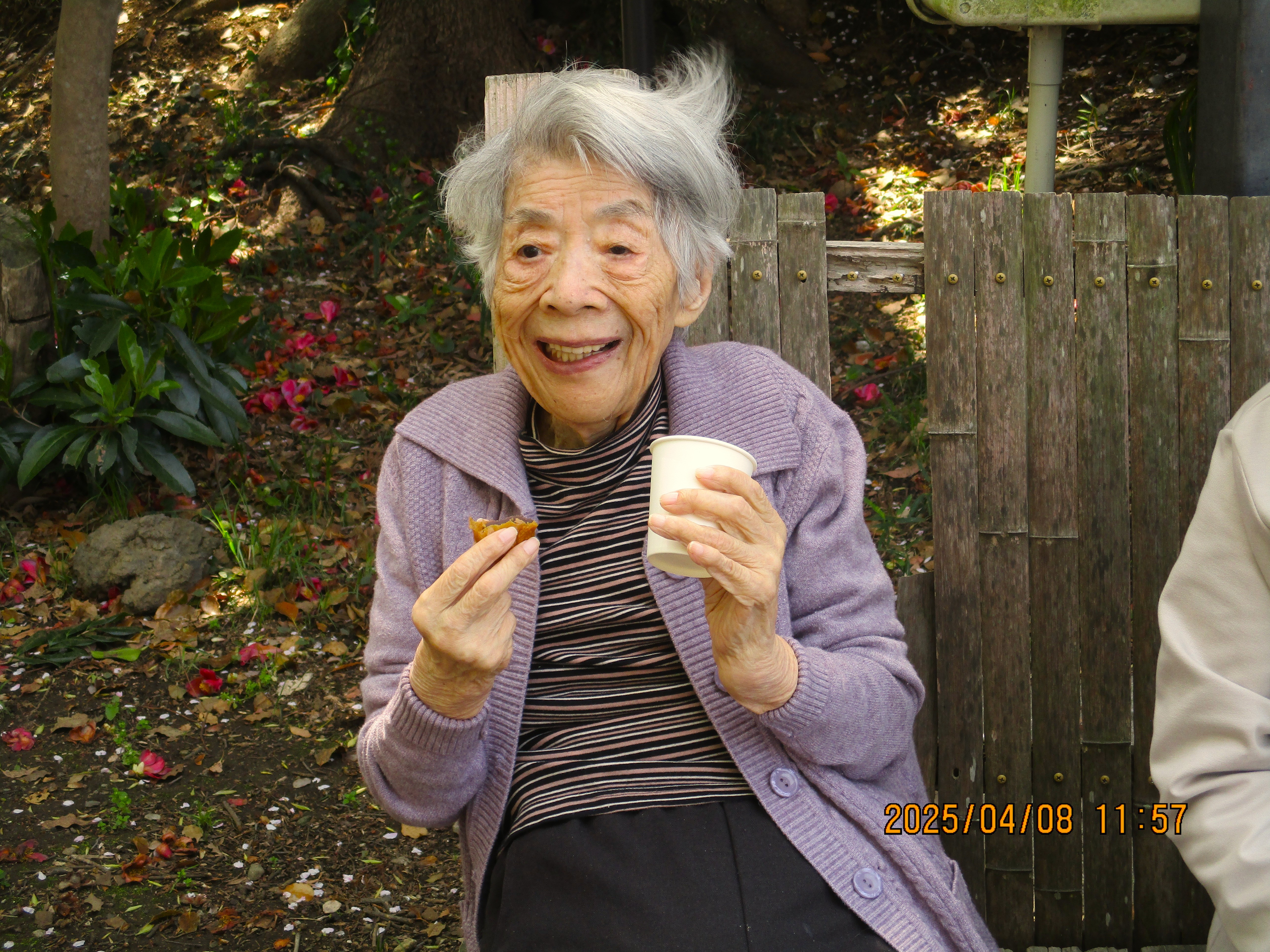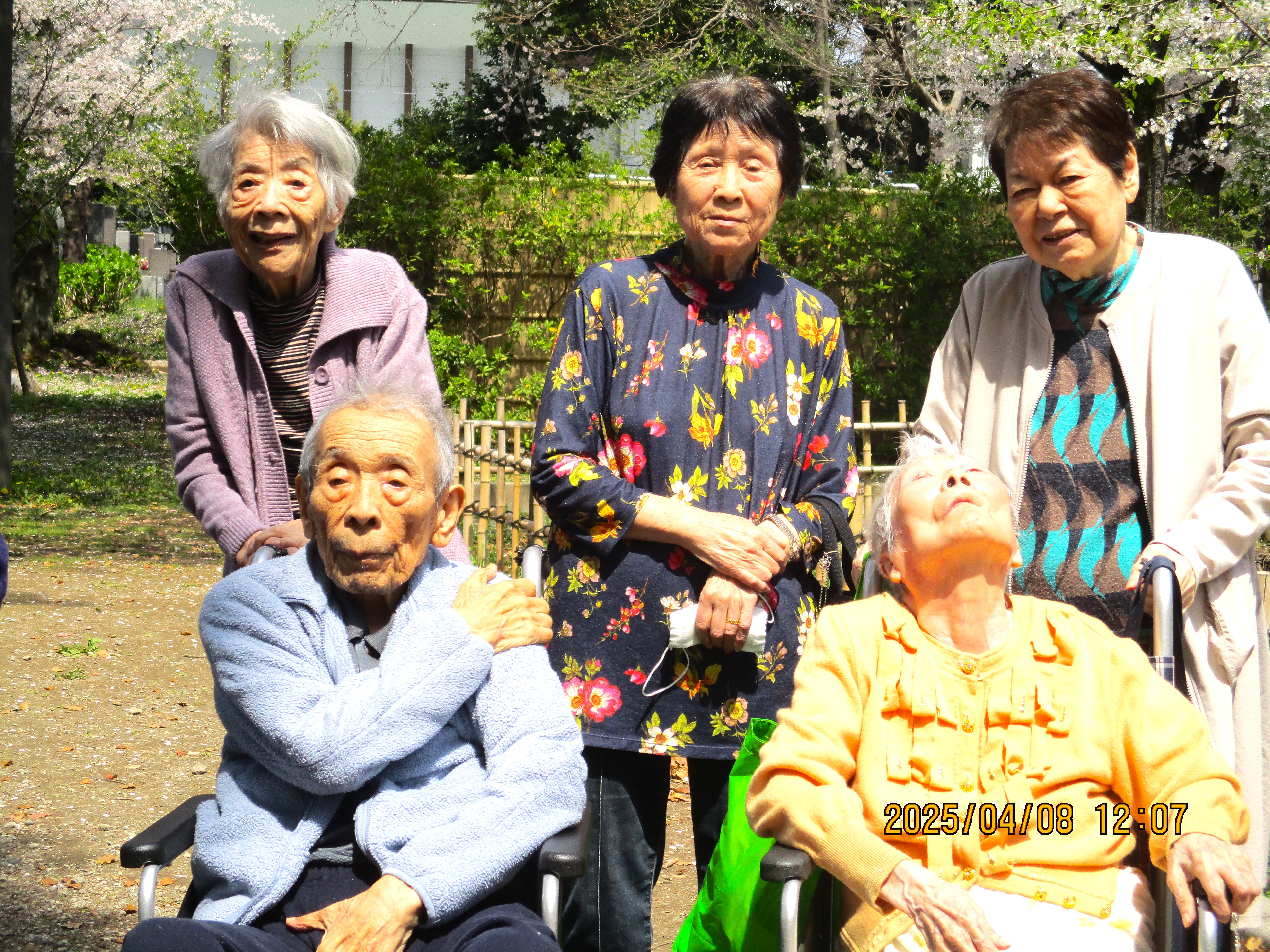 やわらかな春風に 心華やぐ季節となりました。 今年も天候にも恵まれ、花見に行って参りました。 みなさん「来てよかった🌸、楽しいわ」笑顔も満開です。 それから、おまんじゅうを食べながら写真撮影📸パシャ! 春のひとときを楽しんでおられました。