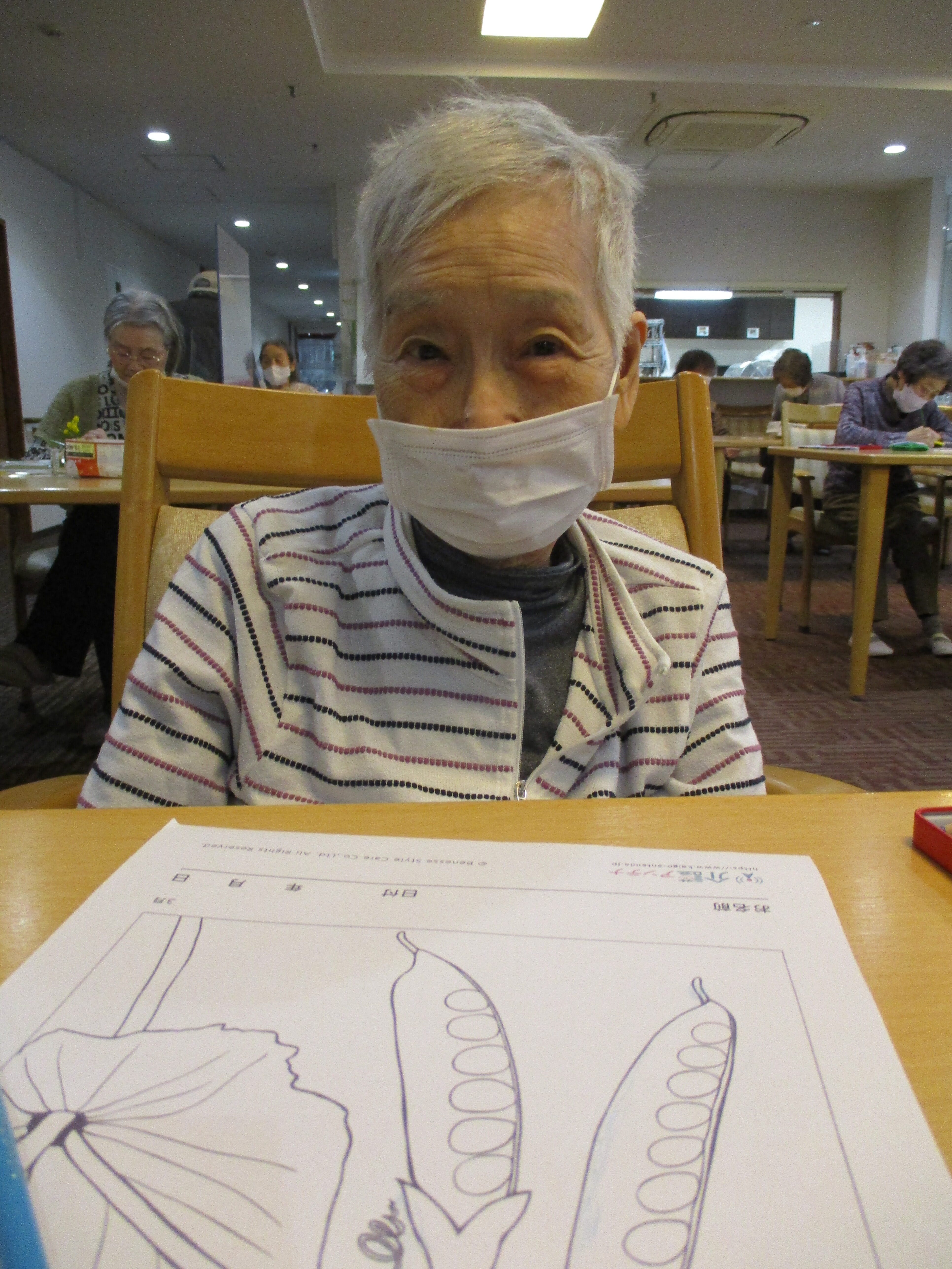 今日は春をテーマにした塗り絵をしました。 皆さん「習われてた?」というぐらいお上手です。