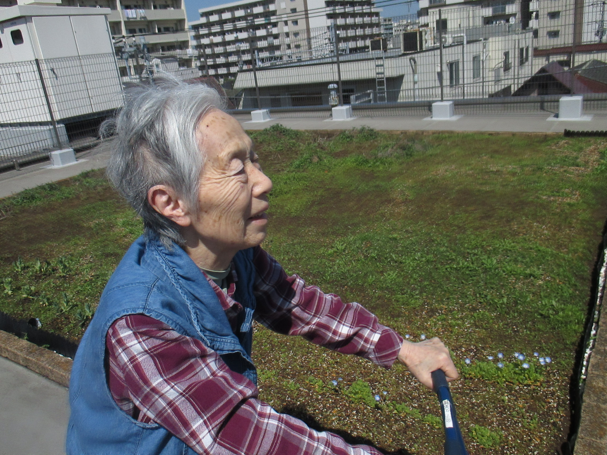 春の日差しと気持ちいい風に屋上の花々も咲き始めてきました。皆さんで屋上に上がり春の日差しと気持ちいい風を感じてきました。屋上庭園の花壇にもようやく花が咲き始めて気持ちよさそうに風に揺れていました。