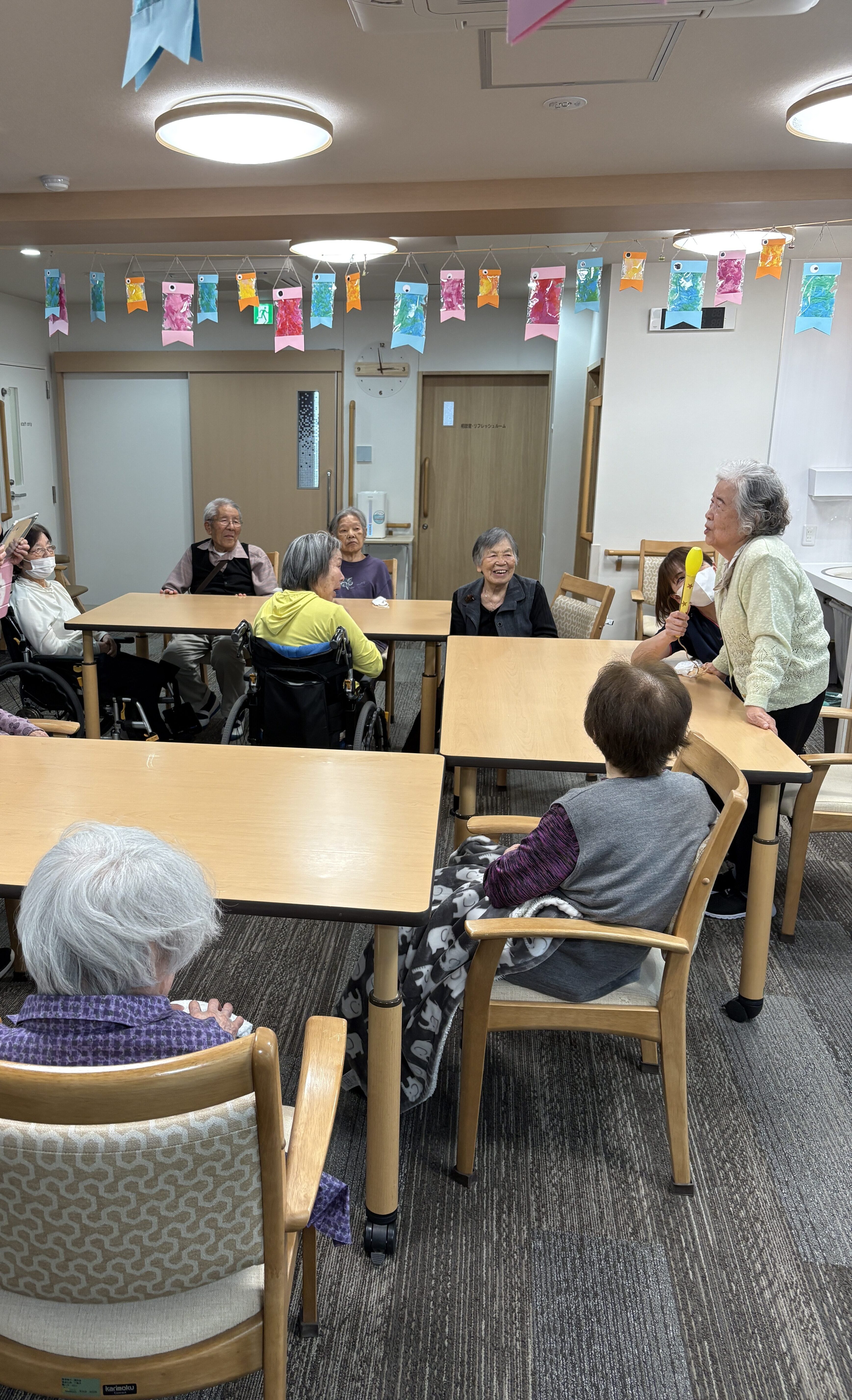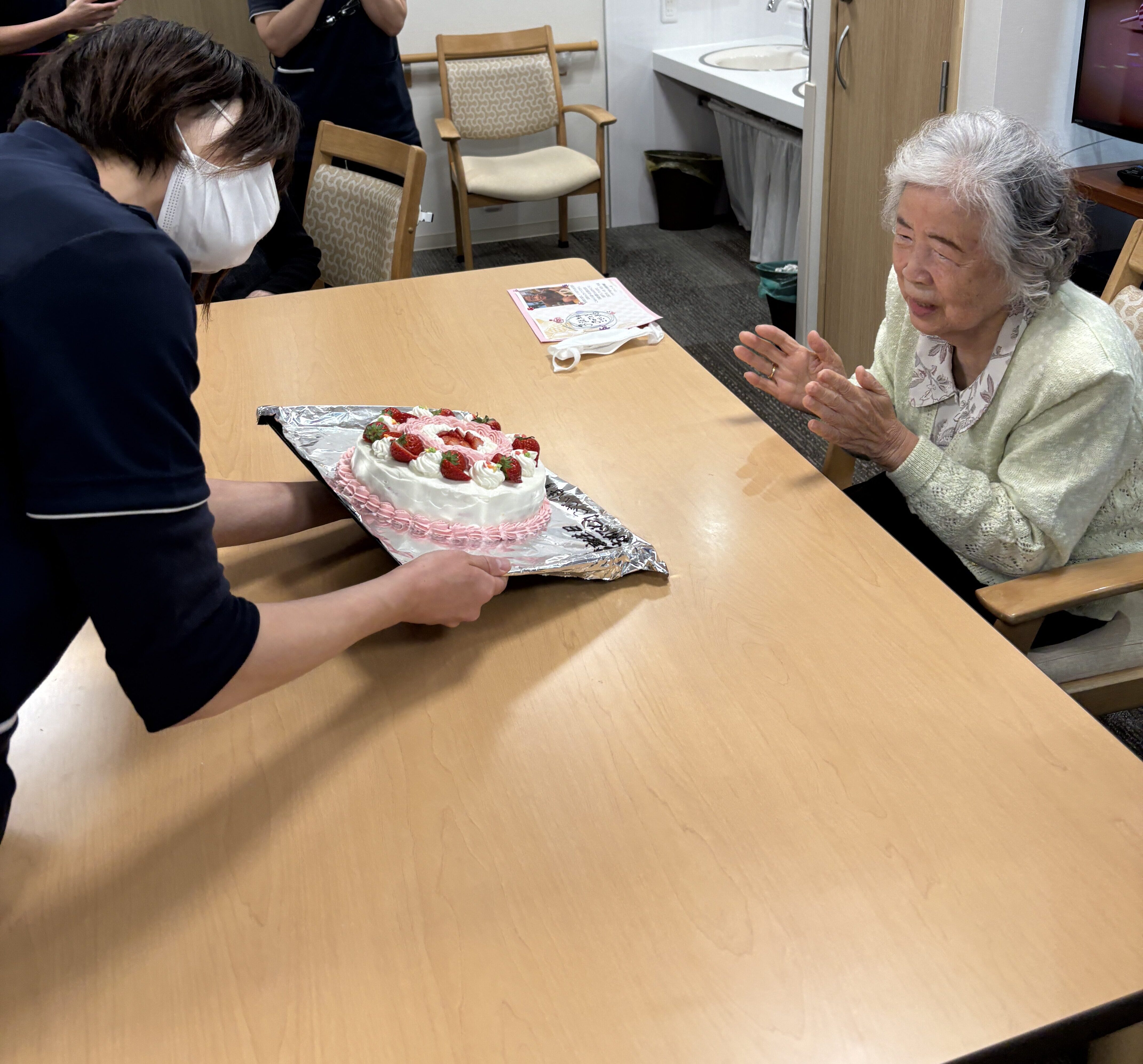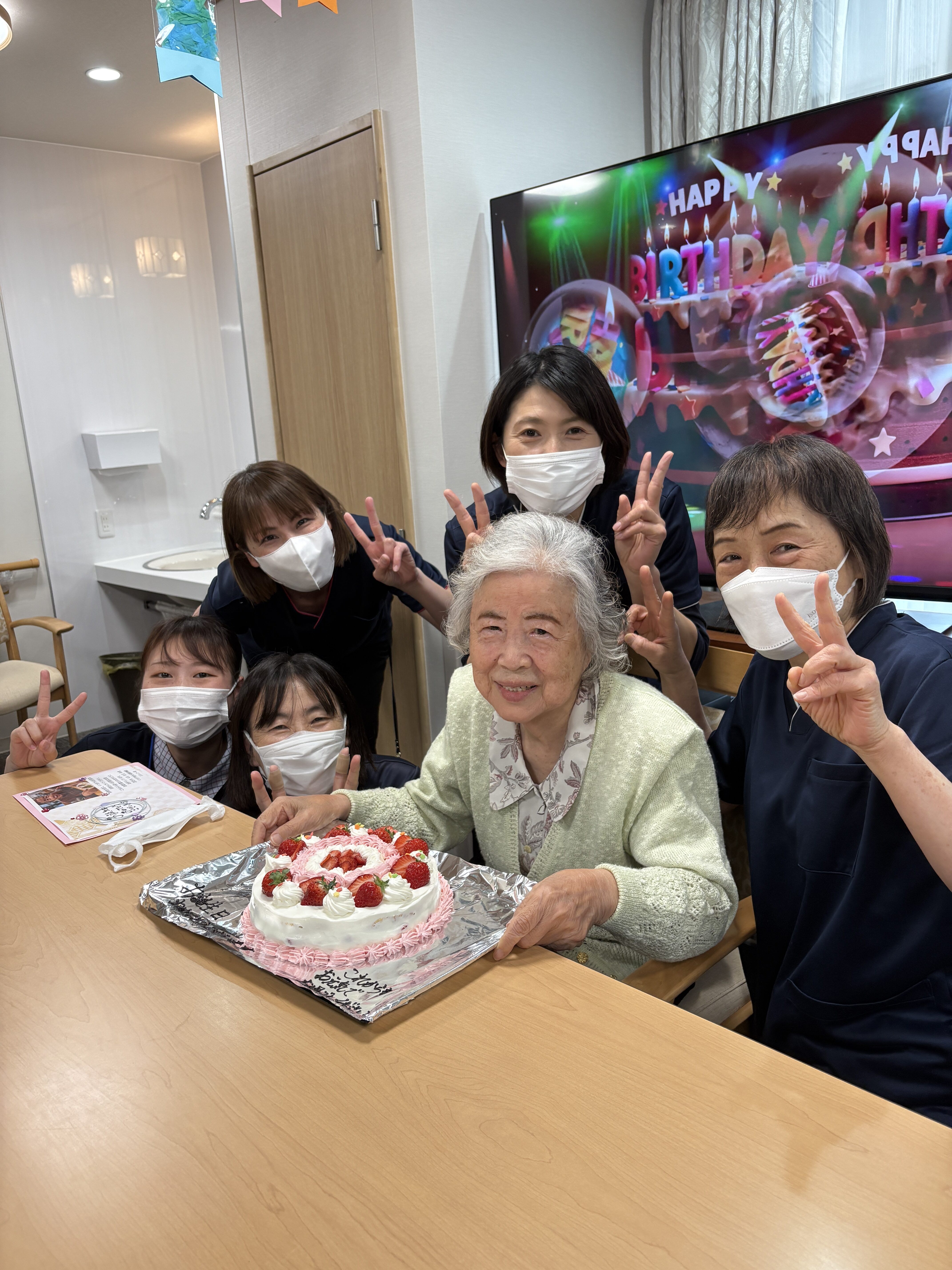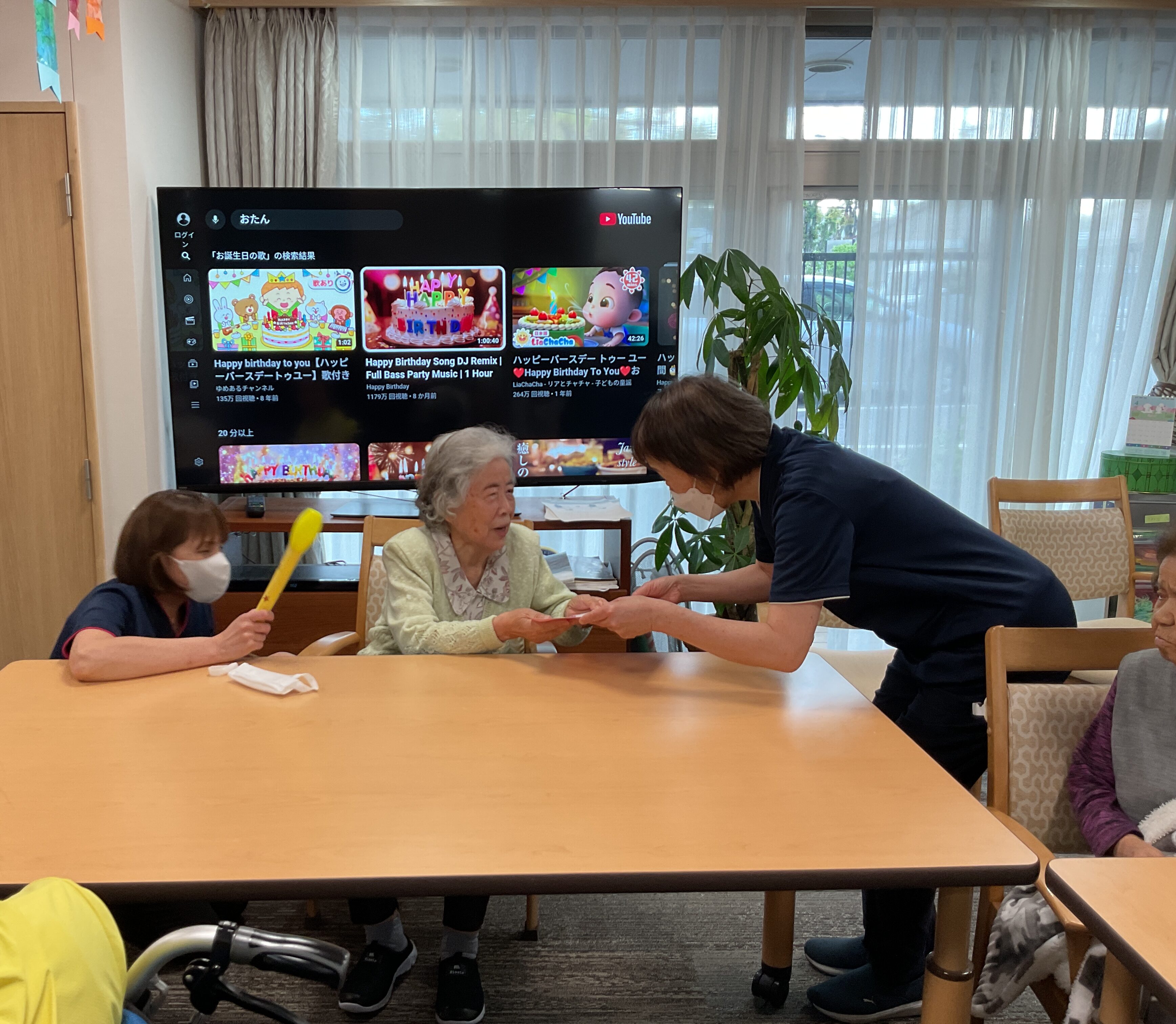 今日は4月生まれの方のお誕生日会を行いました。ご本人からのスピーチではミモザへの感謝の気持ちをおっしゃっていただきました。ウクレレの演奏に合わせ皆様で歌い、手作りのメッセージカードとケーキにとても喜んでくださいました!