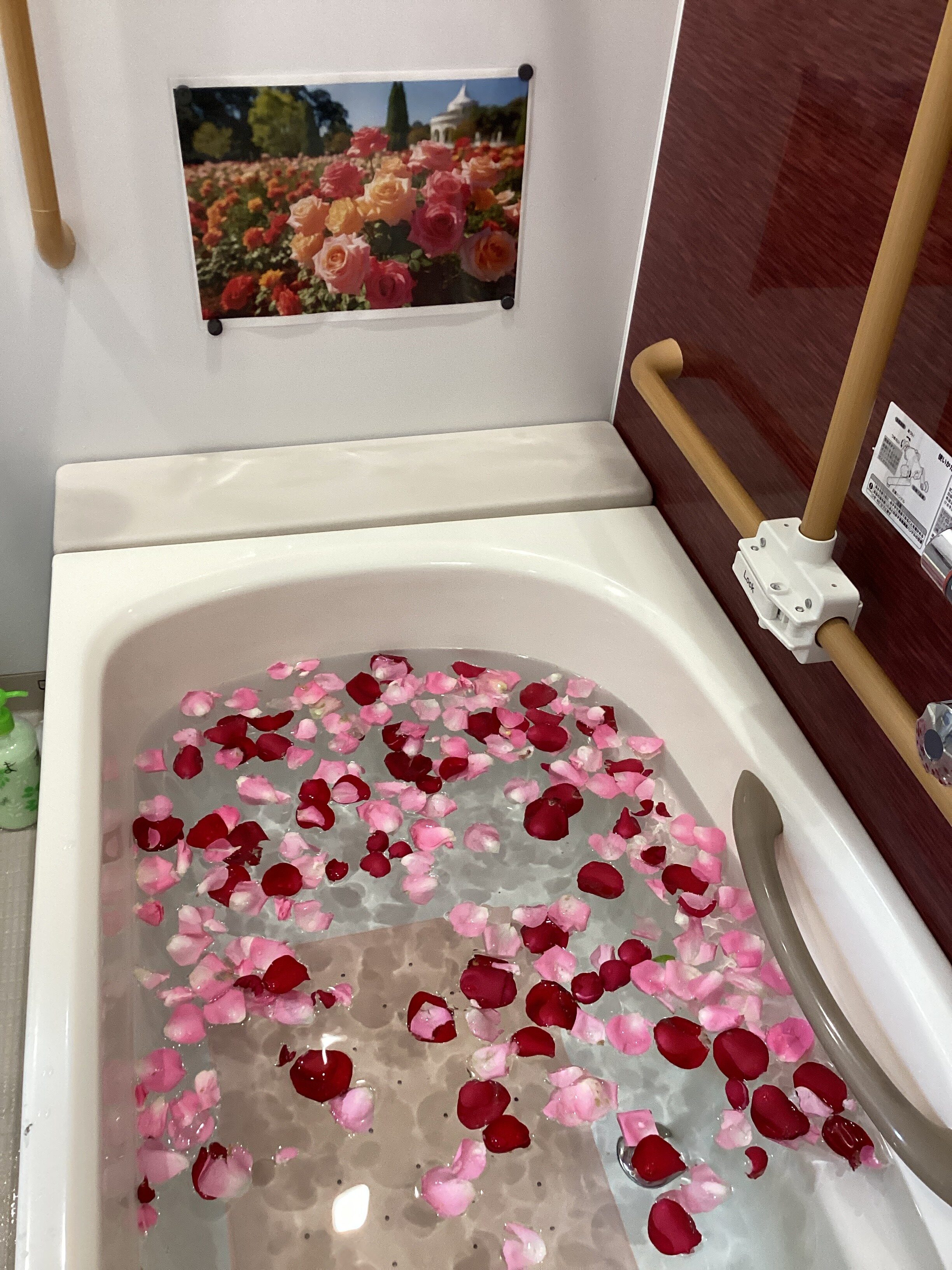 4月の「ミモザ温泉」は「生花のバラの花びら」を浮かせたバラ湯🌹をお楽しみいただきました。本物の花の香りを感じてゴージャスな時間をお楽しみいただき、皆さまにも大好評でした✨湯上り後は冷えたノンアルで喉を潤しました🍺