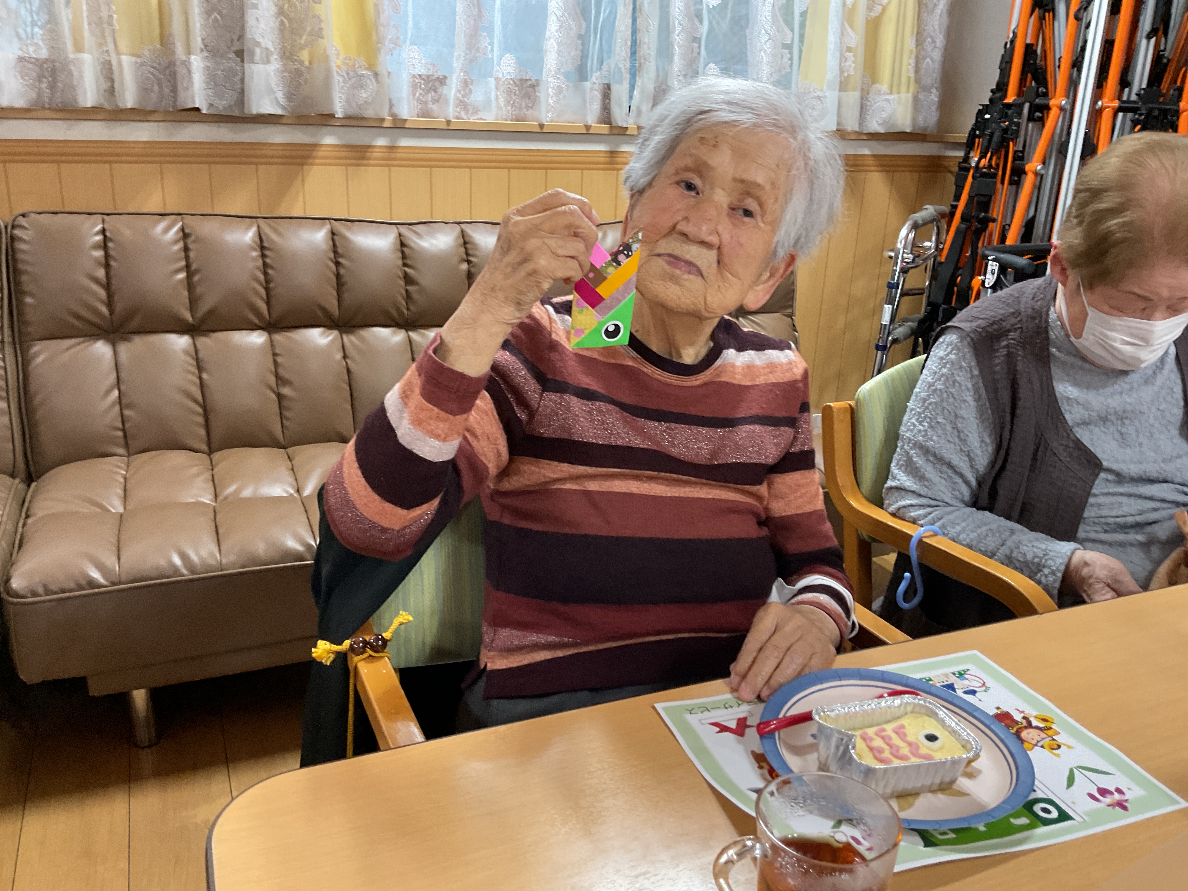 5月5日はこどもの日🎏 おやつは手づりの「鯉のぼり風チーズスフレ」にしました(*^^*) 皆さんに喜んでもらえて良かったです(*^^*)