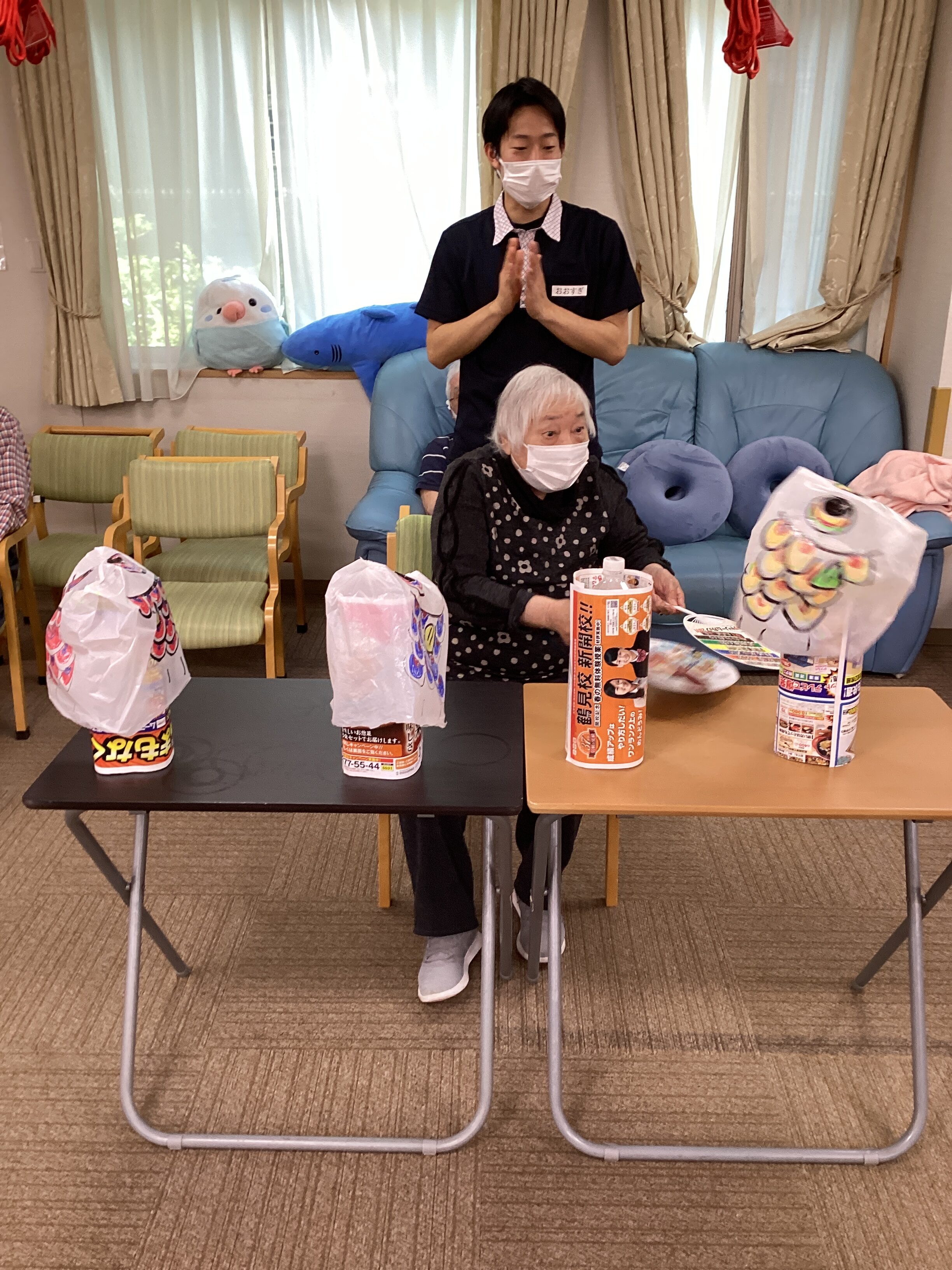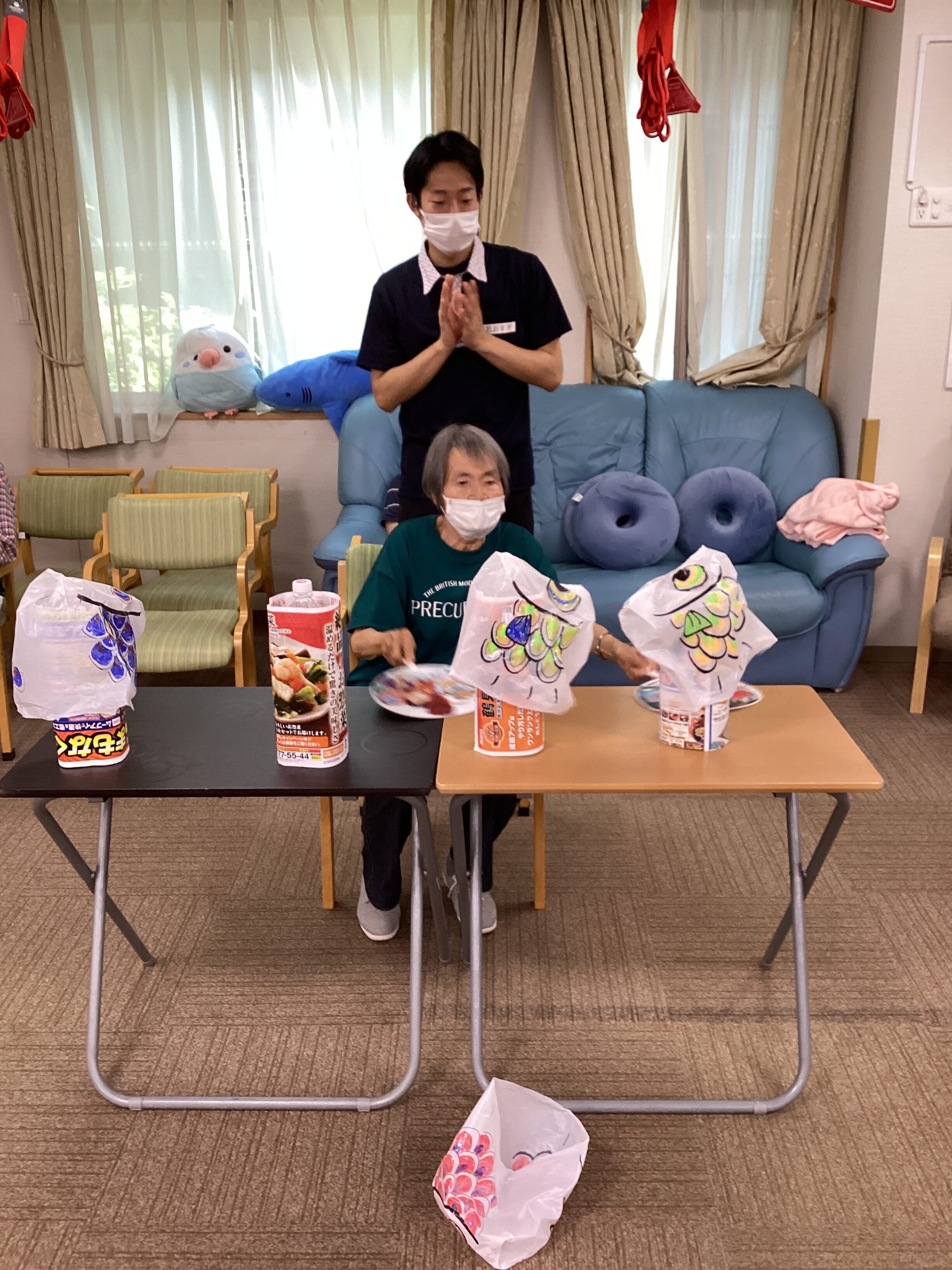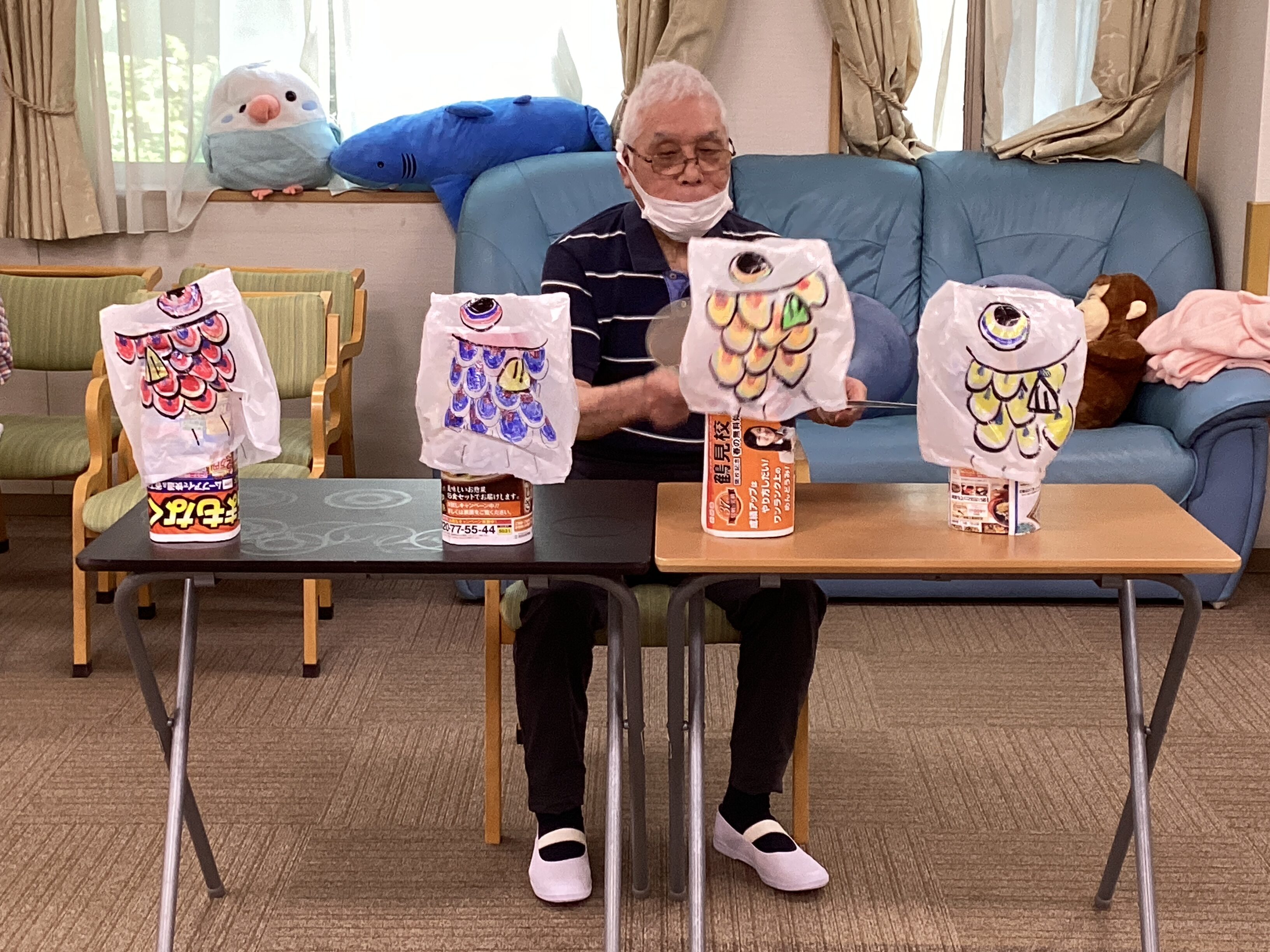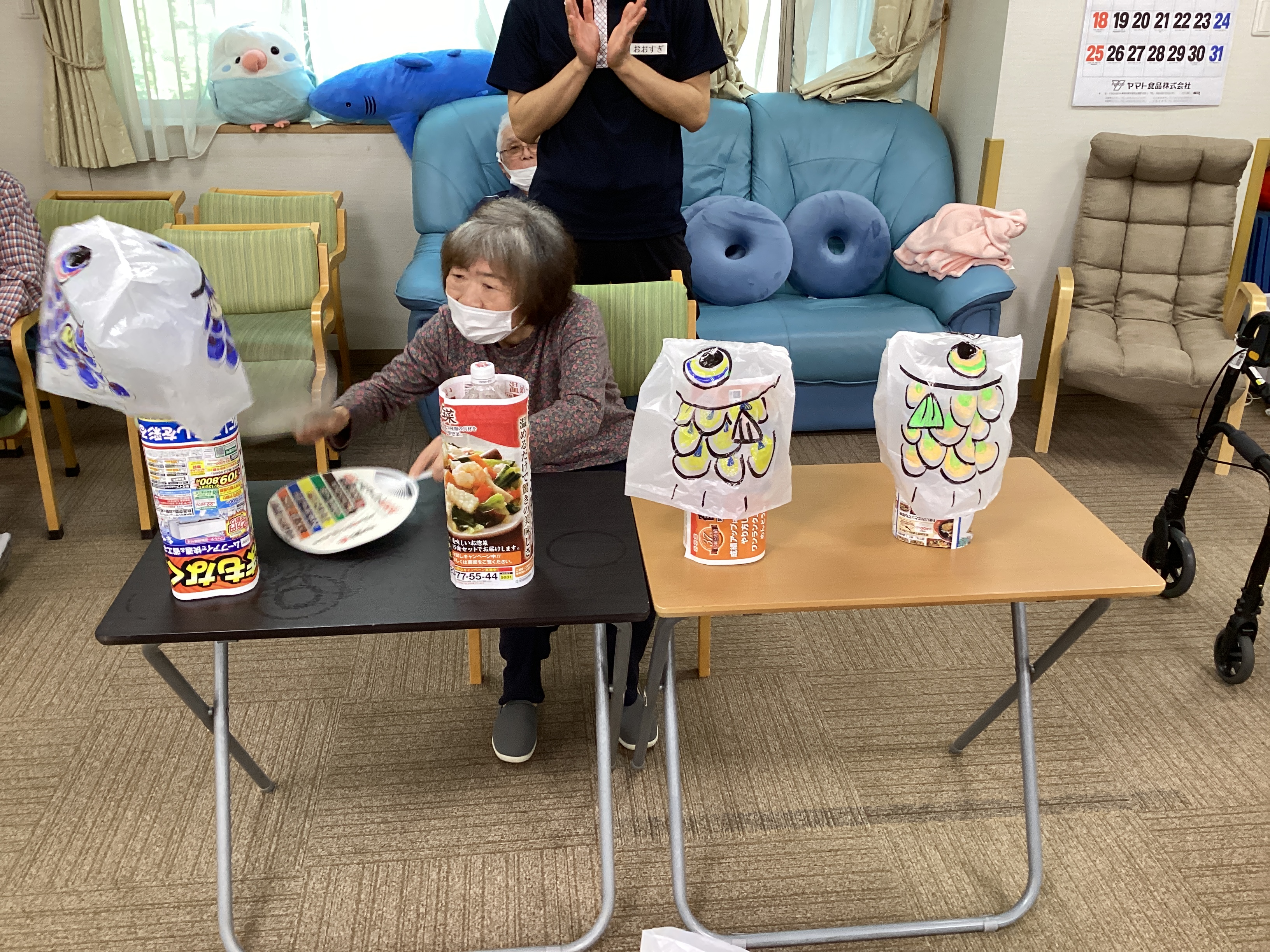 端午の節句はうちわで鯉のぼりを扇いで泳がせるレクリエーションを行いました🎏