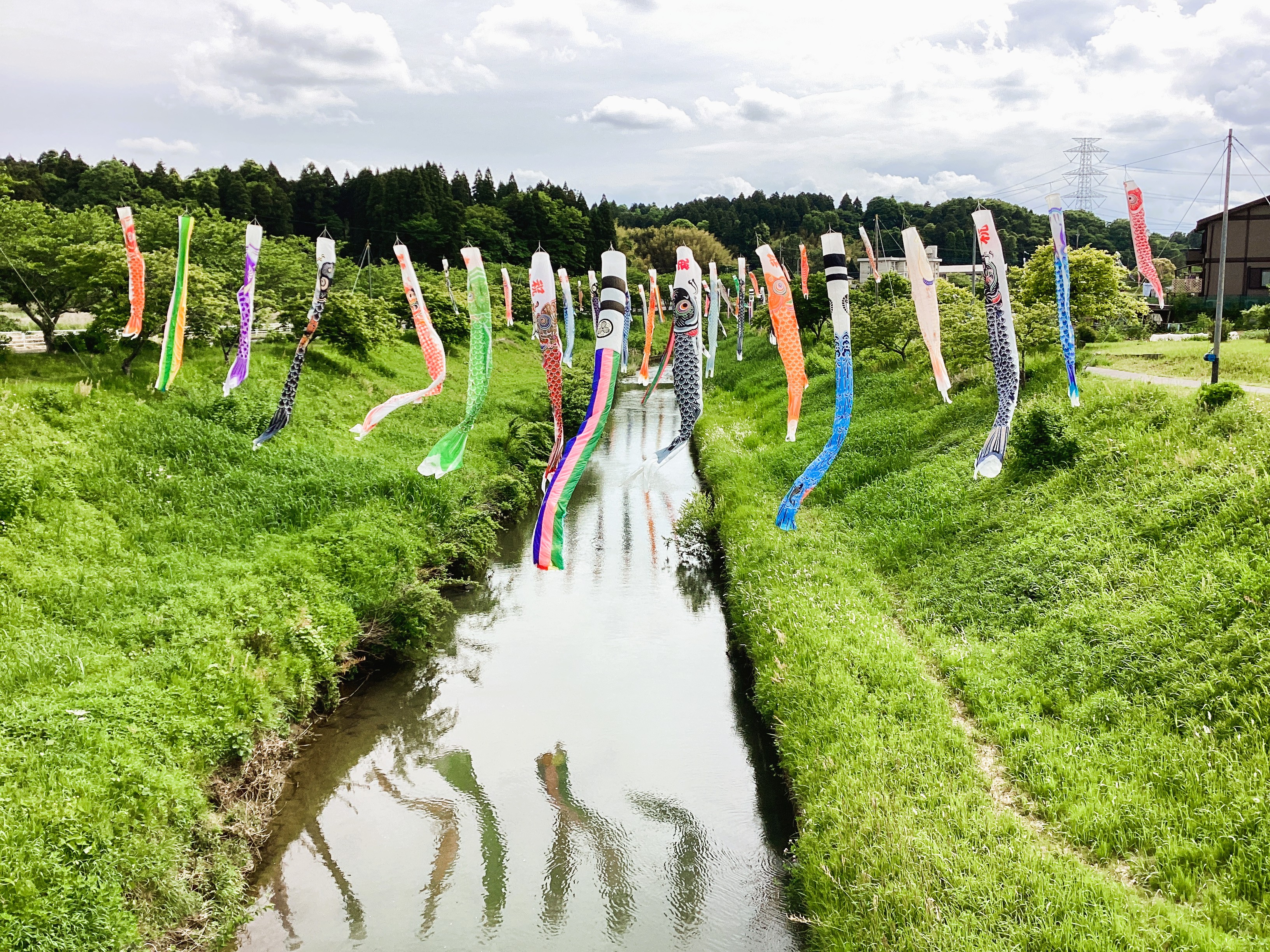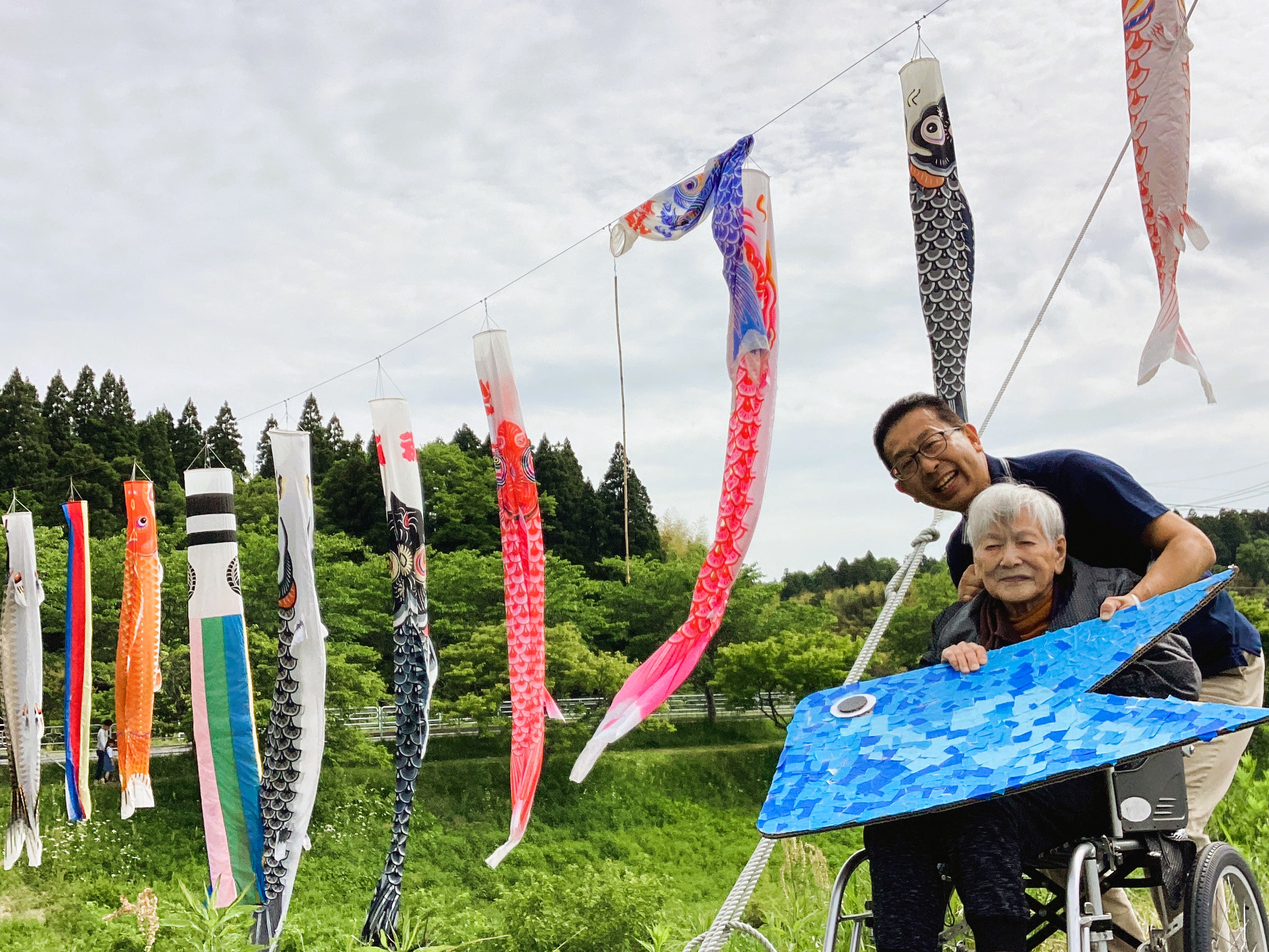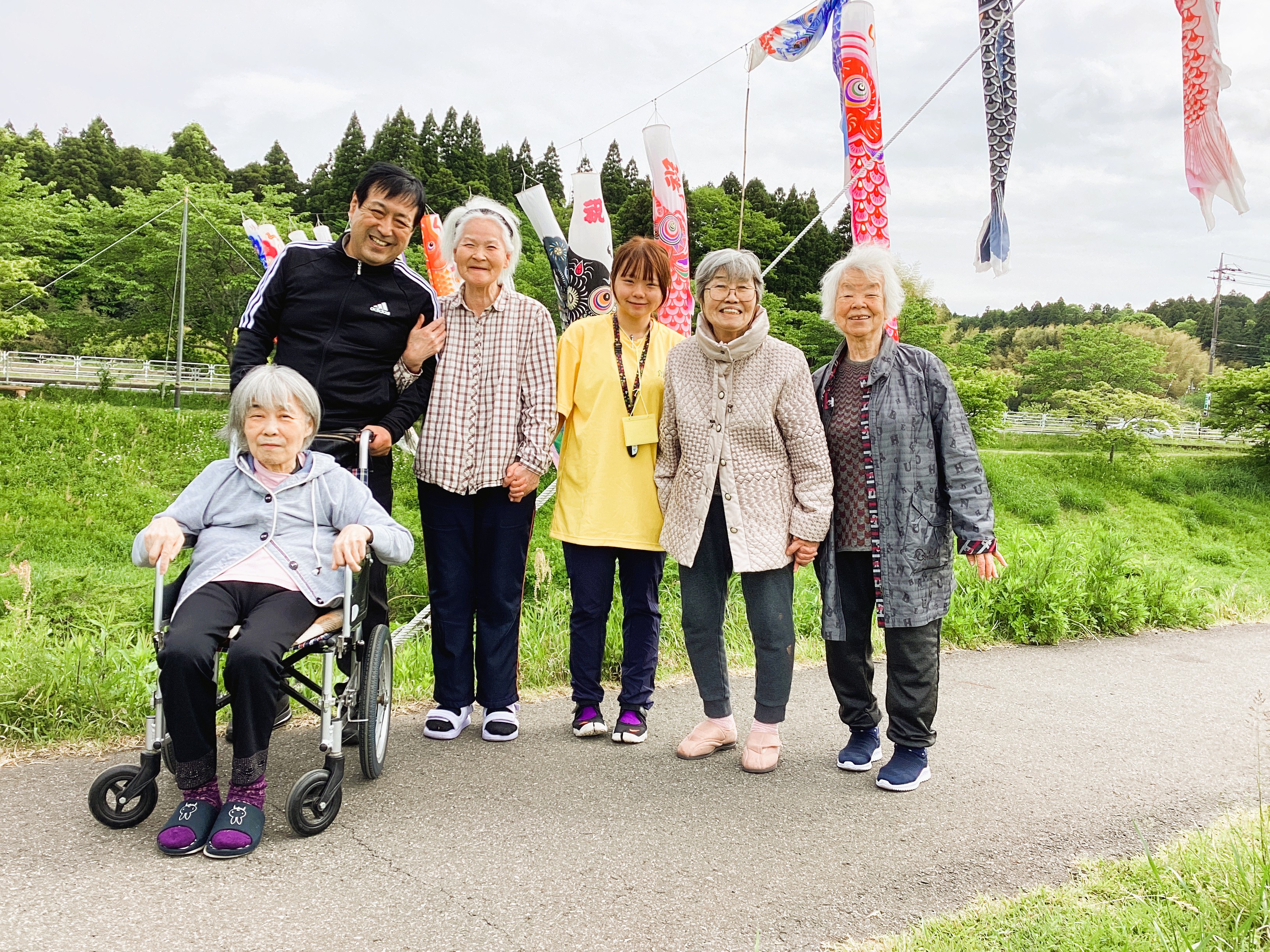”屋根より高い鯉のぼり♪”水面に反射する優雅な鯉のぼり、家々の屋根を凌駕する雄大さ🎏 川沿いに小さく咲く花も、皆さんの笑顔も全てが職員とご利用者の大切な思い出です🎶
