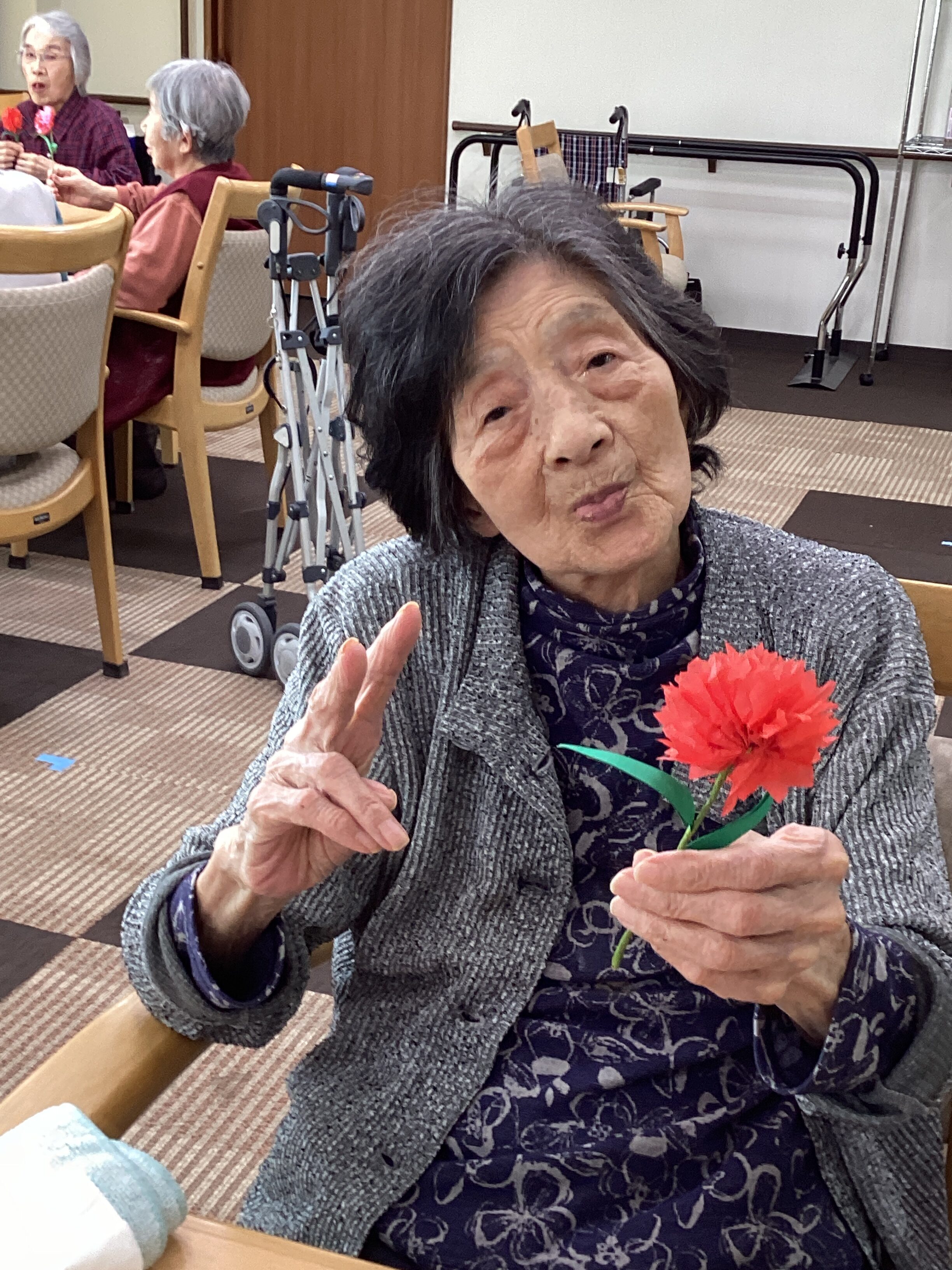 カーネーションが完成してとても嬉しそうなご様子です🥰