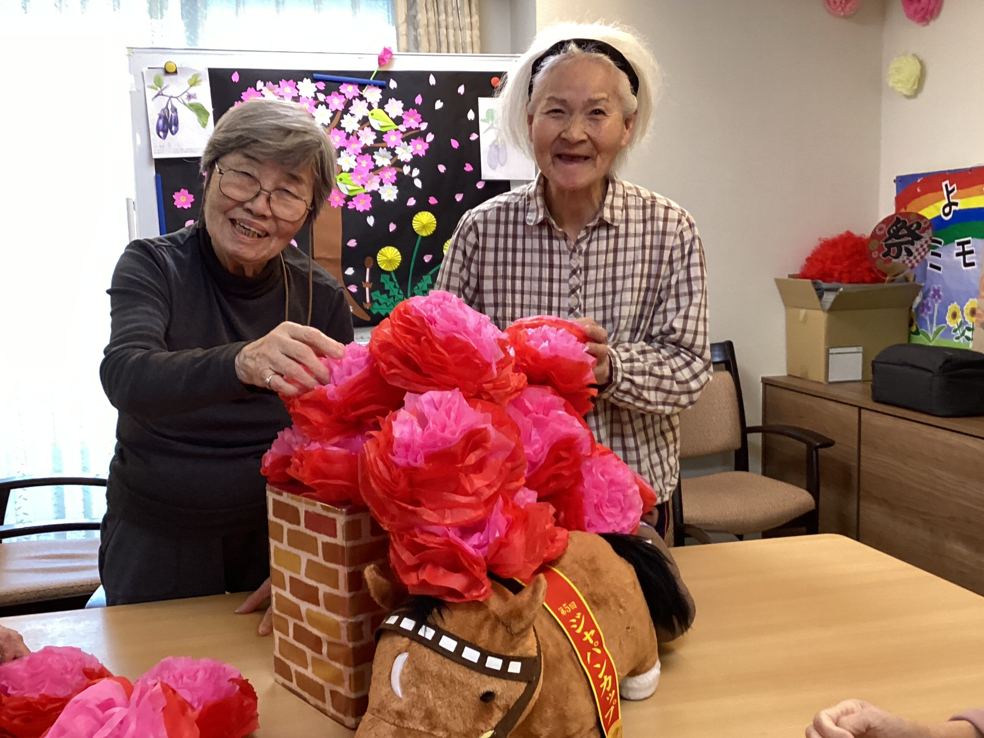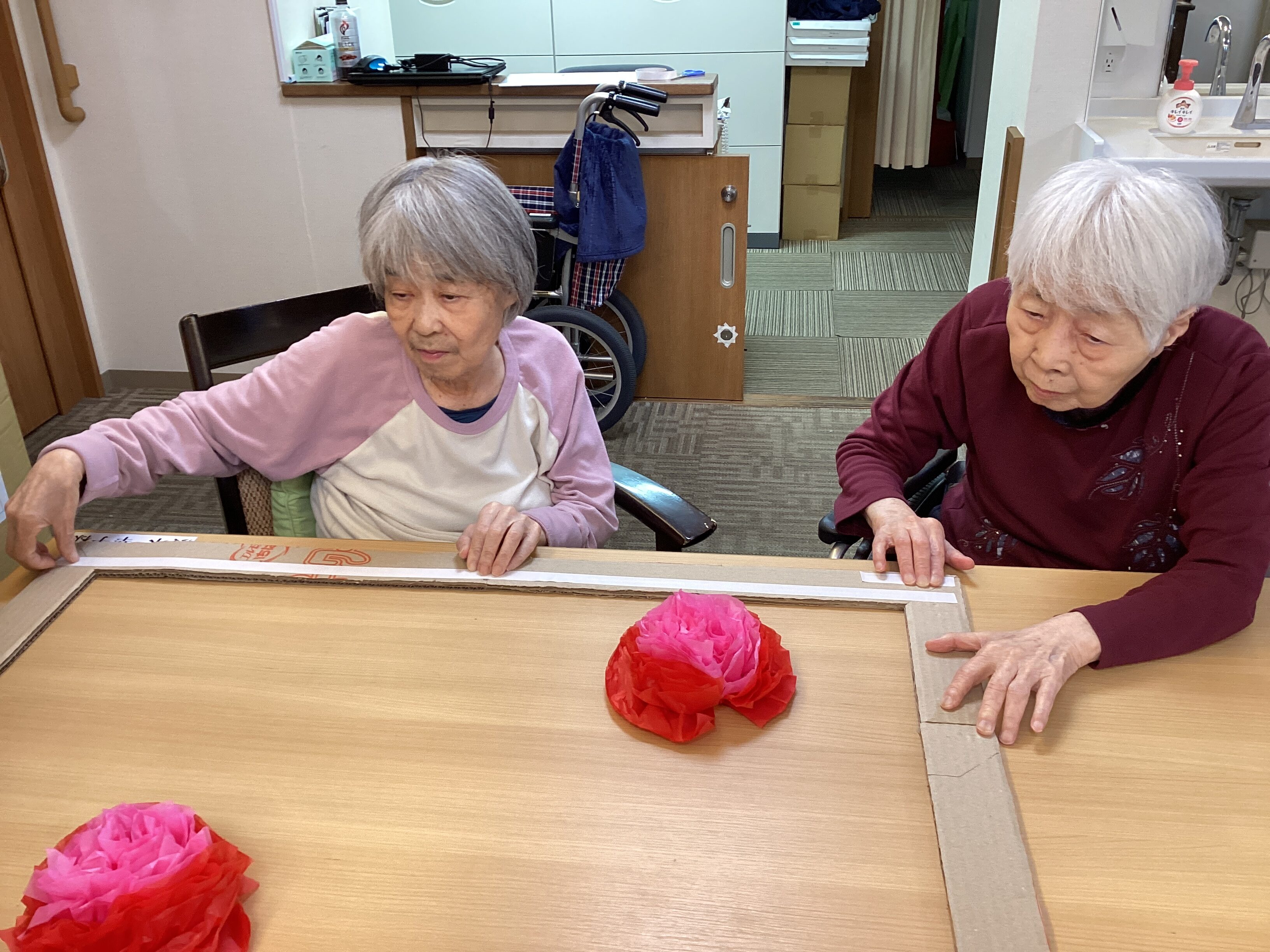 これは不思議な窓枠なんです。創造の世界を創り出せるなんて、皆さん信じられますか? ワクワクしながら…向こうには何が見えるのかな~と談笑しながらつくりました! お花作り上手にできました♡