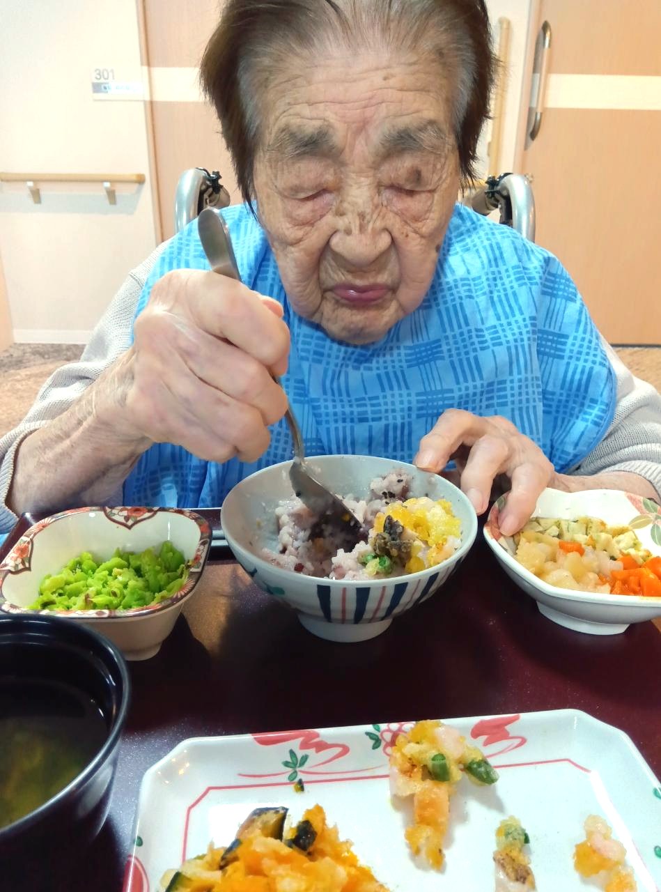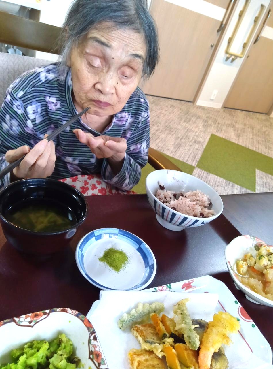 5月1日のお昼ご飯です! スタッフが揚げたてを提供してくれます。利用者様のテンションも上がります😋💕