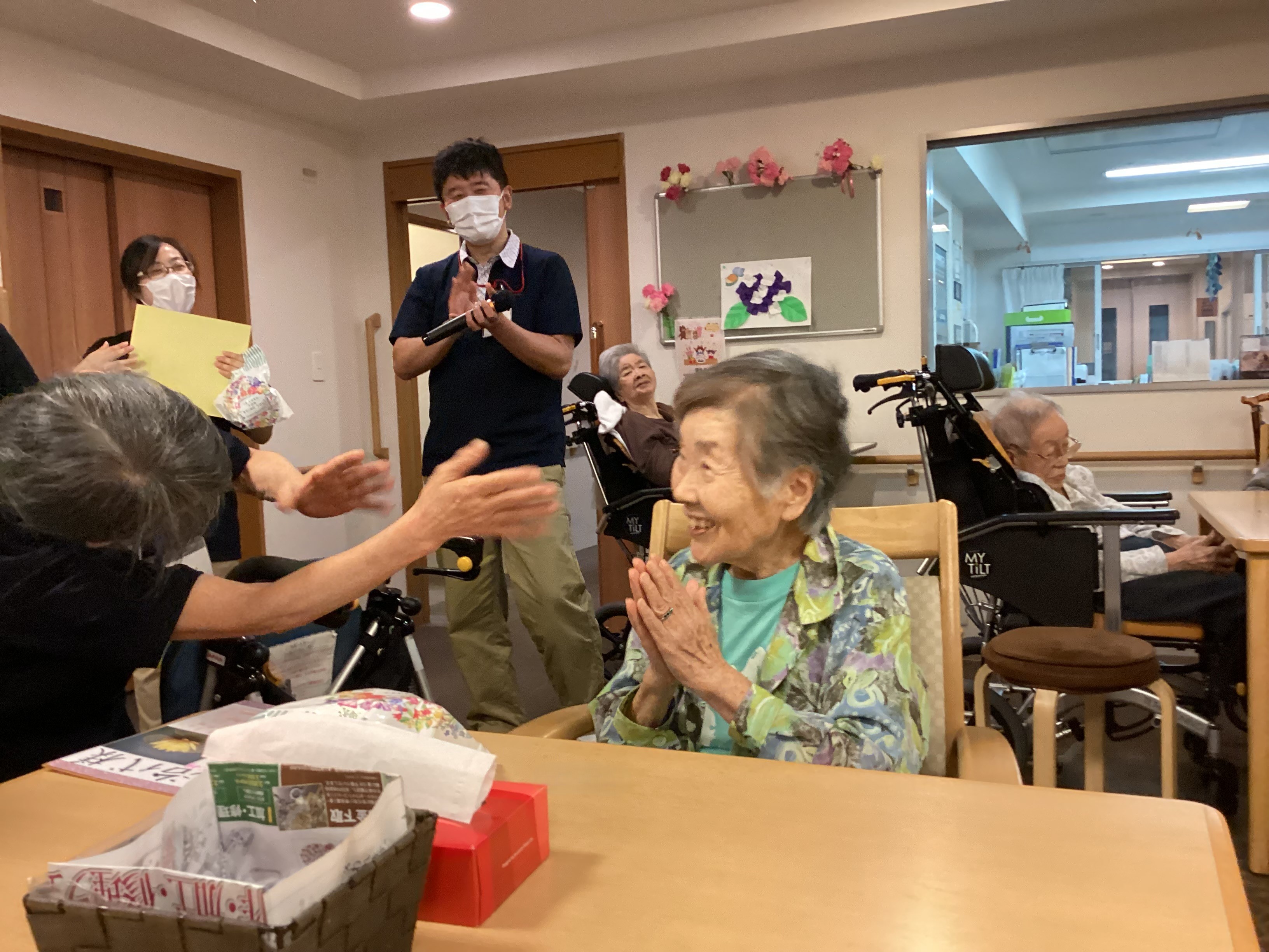 少し肌寒い気温に体調を崩さないようにご自愛ください。今日は5月の合同誕生日会!皆さん大盛り上がりで歌を歌って誕生日をお祝いしました!素敵な笑顔がたくさんでスタッフ一同もうれしくなってしまいました!